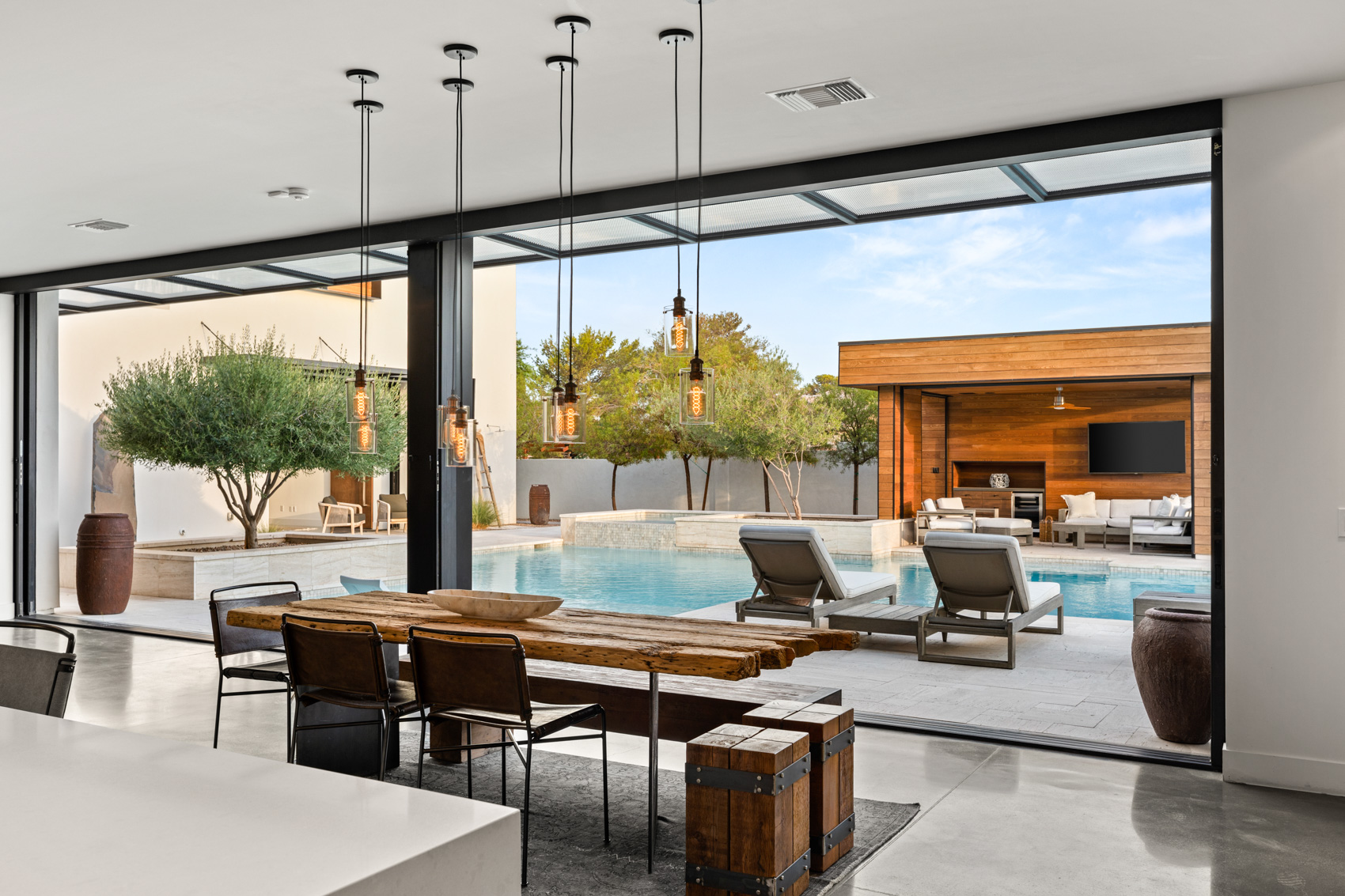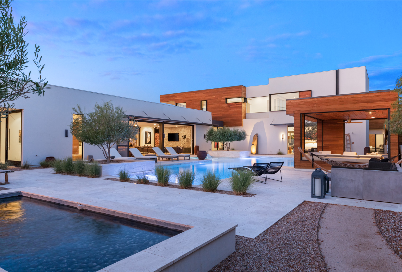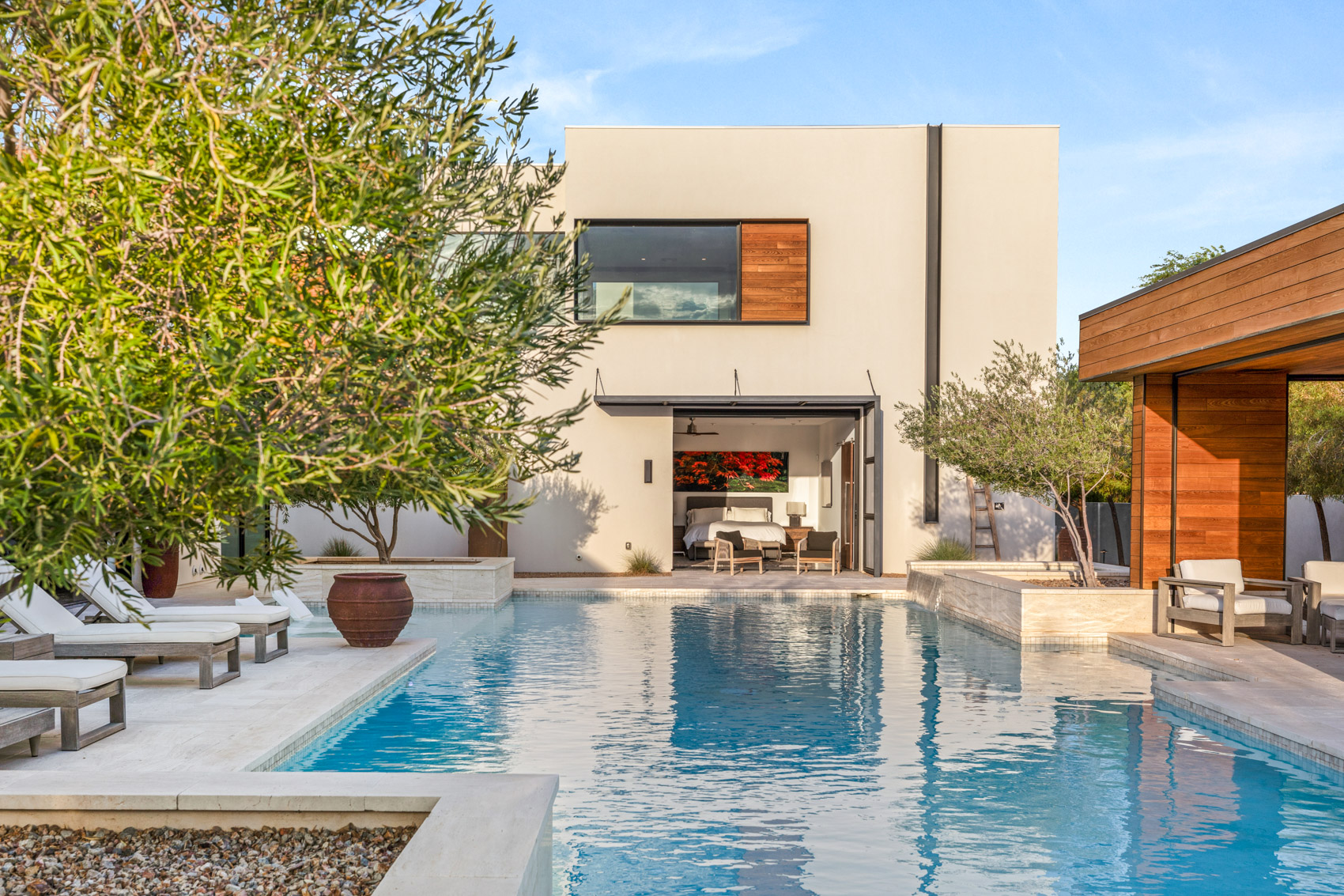 The expansive great room, with its soaring ceilings and walls of glass, effortlessly transitions into the outdoors through pocket sliding doors, creating a fluid connection to the serene backyard oasis. The heart of the home is the state-of-the-art chefās kitchen, a culinary haven equipped with top-of-the-line stainless steel appliances, including a wine fridge for your finest vintages. The sleek cabinetry, stone countertops, and custom backsplash add to the kitchenās sophisticated aesthetic, making it as functional as it is beautiful. Whether preparing a casual meal or hosting a lavish dinner party, this kitchen is designed to meet every culinary need with style and ease. Adjacent to the kitchen, the dining area offers a picturesque setting for family meals, with large windows framing views of the meticulously landscaped backyard and the distant glow of the Las Vegas skyline. For those who love to entertain, the open-concept design ensures that guests can flow seamlessly from the kitchen and dining areas to the outdoor living spaces, making every gathering a memorable event. The primary suite, located on the main level, is a sanctuary of relaxation. This private retreat features a luxurious spa-like bathroom with a free-standing soaking tub, perfect for unwinding after a long day, and a spacious shower area equipped with two separate shower panels for an indulgent bathing experience. The large walk-in closet, complete with custom built-ins, offers ample storage and organization, ensuring that everything has its place. Each of the two guest bedrooms in the main house is ensuite, providing comfort and privacy for family and friends. The attention to detail continues in these spaces, with designer finishes and thoughtful touches that create an atmosphere of refined luxury. Upstairs, a spacious loft offers additional living space, ideal for a home office, media room, or play area. Oversized sliding doors open onto an outdoor observation deck, where you can take in the sweeping views of the surrounding desert landscape and the city skyline beyond. This space provides the perfect vantage point for enjoying the stunning Nevada sunsets or stargazing under the clear night skies. The outdoor living experience is nothing short of spectacular. The expansive backyard is an entertainerās dream, featuring a sparkling pool and spa, perfect for cooling off on hot summer days or enjoying a relaxing soak under the stars. Two separate reflection pools add a touch of tranquility, their shimmering surfaces creating a peaceful ambiance that enhances the overall sense of serenity. A separate covered outdoor lounge, complete with a TV and mini bar, offers a cozy spot for watching the game or enjoying an evening cocktail. Whether hosting a large gathering or enjoying a quiet night with family, this space is designed for year-round enjoyment. The outdoor dining area, set against the backdrop of the desert landscape, is perfect for alfresco dining, providing an ideal setting for everything from casual barbecues to elegant dinner parties. The propertyās desert landscaping has been meticulously designed to offer beauty and privacy, with mature plants and natural elements that blend seamlessly with the surrounding environment. Every detail has been considered to create a low-maintenance, high-impact outdoor space that complements the homeās modern aesthetic. Adding to the homeās appeal is a private 3-bedroom casita, offering additional space for guests or extended family. This self-contained living area provides all the comforts of home, with the same attention to detail and luxury finishes found in the main residence. 7030 Schirlls Street represents a rare opportunity to own a piece of art in one of Las Vegasās most sought-after communities. Homes of this caliber, especially those designed by Jewel Homes and inspired by the artistry of Peter Lik, seldom come on the market. This residence is more than just a place to live; itās a testament to the art of living well. With its unparalleled design, luxurious finishes, and prime location close to the excitement of the Strip yet worlds away in terms of tranquility, this home is destined to captivate and inspire. Donāt miss the chance to make this extraordinary property your ownāschedule a private tour today and experience the timeless beauty and modern luxury of 7030 Schirlls Street.