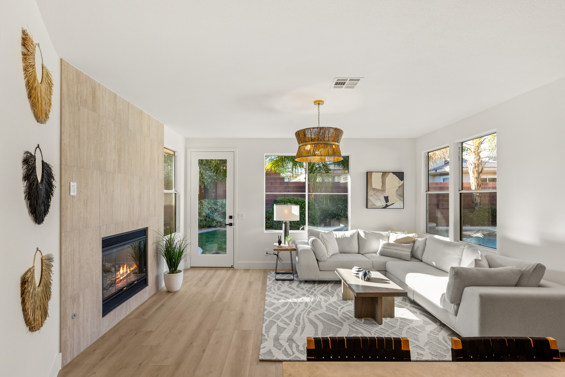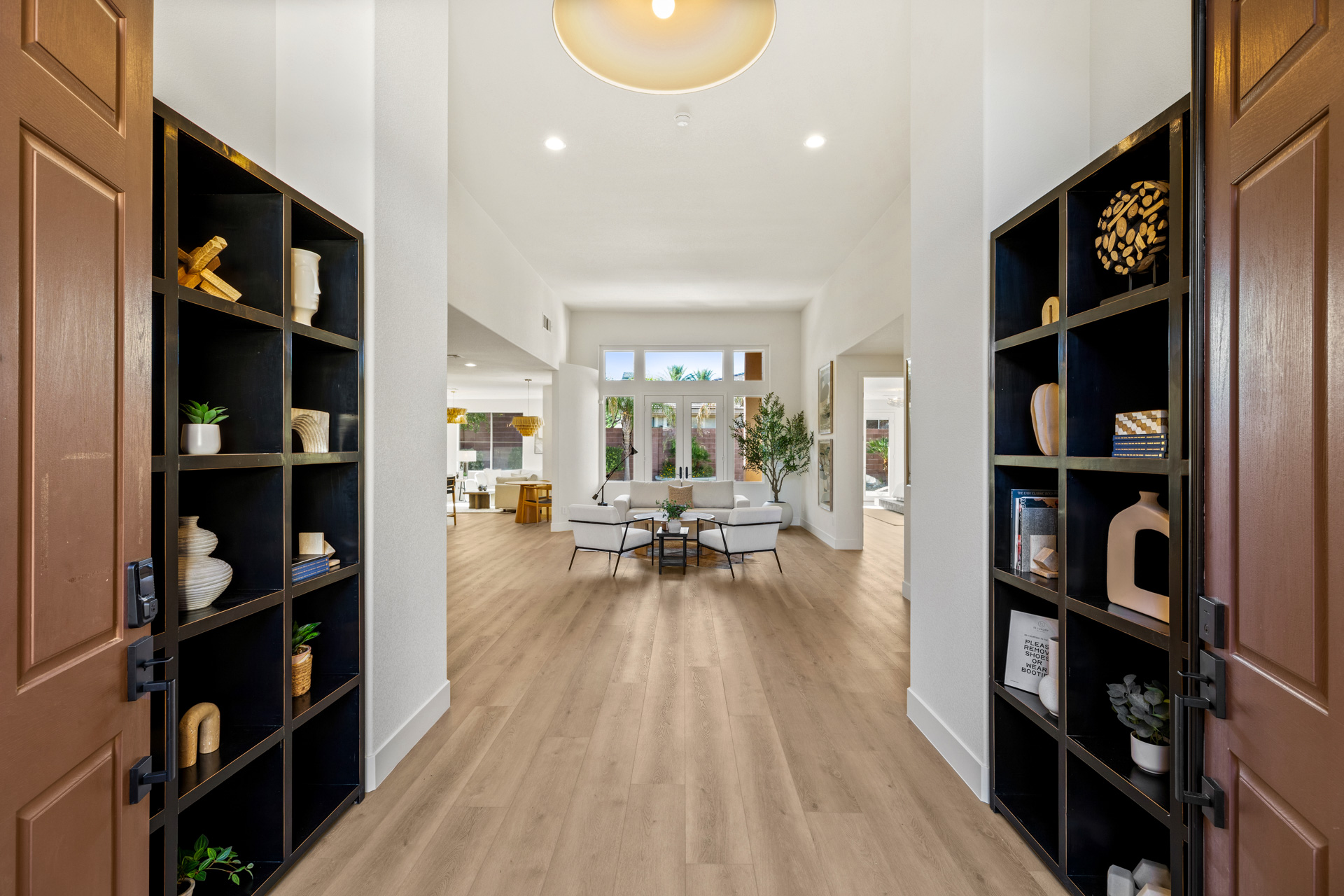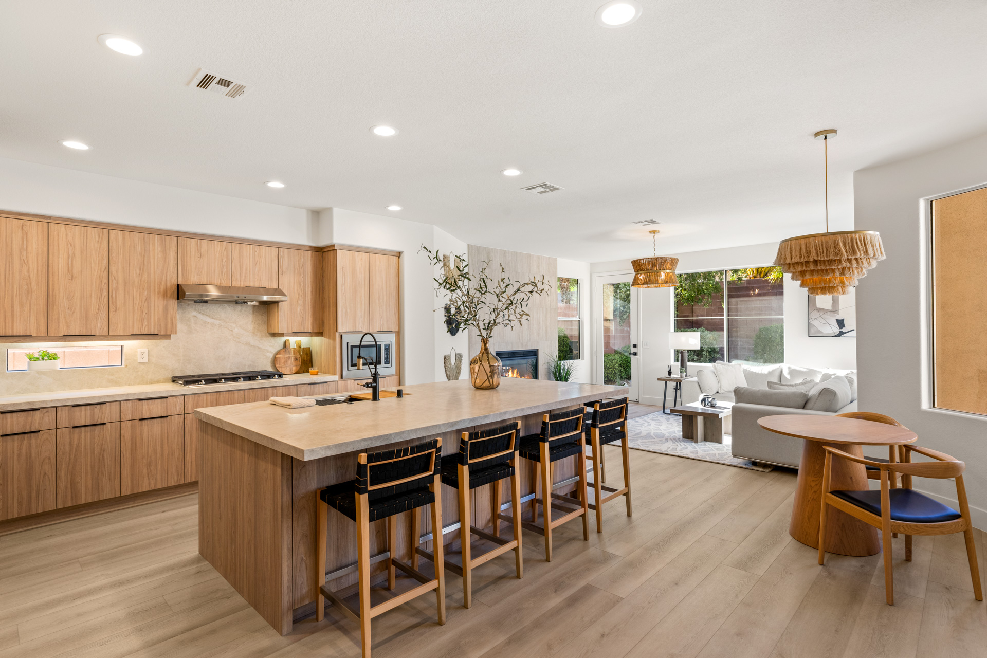 From the moment you step through the gated courtyard entrance, you’re greeted by a sense of timeless elegance and tranquility. Inside, the home’s open layout is bathed in natural light, showcasing its meticulously selected finishes. Every detail has been thoughtfully crafted, from the high-end Delta and Brizo plumbing fixtures to the custom cabinetry and Taj Mahal leathered quartzite countertops that flow throughout the home.