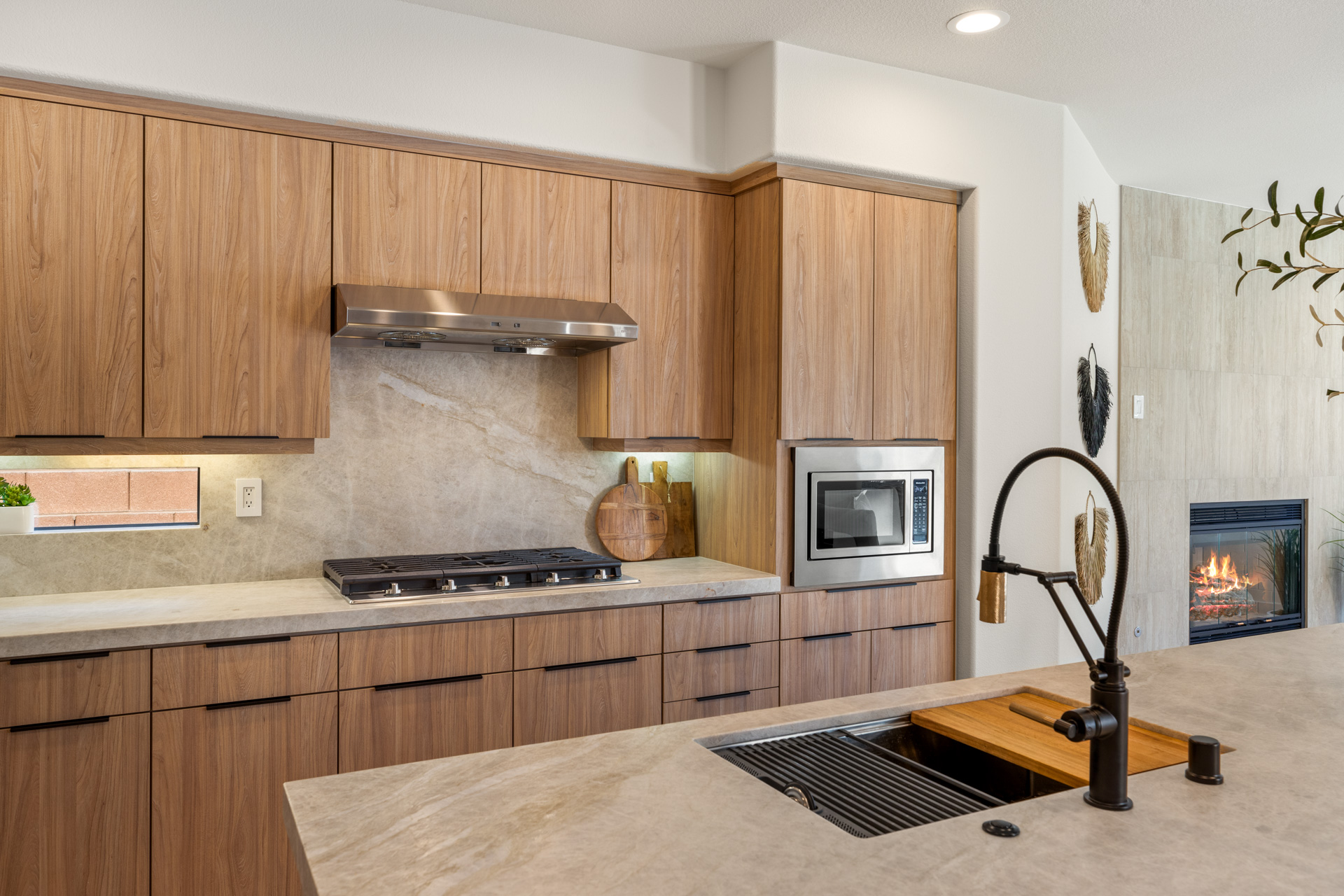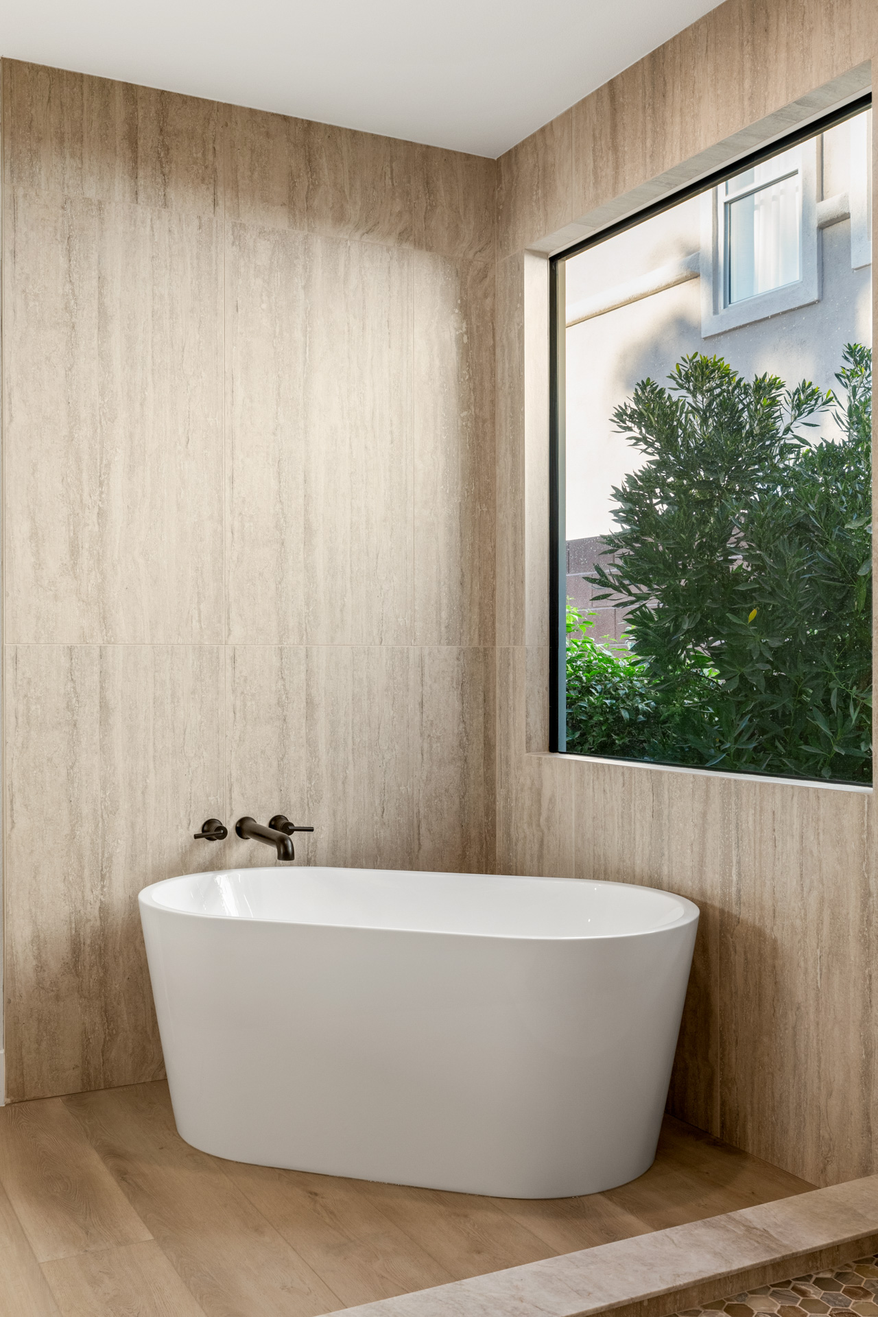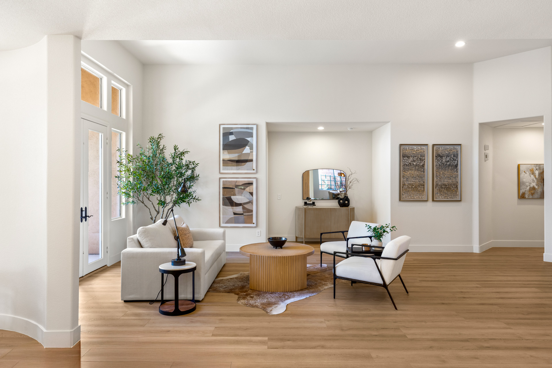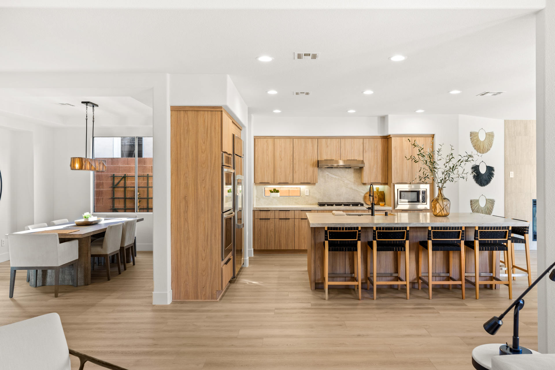 From the moment you step through the gated courtyard entrance, you’re greeted by a sense of timeless elegance and tranquility. Inside, the home’s open layout is bathed in natural light, showcasing its meticulously selected finishes. Every detail has been thoughtfully crafted, from the high-end Delta and Brizo plumbing fixtures to the custom cabinetry and Taj Mahal leathered quartzite countertops that flow throughout the home.