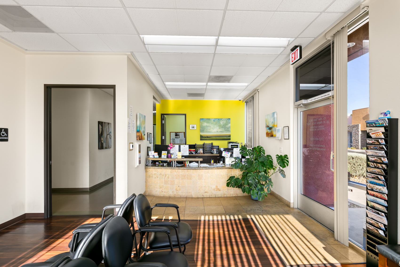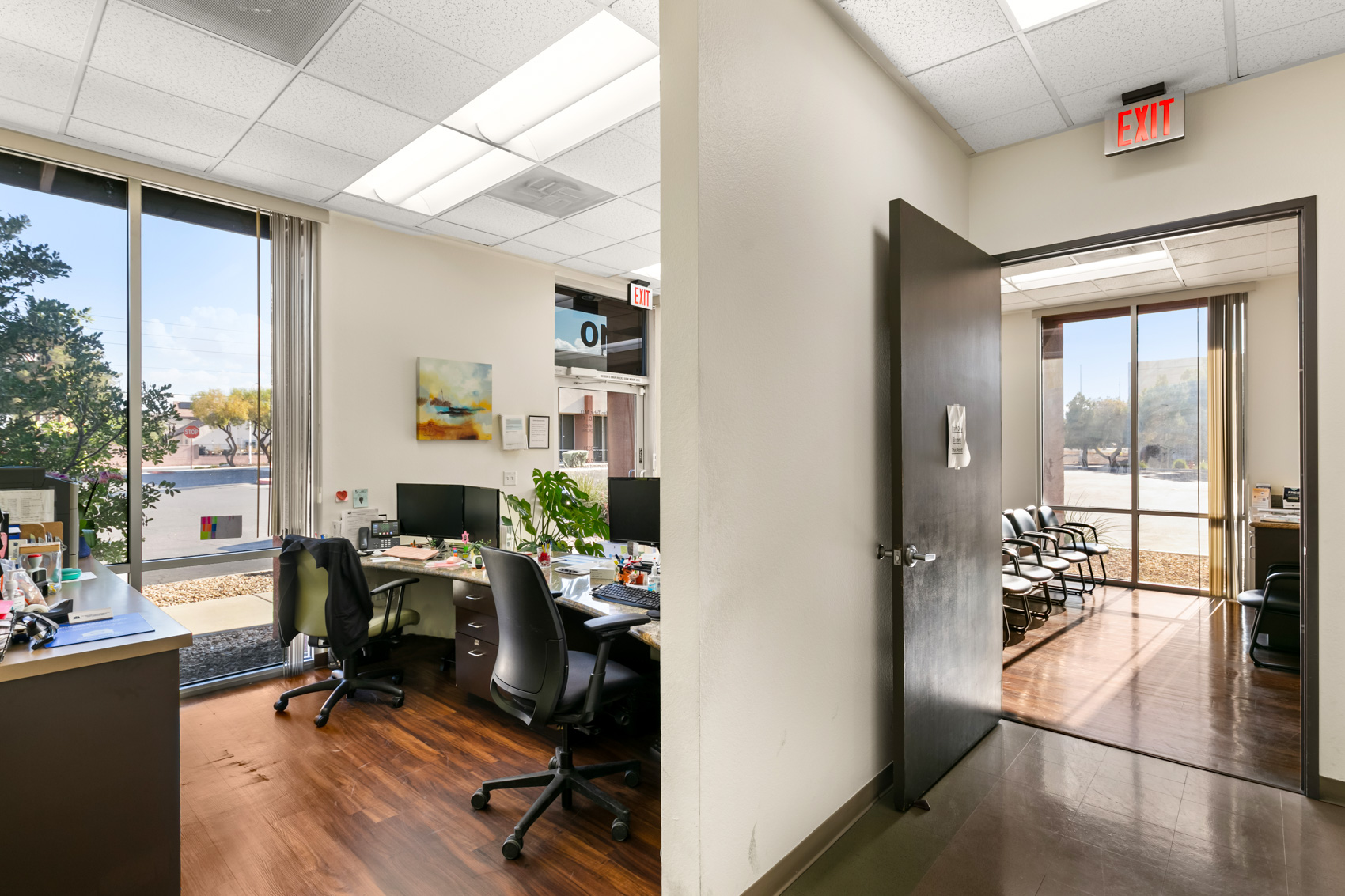 The property is strategically positioned to attract a steady flow of patients, thanks to its visibility and accessibility from major thoroughfares and public transportation routes. Designed with the needs of modern healthcare professionals in mind, the office space at 7170 Smoke Ranch Road is both functional and inviting. The building's contemporary architecture and professional aesthetic make a strong first impression on patients and visitors alike. The office features a spacious and welcoming reception area, designed to create a calming and professional atmosphere for patients as they wait for their appointments. The reception desk is ergonomically designed to facilitate efficient patient check-ins and administrative tasks.
