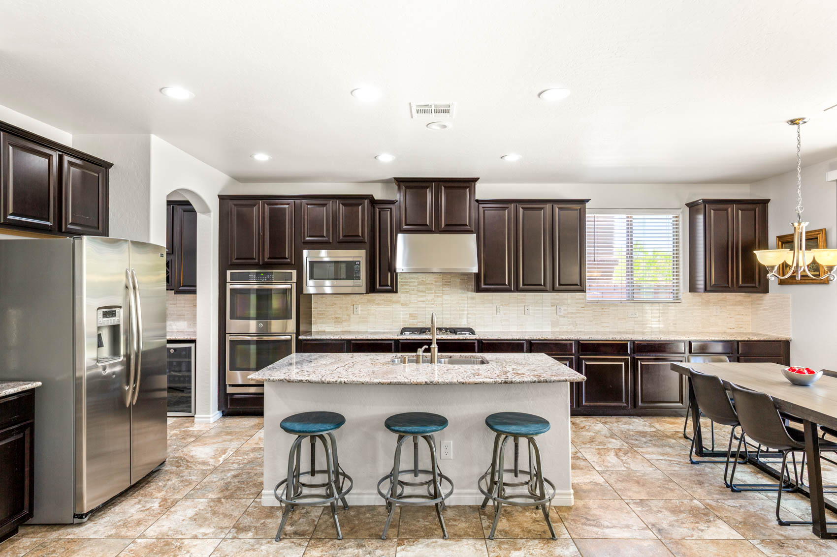 Experience luxury living in this luminous 5-bedroom, 3.5-bath home in the gated Esperanza community of Summerlin. With 3,805 sq ft of beautifully maintained space, pride of ownership shines throughout. Enjoy soaring ceilings, a spacious family room with fireplace, and a gourmet kitchen with stainless steel appliances, a large island, butlerās pantry, and wine fridge.
