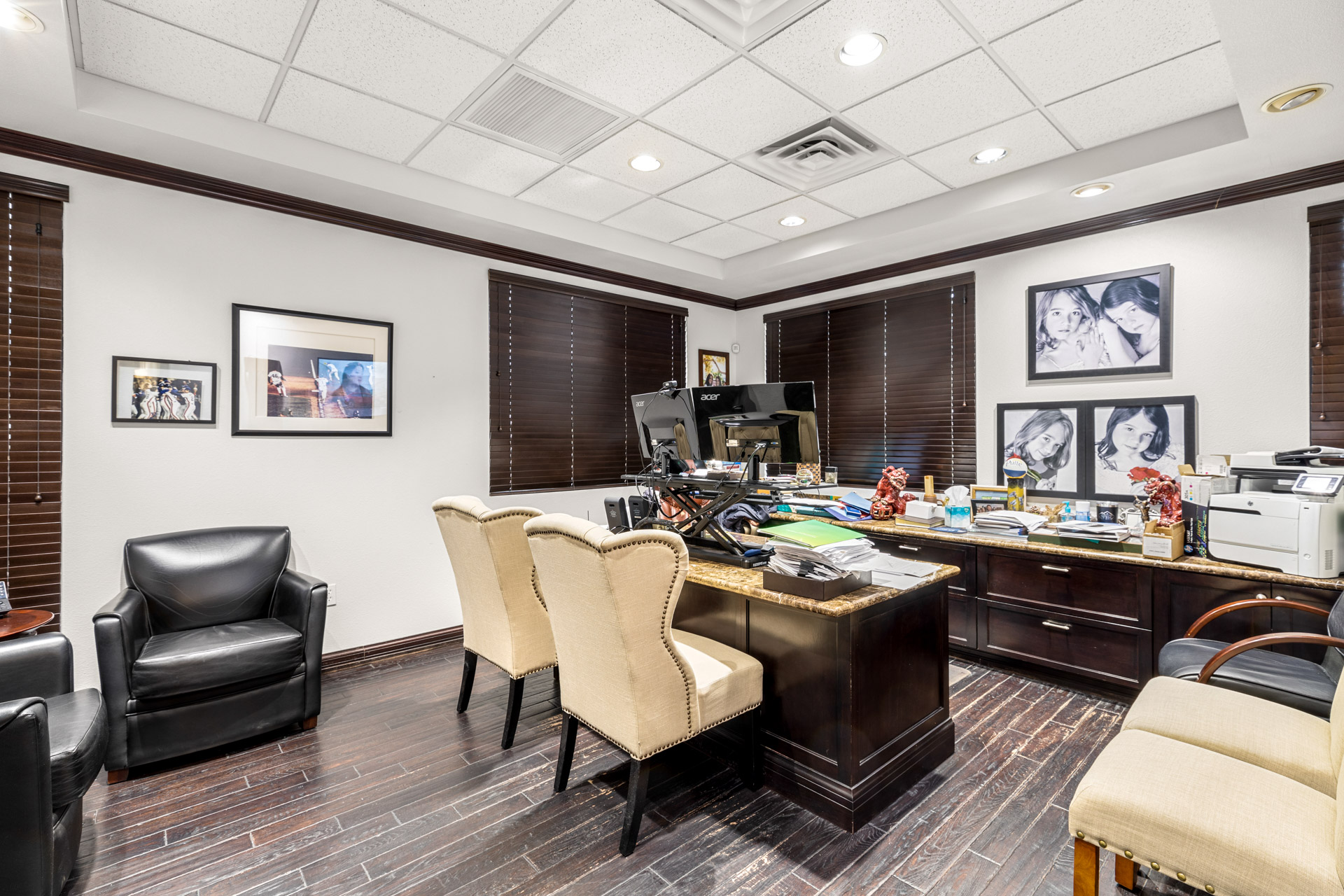 Additionally, there are 1 and 9 additional rooms respectively, which can function in any capacity: storage or smaller offices. Both properties have large conference rooms, kitchenettes/breakrooms, and an elegant, professional reception upon entry. The complex offers a high level of visibility and easy accessibility for its tenants and their clients. There is ample parking, and it is conveniently and centrally located near retail shopping and fabulous restaurants.