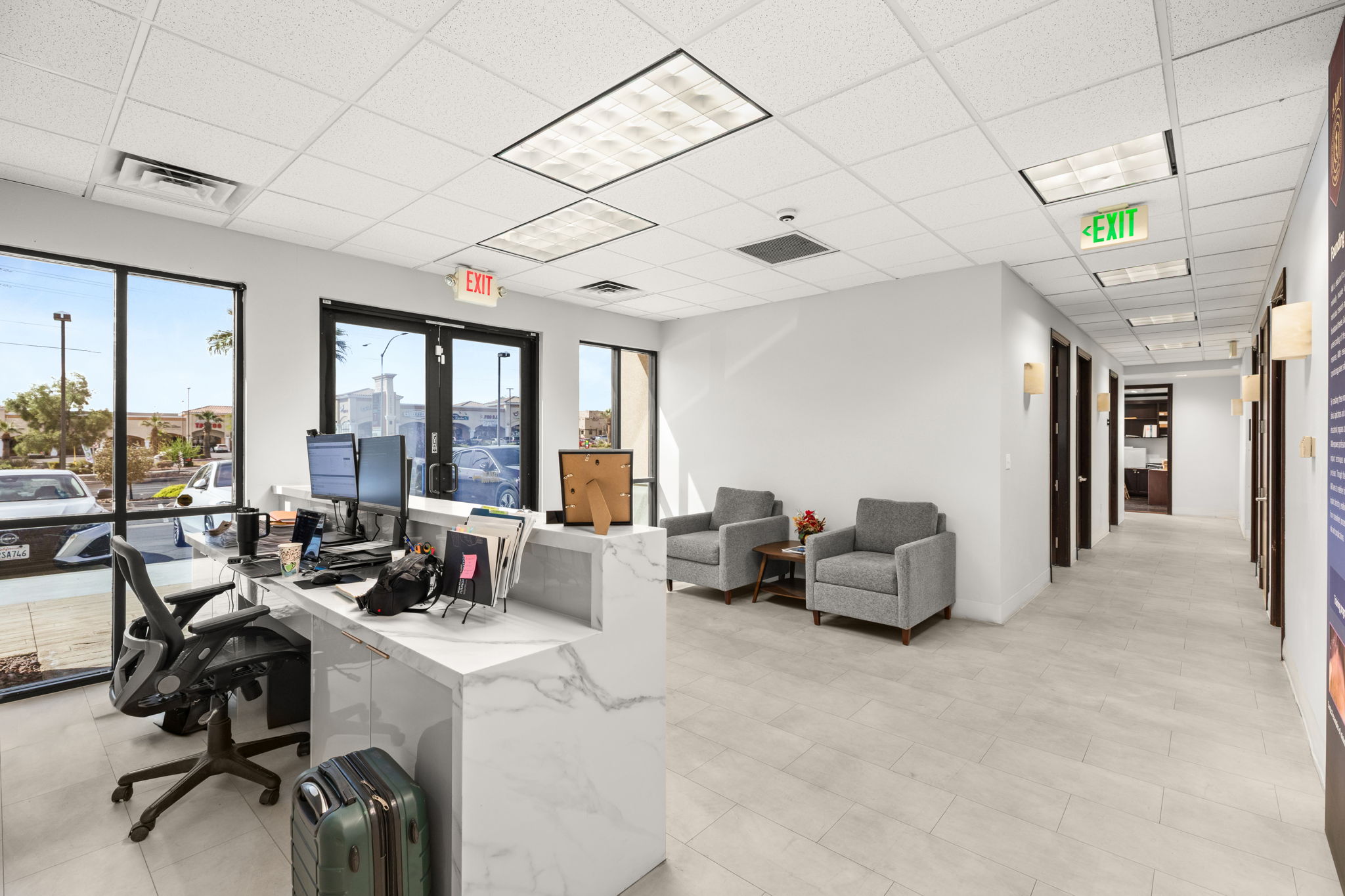 Location, location, location… Here you have it! Adjacent to the prestigious Lakes community in Las Vegas, Nevada, sits the perfect opportunity to own two commercial office buildings in a prime area, ideally situated for easy public access. Number 7830 is at the front of the complex, right when you enter, making it premiere real estate!