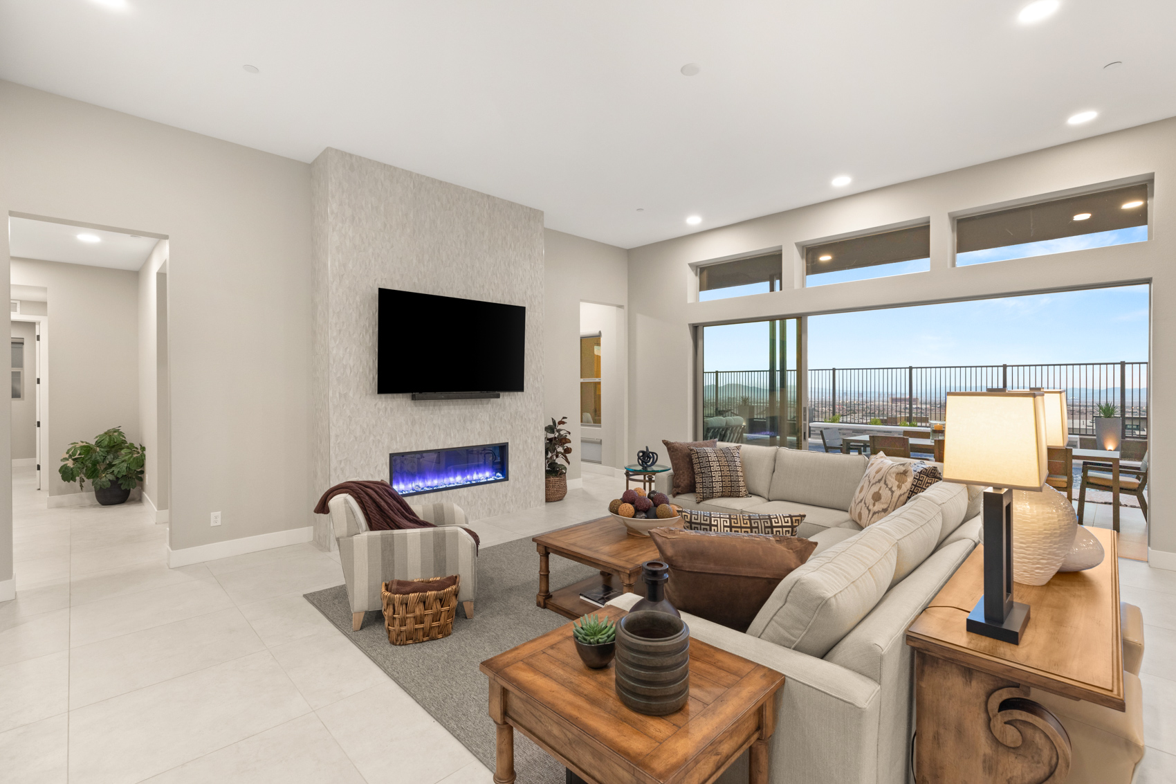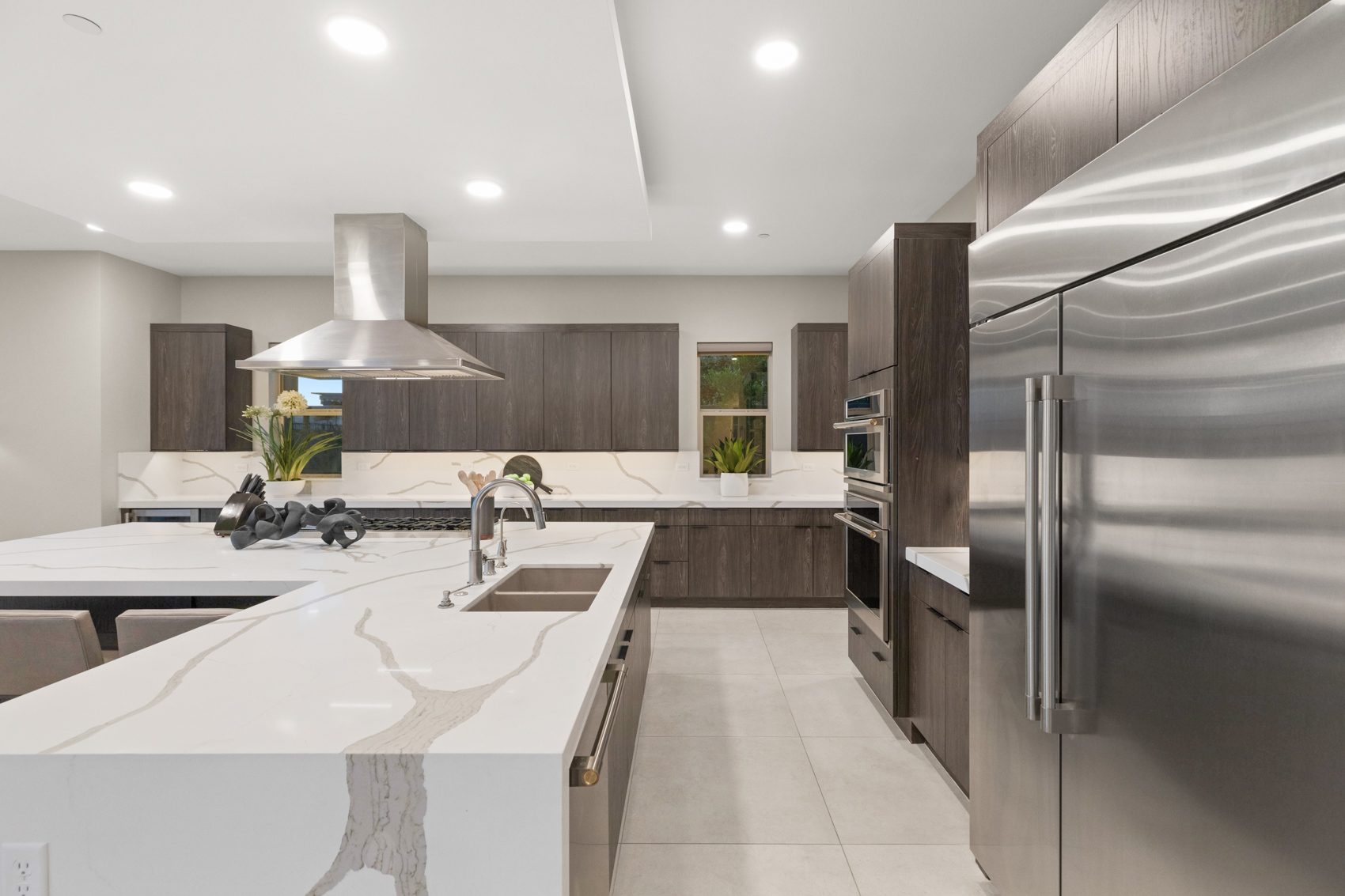 Upon entering through the private gated courtyard, you are greeted by an inviting entryway lined with pavers that create a warm, welcoming atmosphere. The homeās clean lines and open layout draw you in, with the great room immediately capturing your attention. Boasting an abundance of natural light, the great room is a central gathering space, where stacked sliding glass doors seamlessly blend indoor and outdoor living.