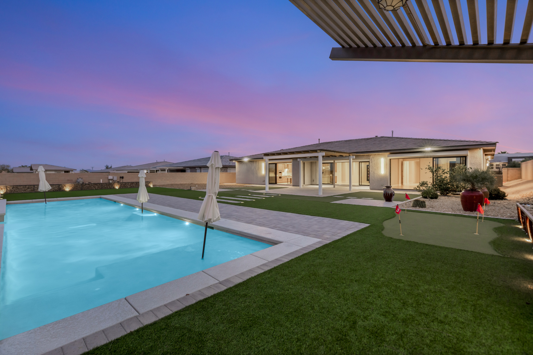 Set on a spacious half-acre homesite, this contemporary single-story residence offers refined comfort and versatile living. Featuring four bedrooms, including a private Multi-Gen suite with its own separate two-car garage, the layout is ideal for extended family, guests, or a dedicated home retreat.