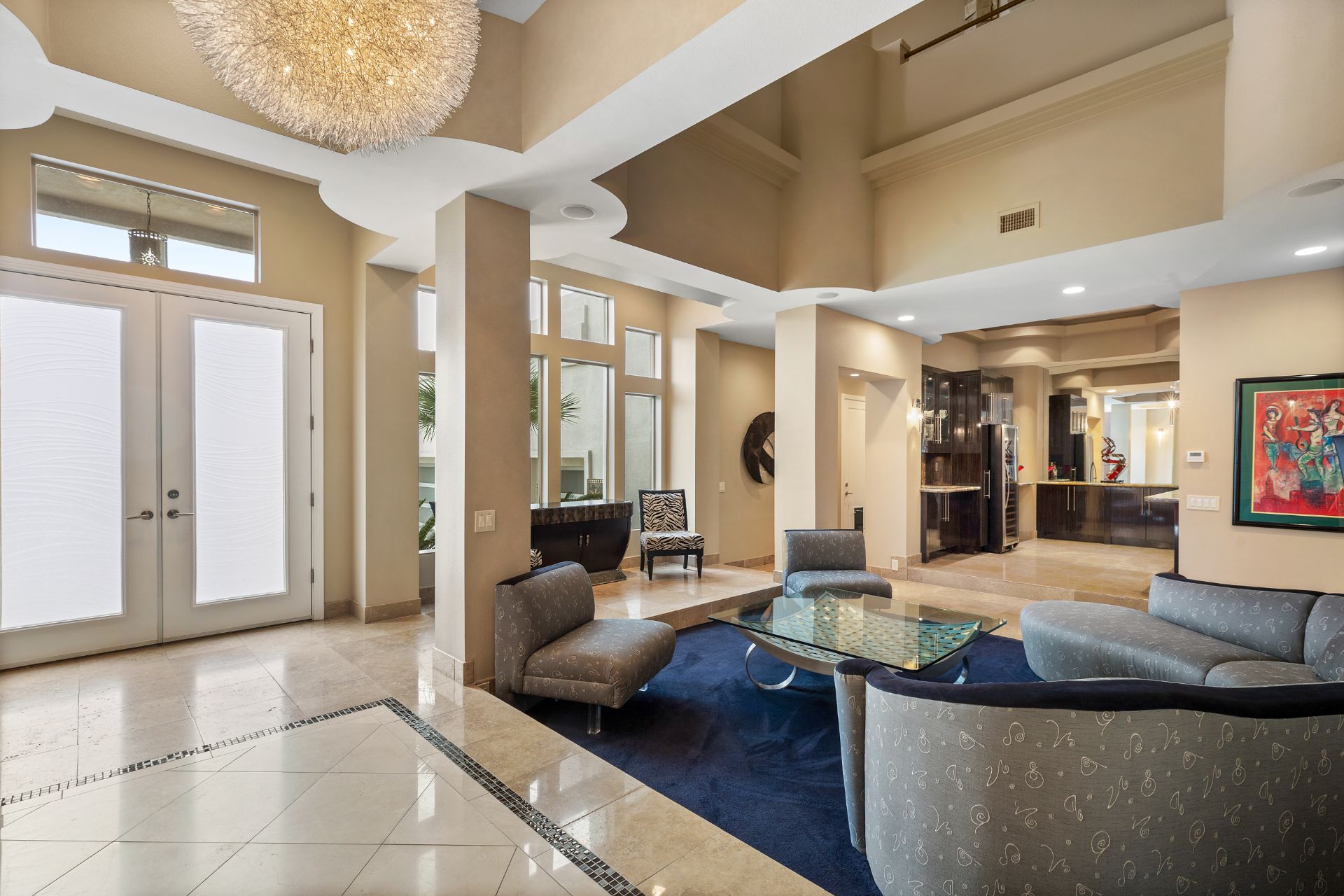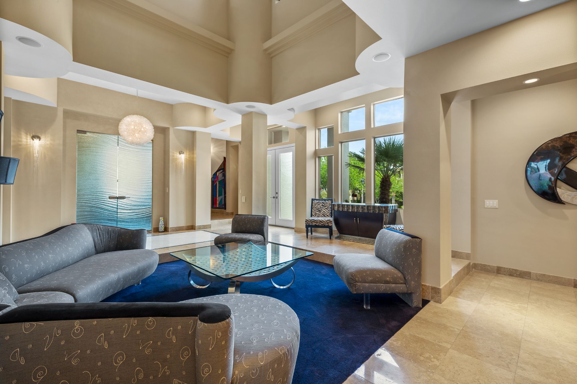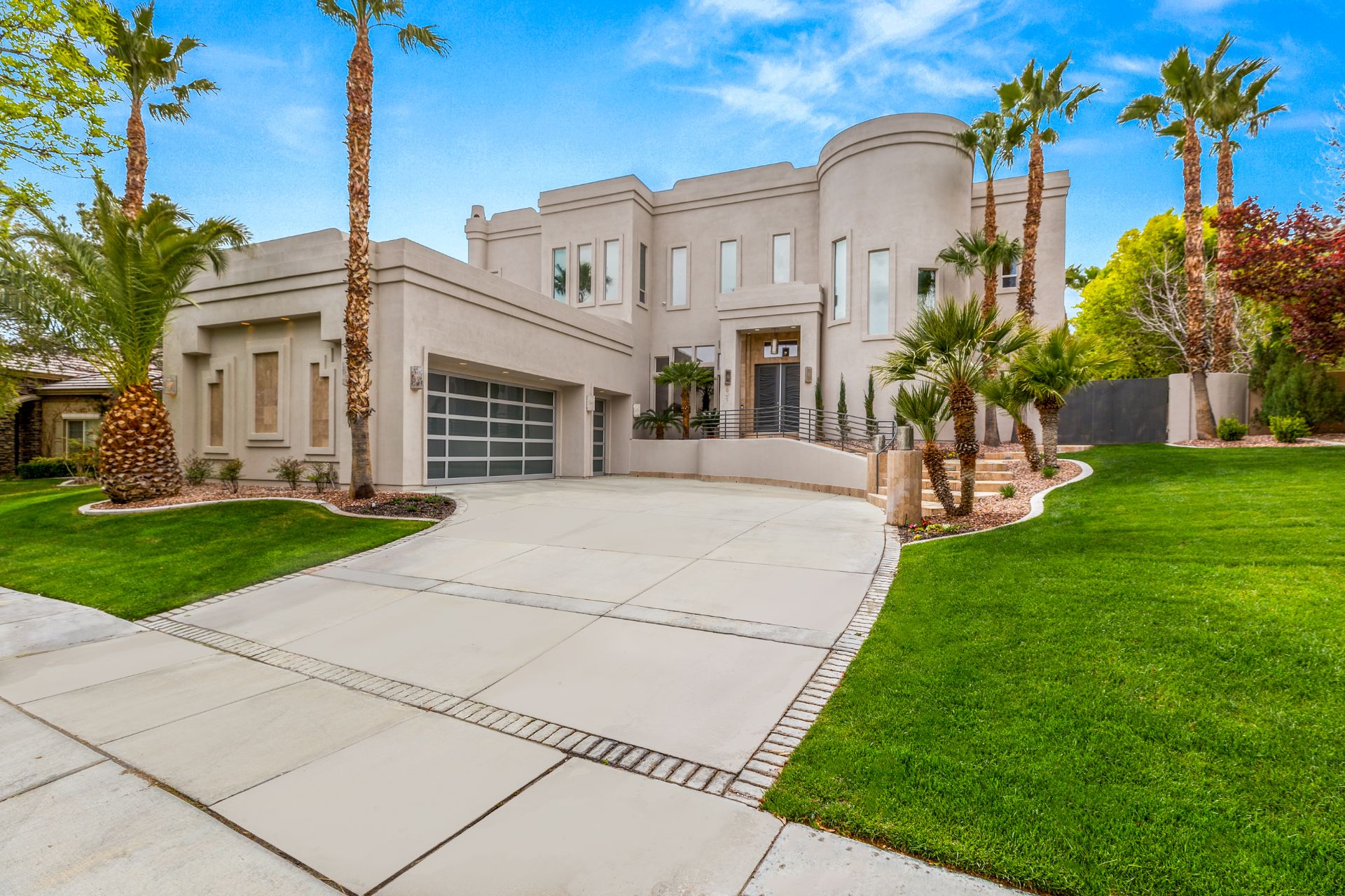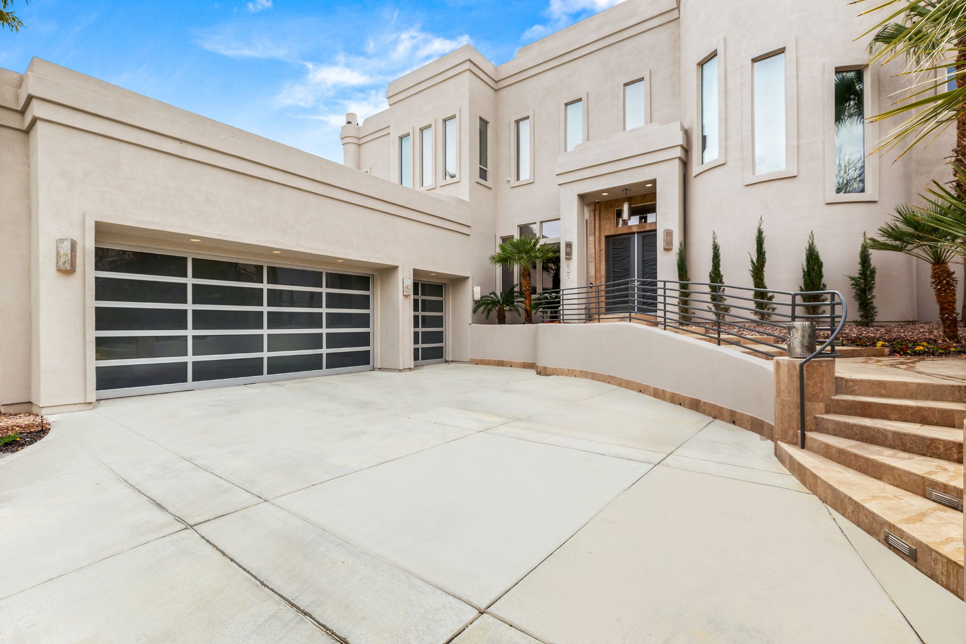 With five bedrooms and seven bathrooms arranged over two stories of living space, this residence has a total of 5,766 square feet, a three-car garage that includes workshop and storage space, and breathtaking views of The Strip and surrounding mountains from a third floor "perch."