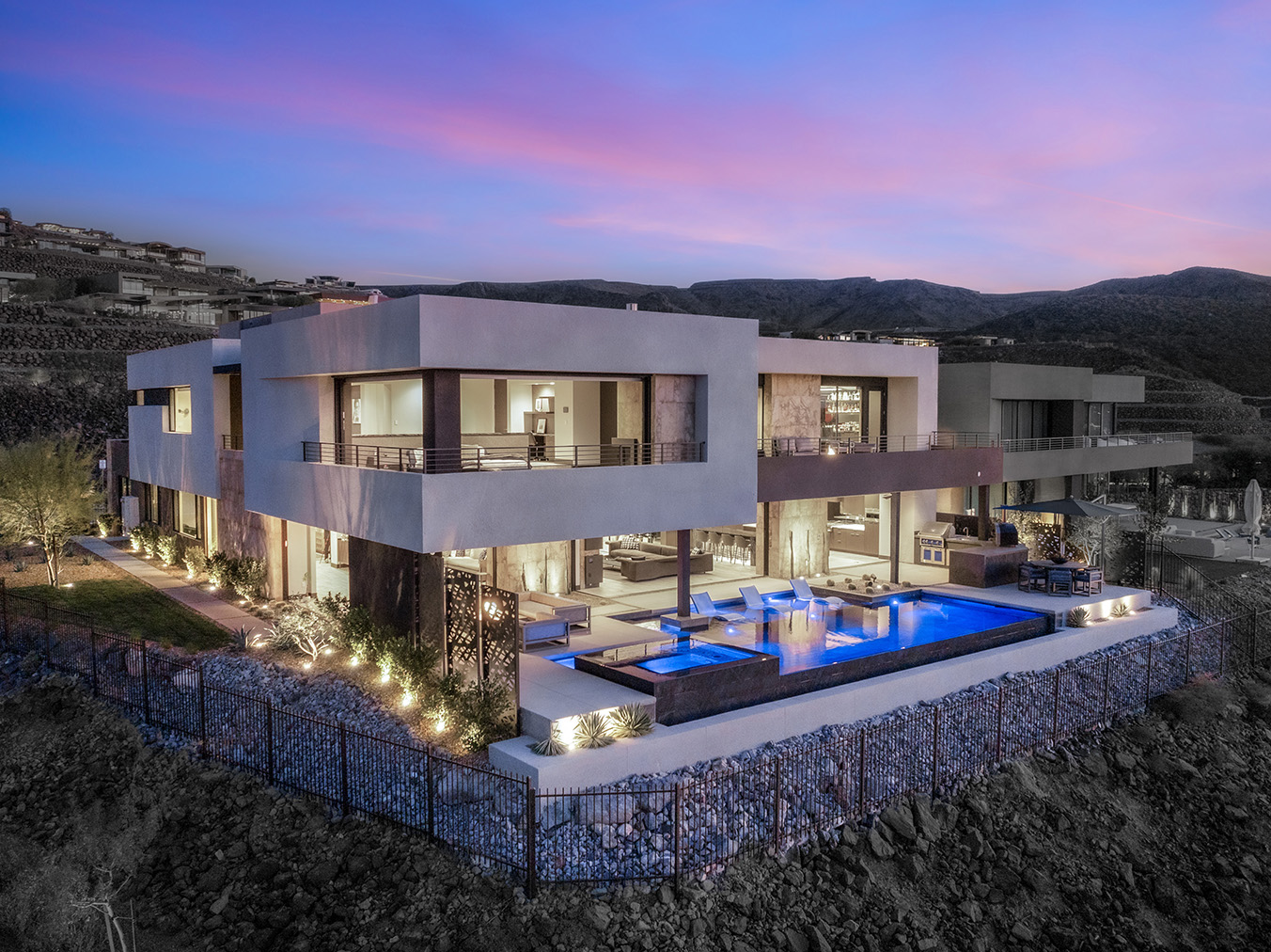 Welcome to a breathtaking desert contemporary masterpiece, where luxury and functionality converge. Perched to capture full Strip, valley, and mountain views, this exceptional residence features 4 bedrooms, 3.5 baths, a wine room, and a masterful chefās kitchenāperfect for both entertaining and everyday living.