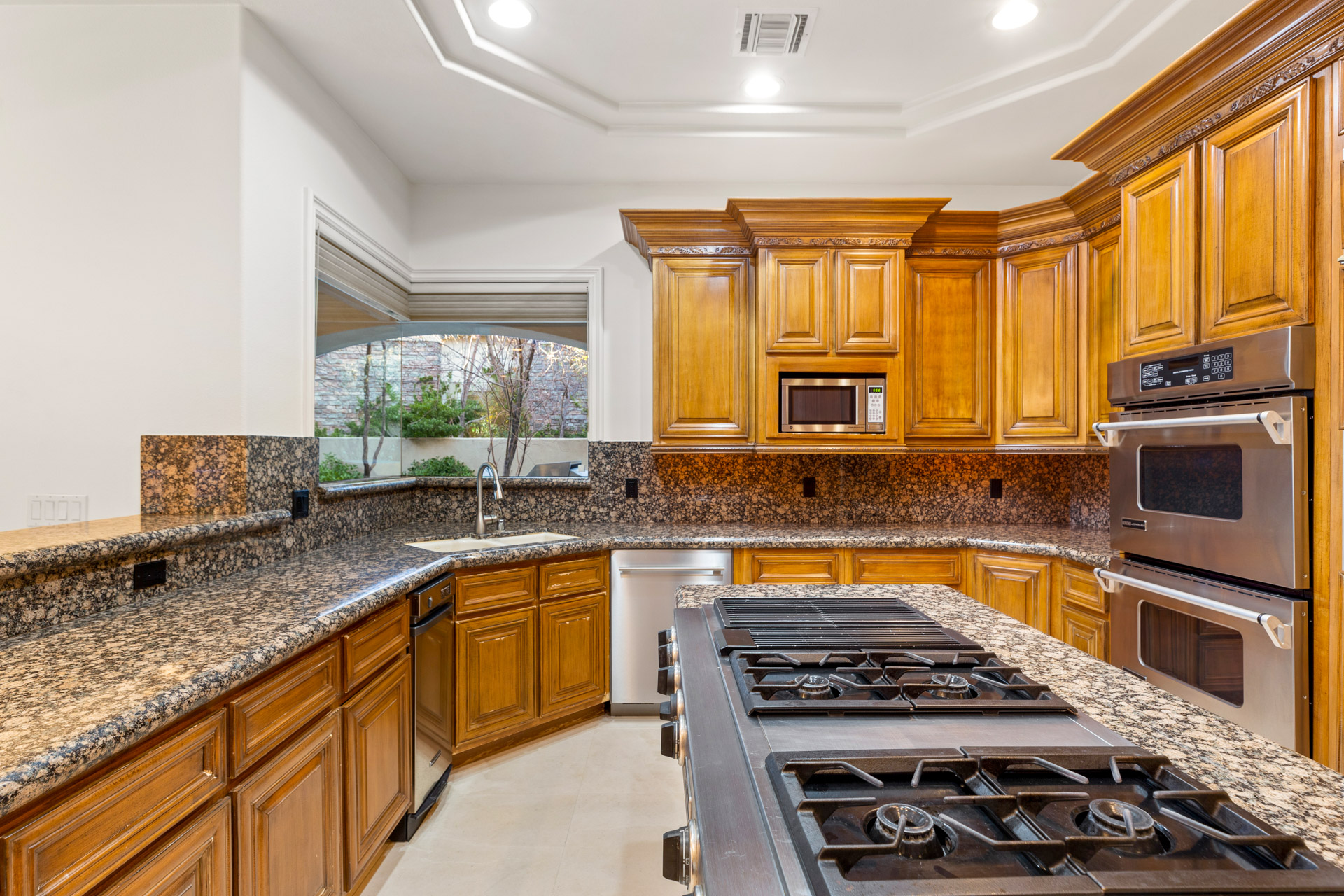 With its picturesque surroundings and spacious living quarters, 807 Canyon Greens Drive secures its position among sought-after luxury estates in west Las Vegas. The residence can be found in Canyon Fairways, a prestigious and well-established community featuring guard-gated, secure entry. Canyon Fairways is an urban and residential community developed on the western rim of the Las Vegas Valley, against the breathtaking backdrop of the Red Rock National Conservation Area and Spring Mountain Range. It offers residents a host of exclusive amenities, including nine golf courses and a broad abundance of parks and recreational trails.