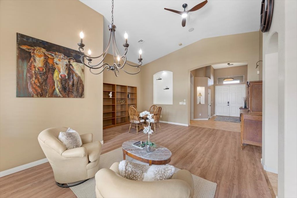 Welcome to this well maintained four bedroom, 3,048 square foot single story residence with a lot size just under 11,000 sq ft the northwest Log Cabin Estates community, a rare opportunity backing up to protected fossil beds and open desert, ideally positioned adjacent to Floyd Lamb Park with easy access to Mt. Charleston. Set on a spacious quarter acre lot, the property features two detached sheds equipped with electricity and heating and cooling, offering flexible space for a variety of uses.