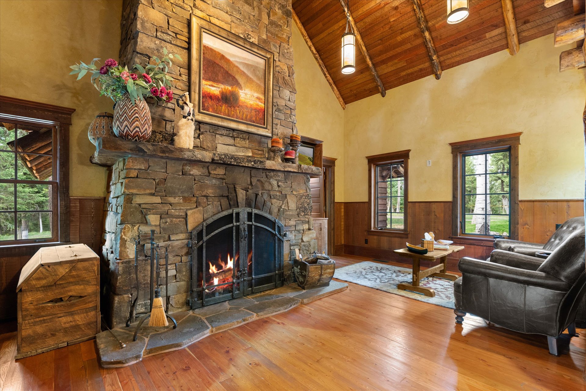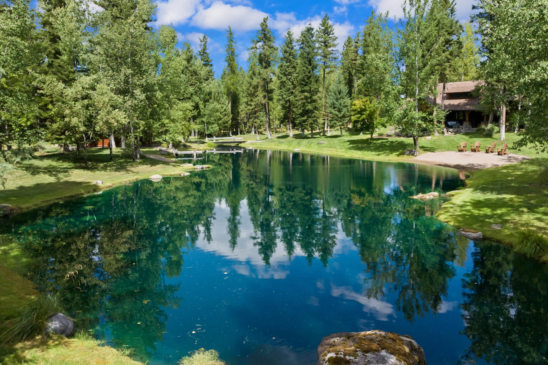 Welcome to this exquisite 40-acre ranch located in the gated community of Whitefish Hills. This rustic, Yellowstone-inspired oasis offers the perfect blend of natural beauty and modern comforts. With its horse-friendly amenities, the sprawling pastures and stables, make it a dream for equestrian enthusiasts. A tranquil stream winds its way through the property and flows into a picturesque pond in the heart of the estate.