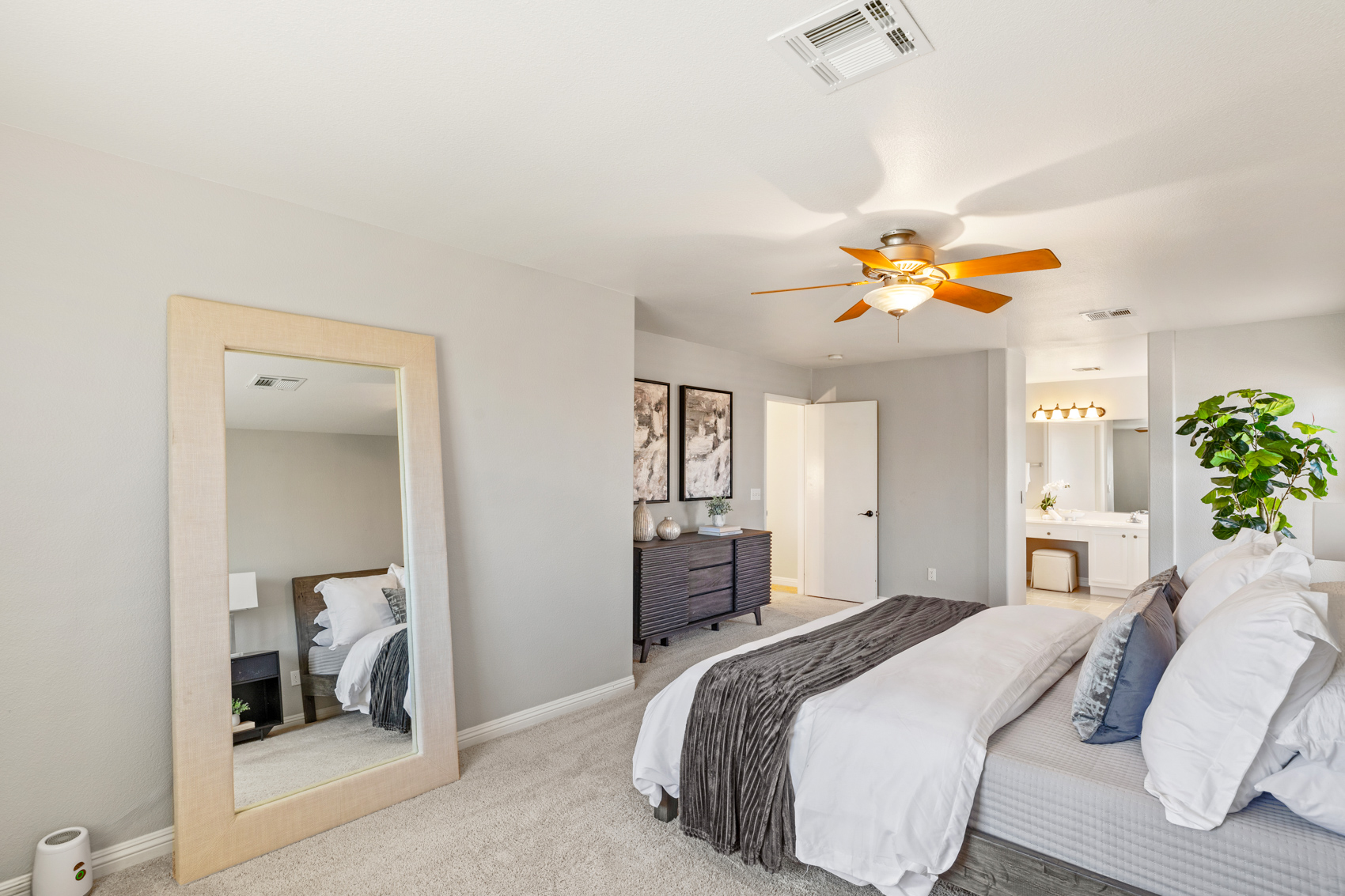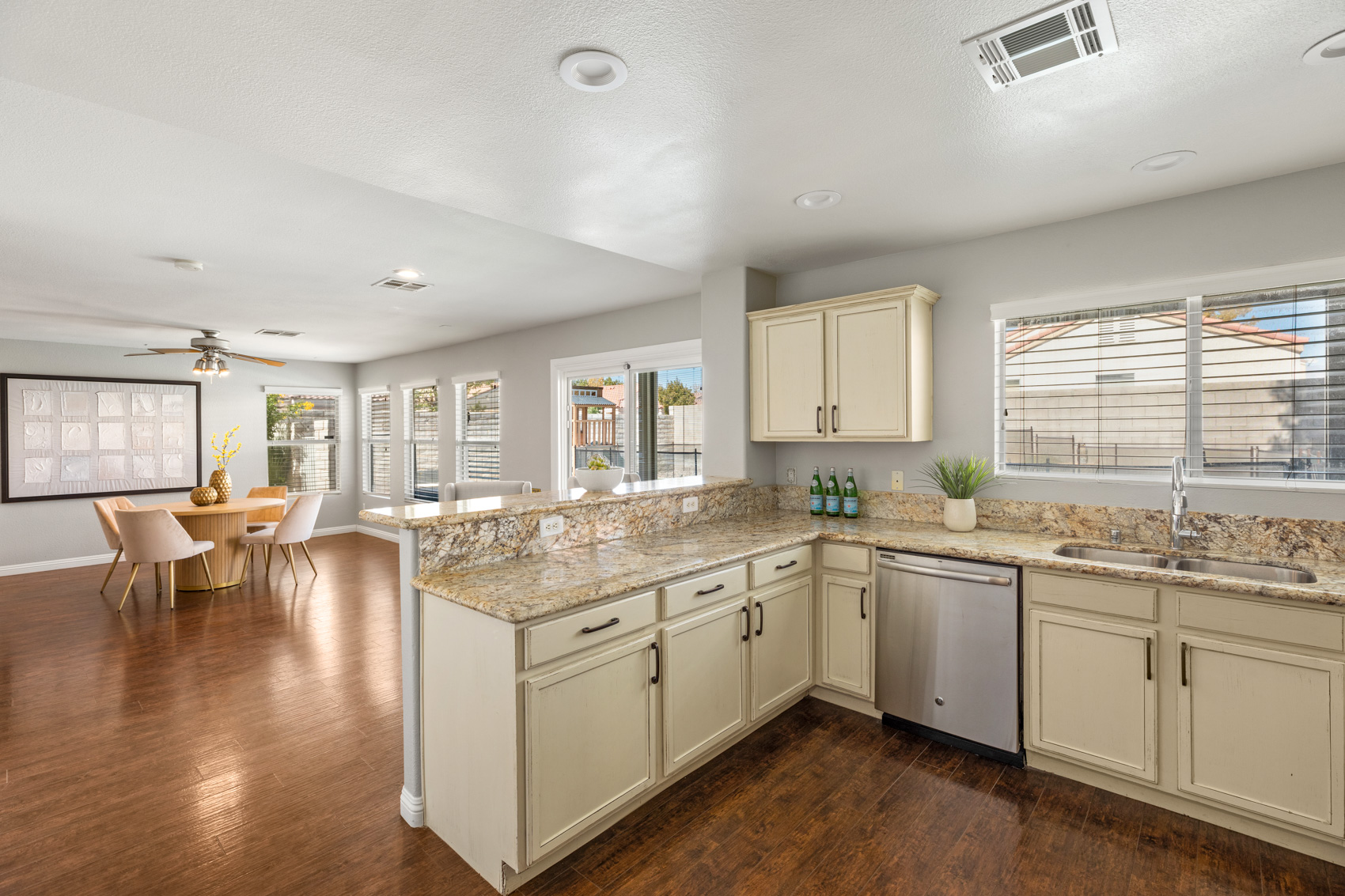 Nestled in the vibrant Northwest area of Las Vegas, this captivating 3-bedroom, 3-bathroom home offers 2,051 sq. ft. of elegant living space. This two-story gem boasts natural light throughout, illuminating an upgraded kitchen with granite countertops and stainless steel appliances. The expansive primary suite features a retreat area, perfect for relaxation.