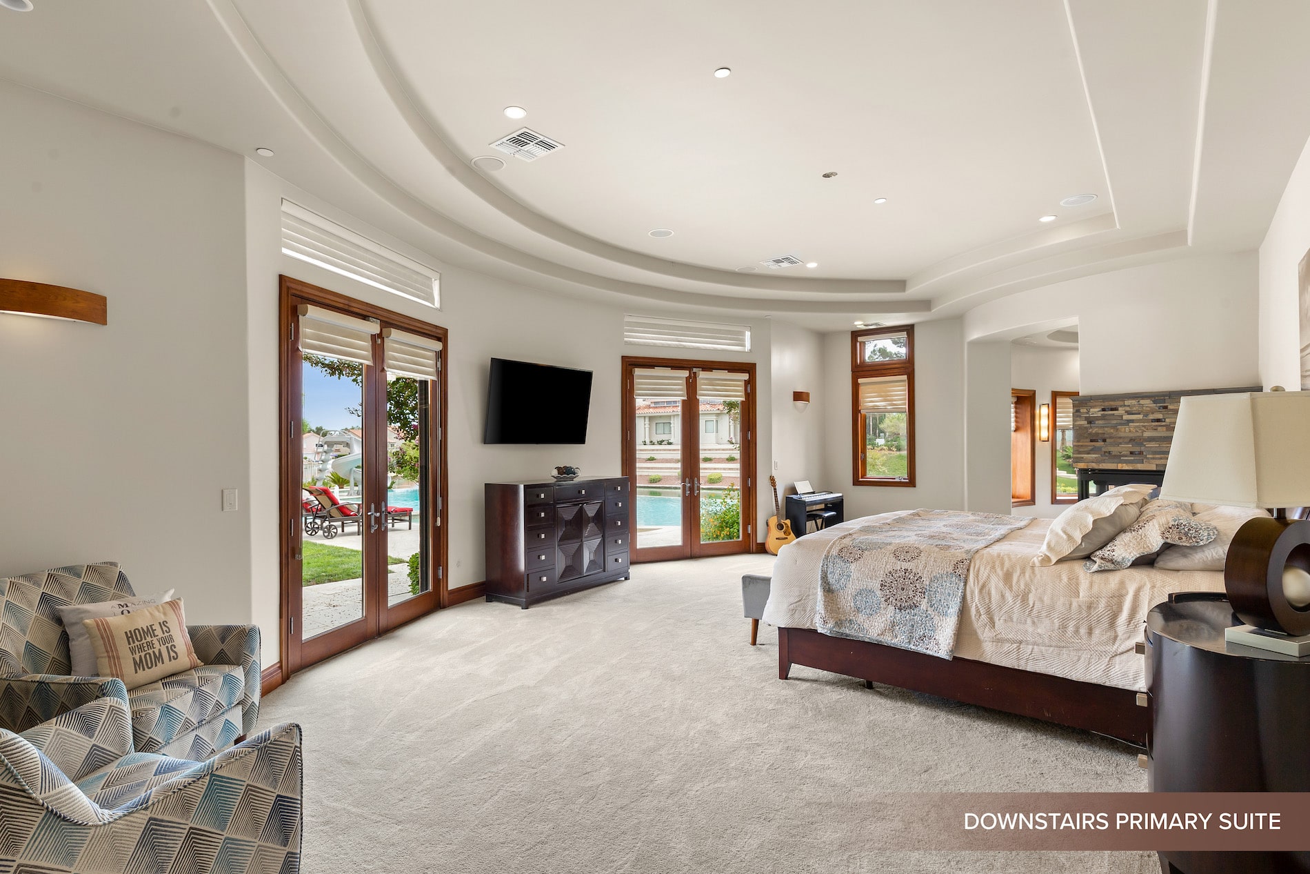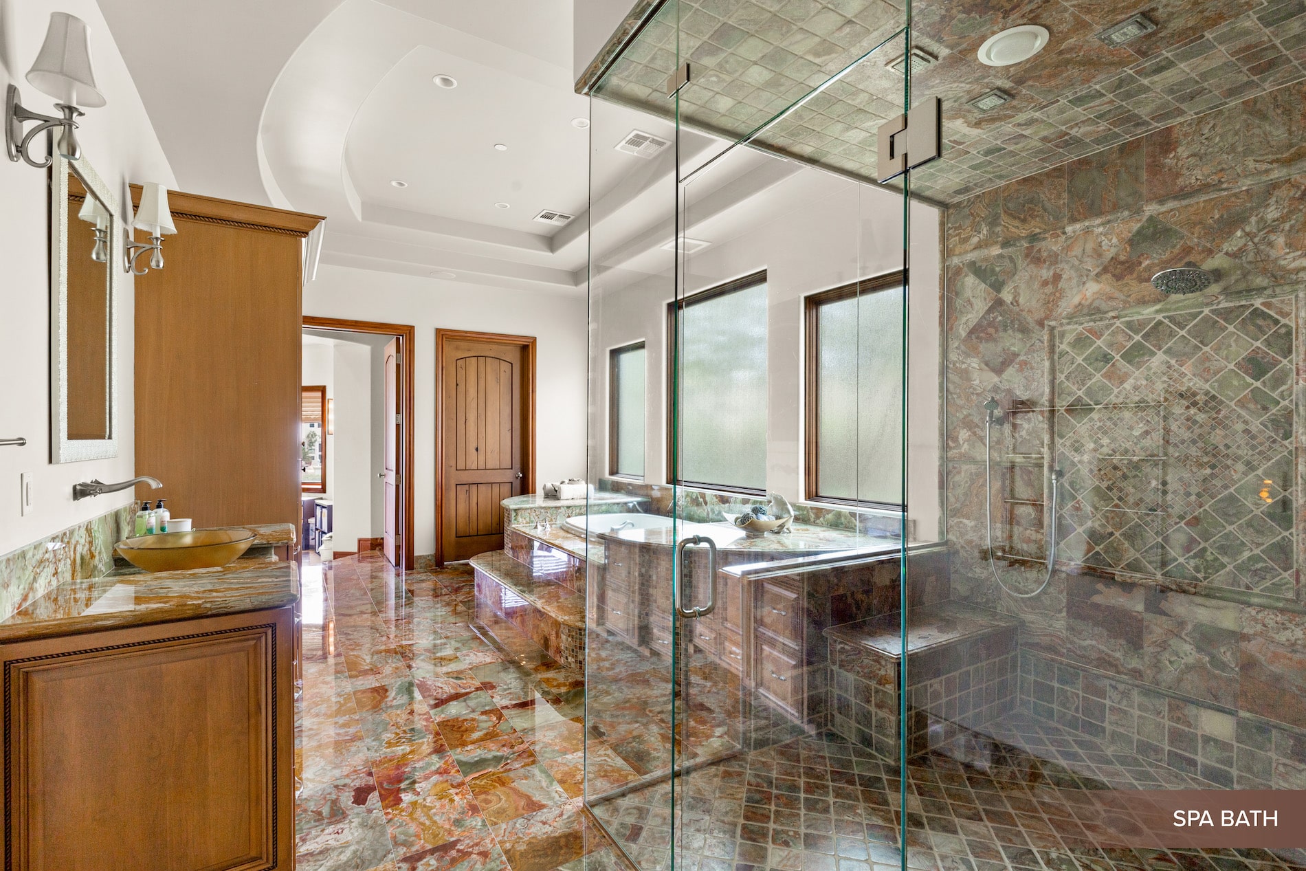 This estate boasts 6 bedrooms, each with ample closet space. The attention to detail is captivating. The Tray ceilings offer dimension to every room. The flooring throughout the primary living area is finished in premium marble and hardwood, lending an air of sophistication and elegance to the already striking space. The gourmet kitchen features a large island, granite countertops, top-of-the-line stainless steel appliances, including two dishwashers, a Sub-Zero refrigerator, and a wine cooler. The kitchen seamlessly flows into the family room making entertaining in this space a breeze. If entertaining is your thing - this house was made for you! There is a game room, gym, theatre, two separate bar areas, and a sauna. And we have not even gone outside yet. Step into the backyard and you will understand the magic of Northshore Estates! Not only do you have your own private oasis, complete with covered patio, fire pit, television, full custom outdoor kitchen, infinity pool and hot tub. But your own secluded lake awaits, complete with deck and boat at your disposal. Enjoy monthly music and events on the lake. Take part in community activities. Or just relax in your backyard and appreciate the spectacular views. Do not miss the opportunity to experience the best in luxury living, and create the lifestyle you want in one the most desirable communities.