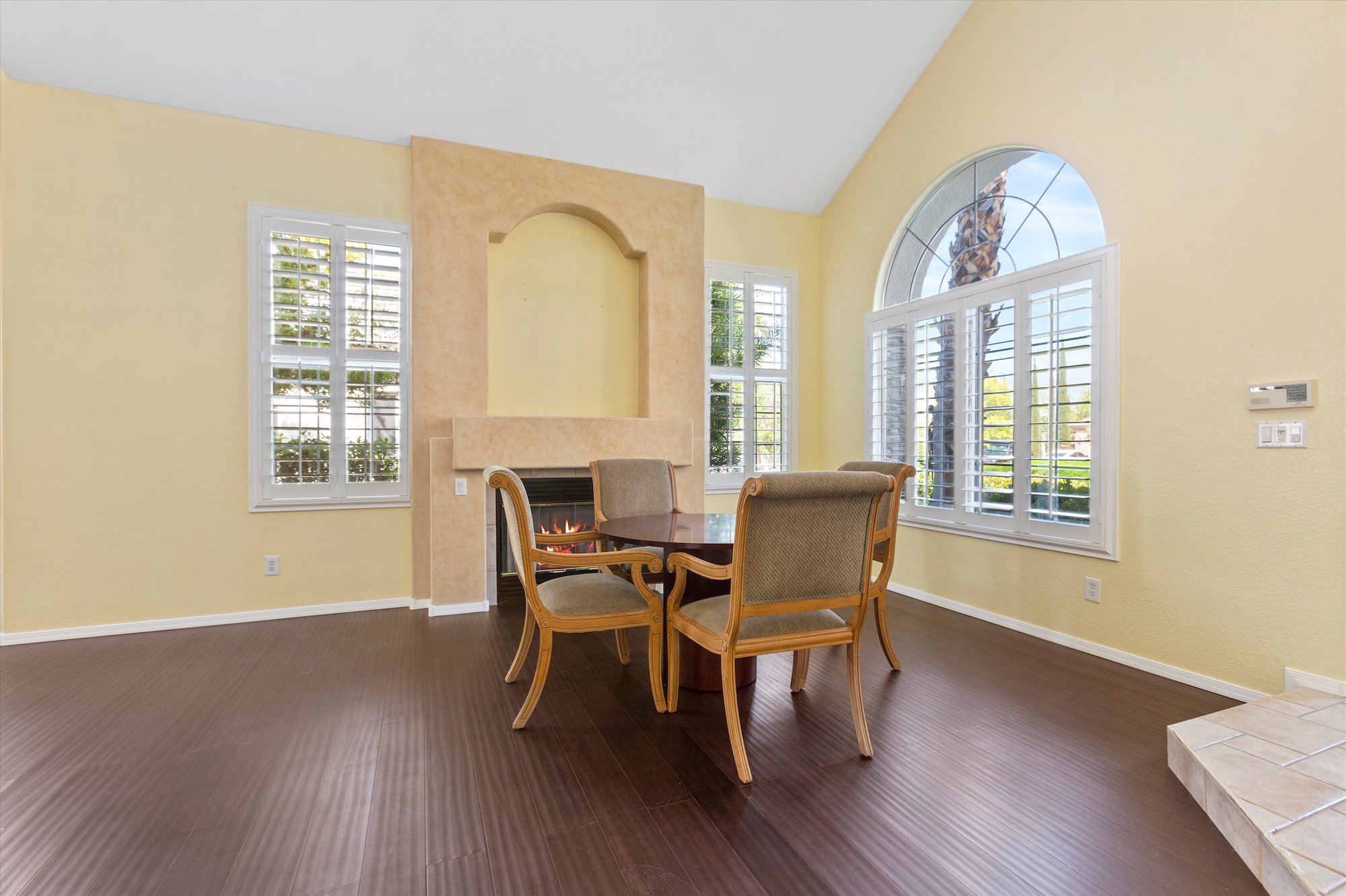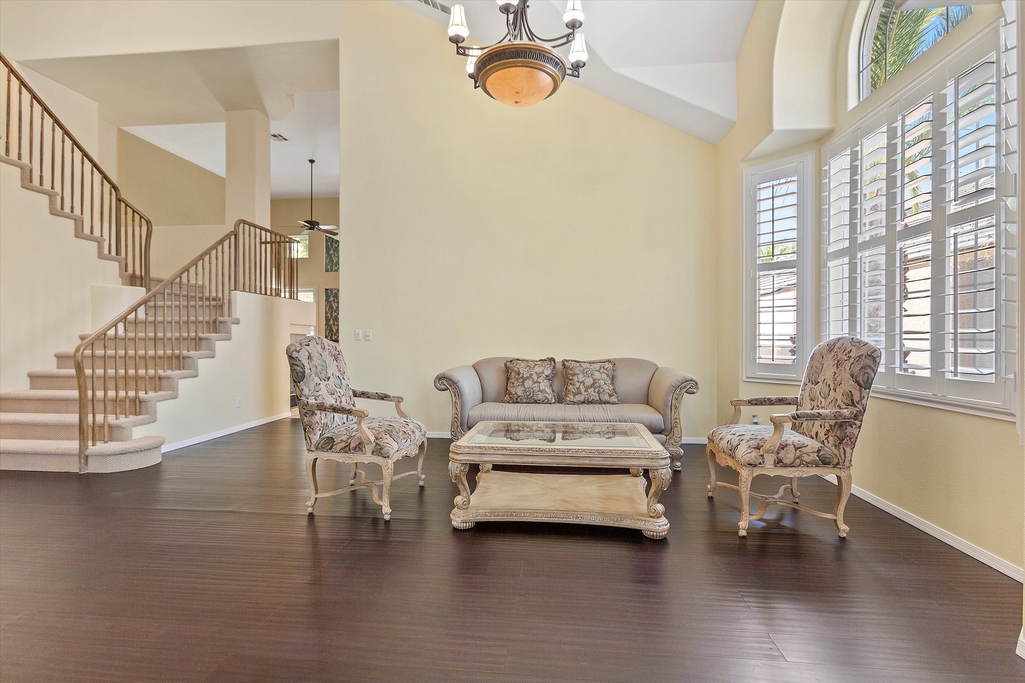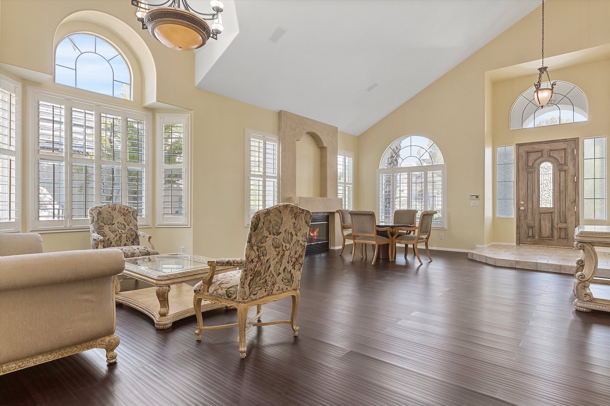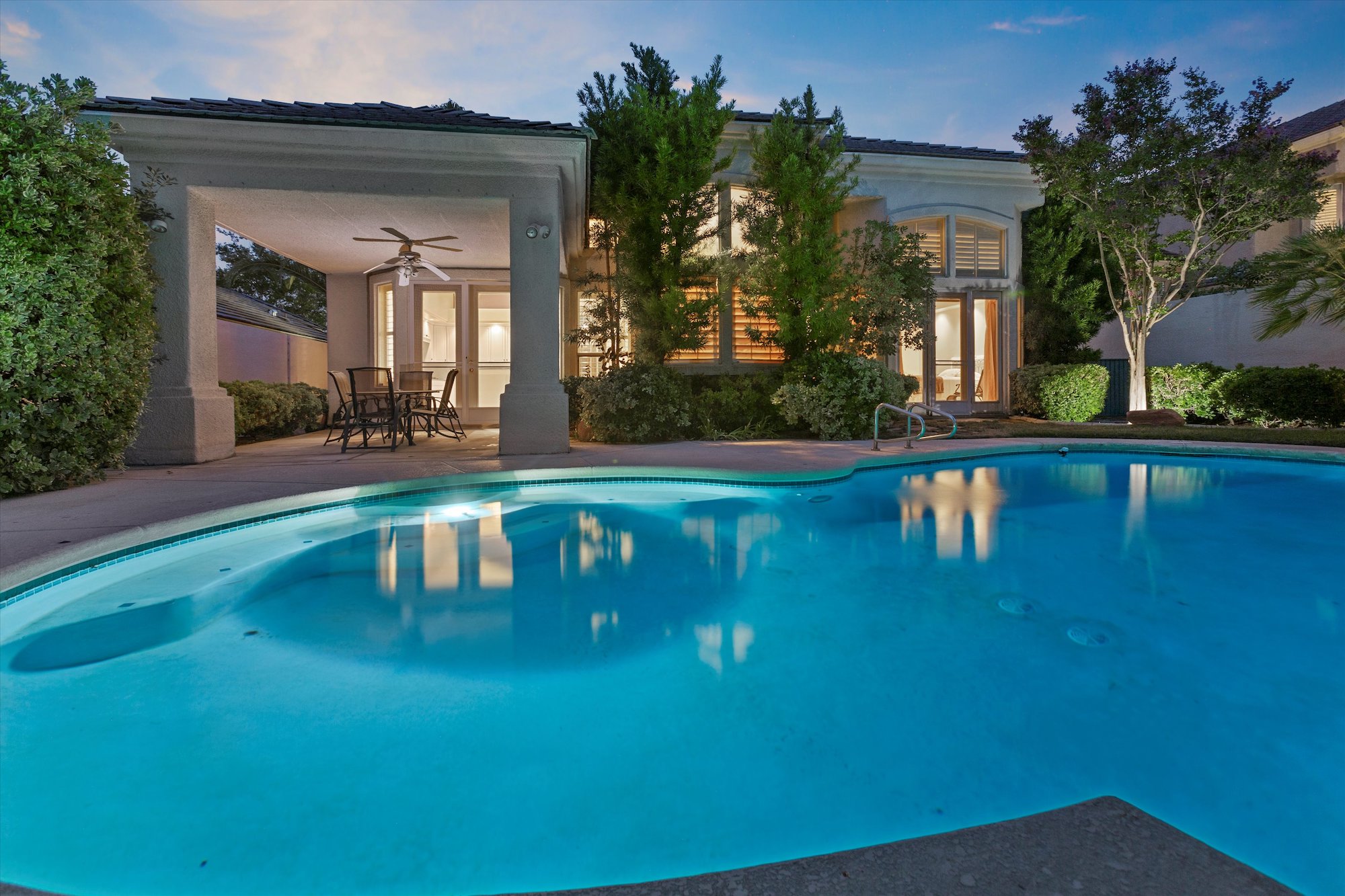 Classic architecture with stacked stone columns and arch-top windows and doors characterizes this well-priced home in the guard-gated Corta Bella community of Summerlin. With three bedrooms, four baths, a three-car garage, three fireplaces and a unique wet bar, the home features a main-level master suite that opens directly to the backyard pool and patio.