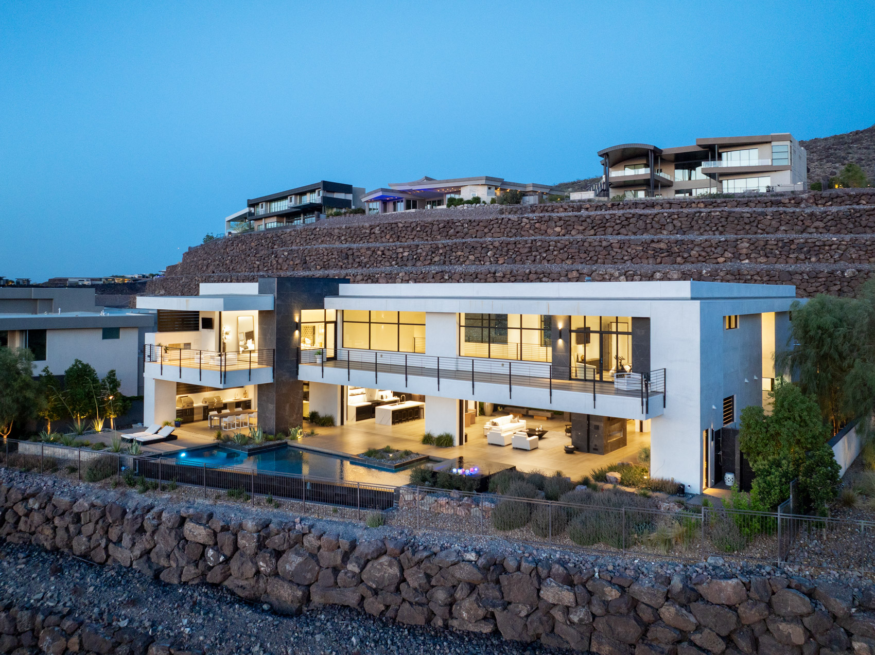 Perched high above the Las Vegas Valley in the exclusive guard-gated community of ASCAYA, 9 Boulderback Drive is a striking modern estate designed for seamless indoor/outdoor living and elevated luxury. This two-story custom home spans 6,170 square feet on a 0.4-acre elevated lot, offering unobstructed views of the iconic Las Vegas Strip and city skylineāvisible from nearly every angle of the home.
