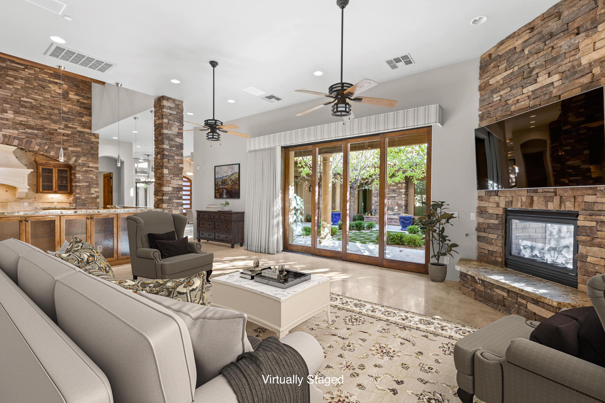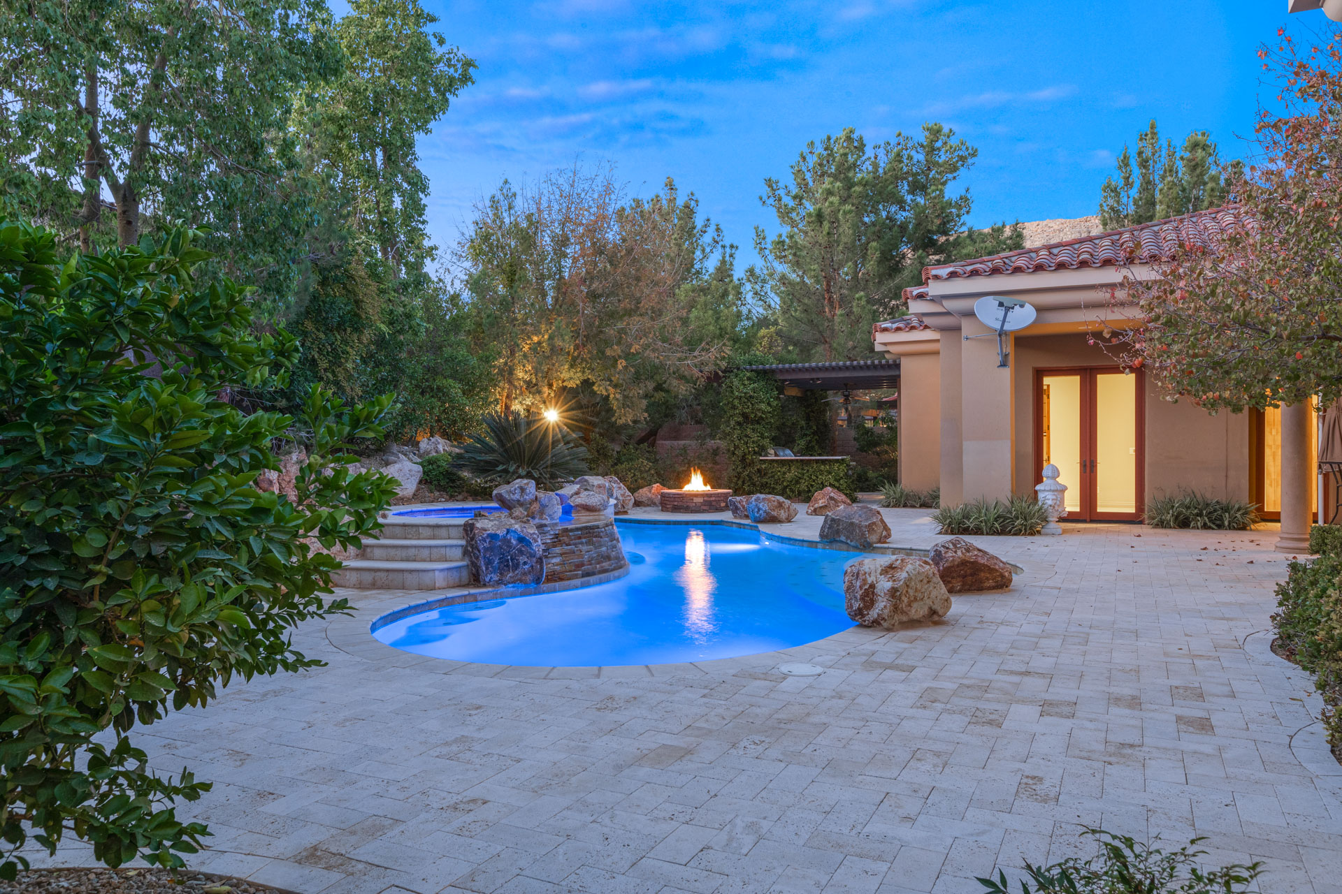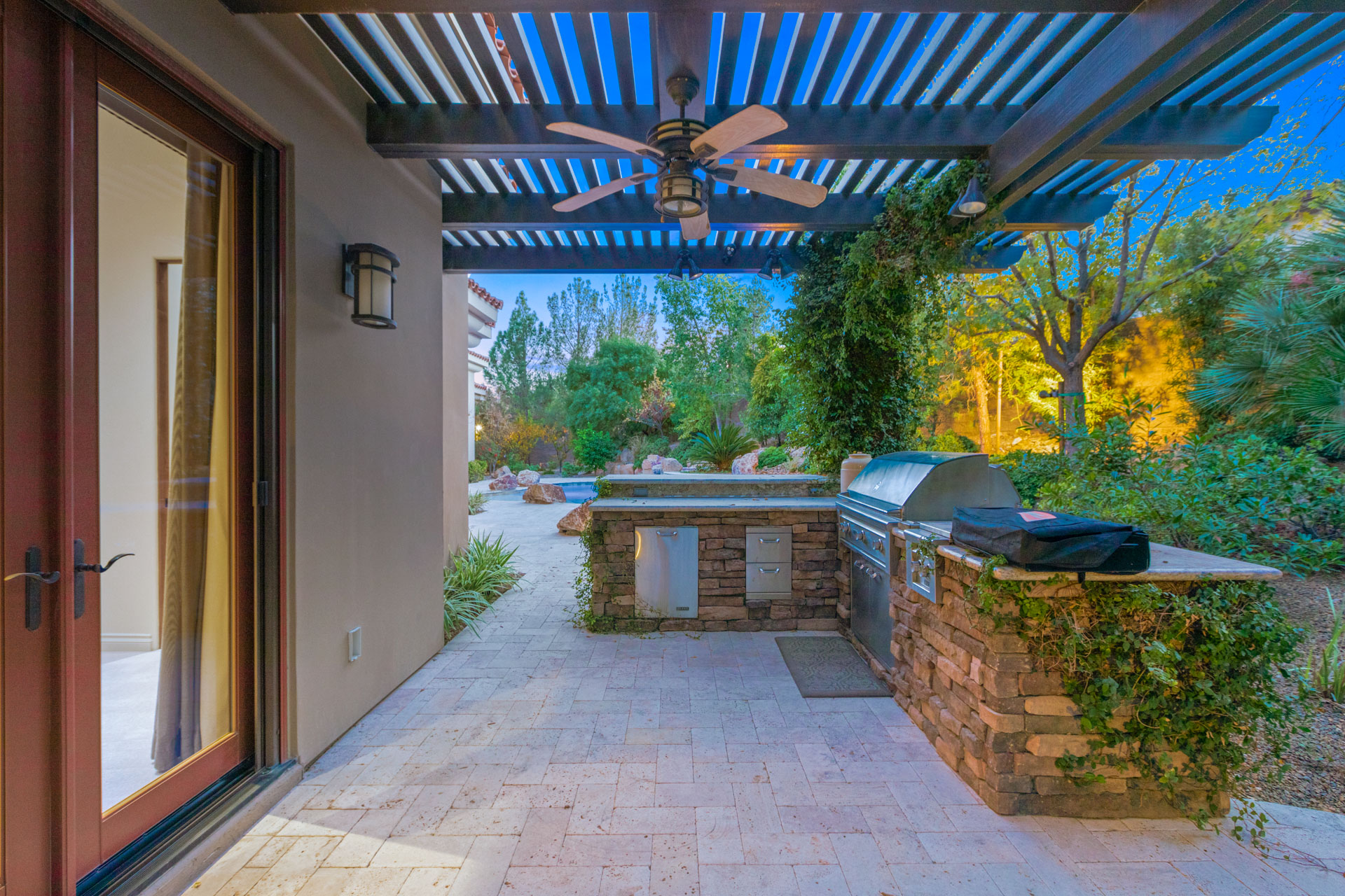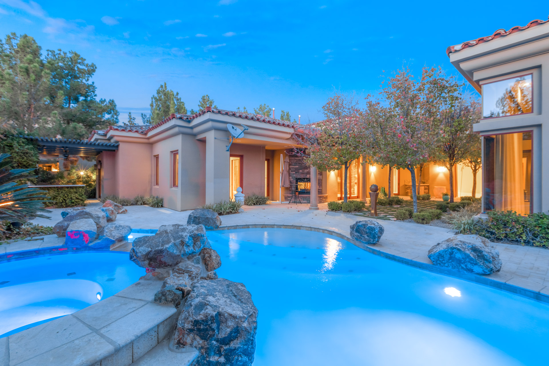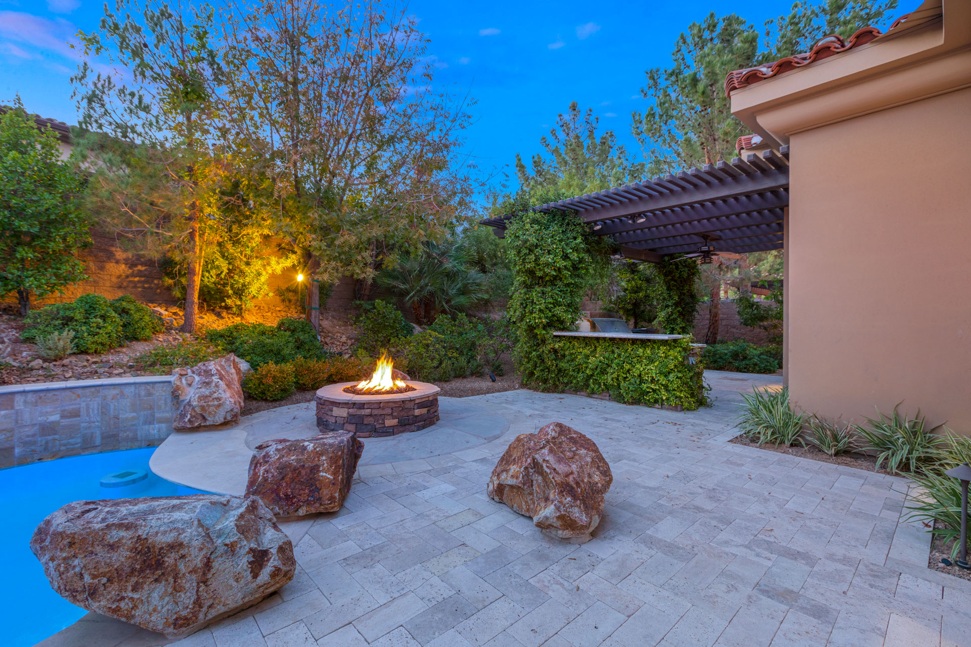 One of the home's greatest features is the kitchen. With custom-stone archways, a breakfast bar, granite countertops, professional-grade appliances, and a colossal kitchen island, it is truly a chef's kitchen. This home has five bedrooms, each equipped with its own bathroom. The primary bedroom has an ensuite bathroom, a fireplace, and a custom walk-in closet. Along with its stunning interior, the outdoor space is where this home truly shines. The property boasts an immaculate courtyard, a custom stone fireplace, and a resort-style pool area, with a swimming pool, water feature, and hot tub. The patio area contains an outdoor kitchen and fire pit--perfect for entertaining guests. Along with the home's amenities, residents will have all of the Southern Highland's amenities at their disposal, including the clubhouse, community pool, tennis courts, spa, walking paths, and access to the prestigious Southern Highlands Golf Course. If you want a luxurious character home in one of Las Vega's most prestigious communities--it's all here!