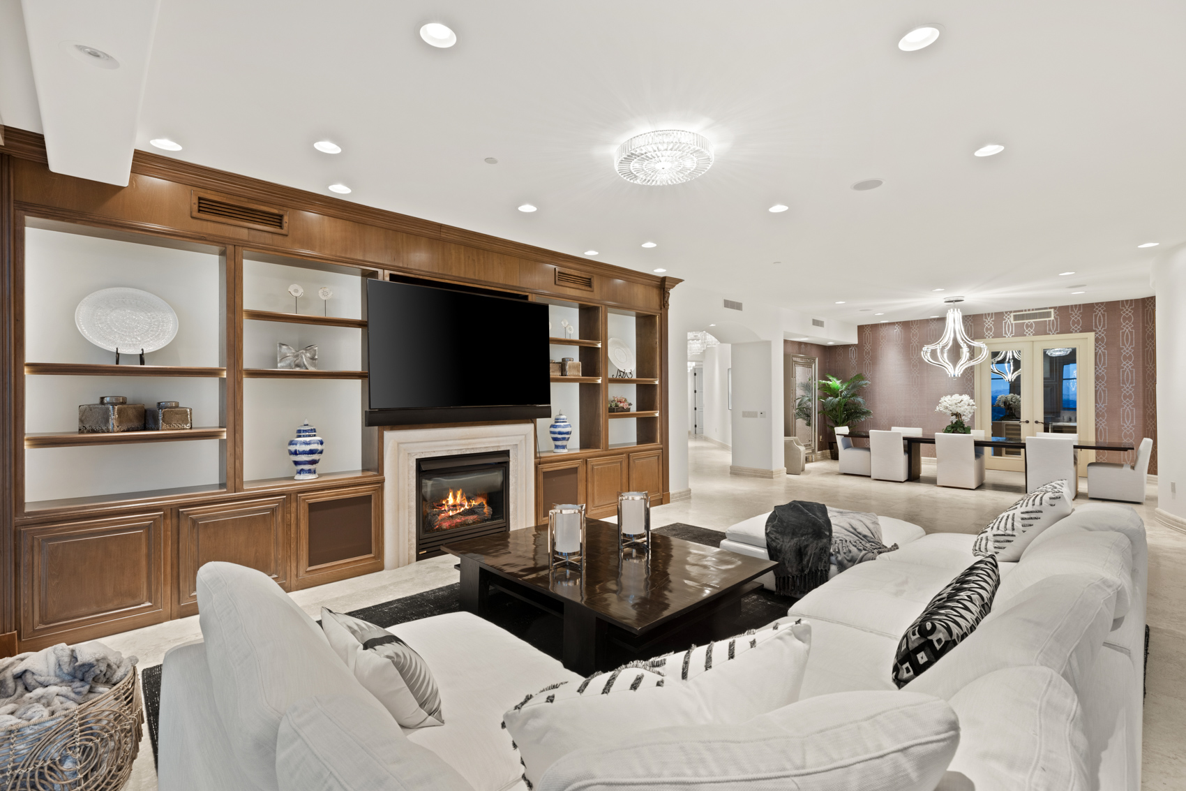 Upon entering this stunning condo, you are greeted by an expansive open floor plan that seamlessly combines style and functionality. The living room is a testament to modern design, featuring custom backlit built-ins, a cozy fireplace, and floor-to-ceiling windows that frame the awe-inspiring views. The space flows effortlessly into the dining area and gourmet kitchen, creating an ideal setting for both entertaining and everyday living.