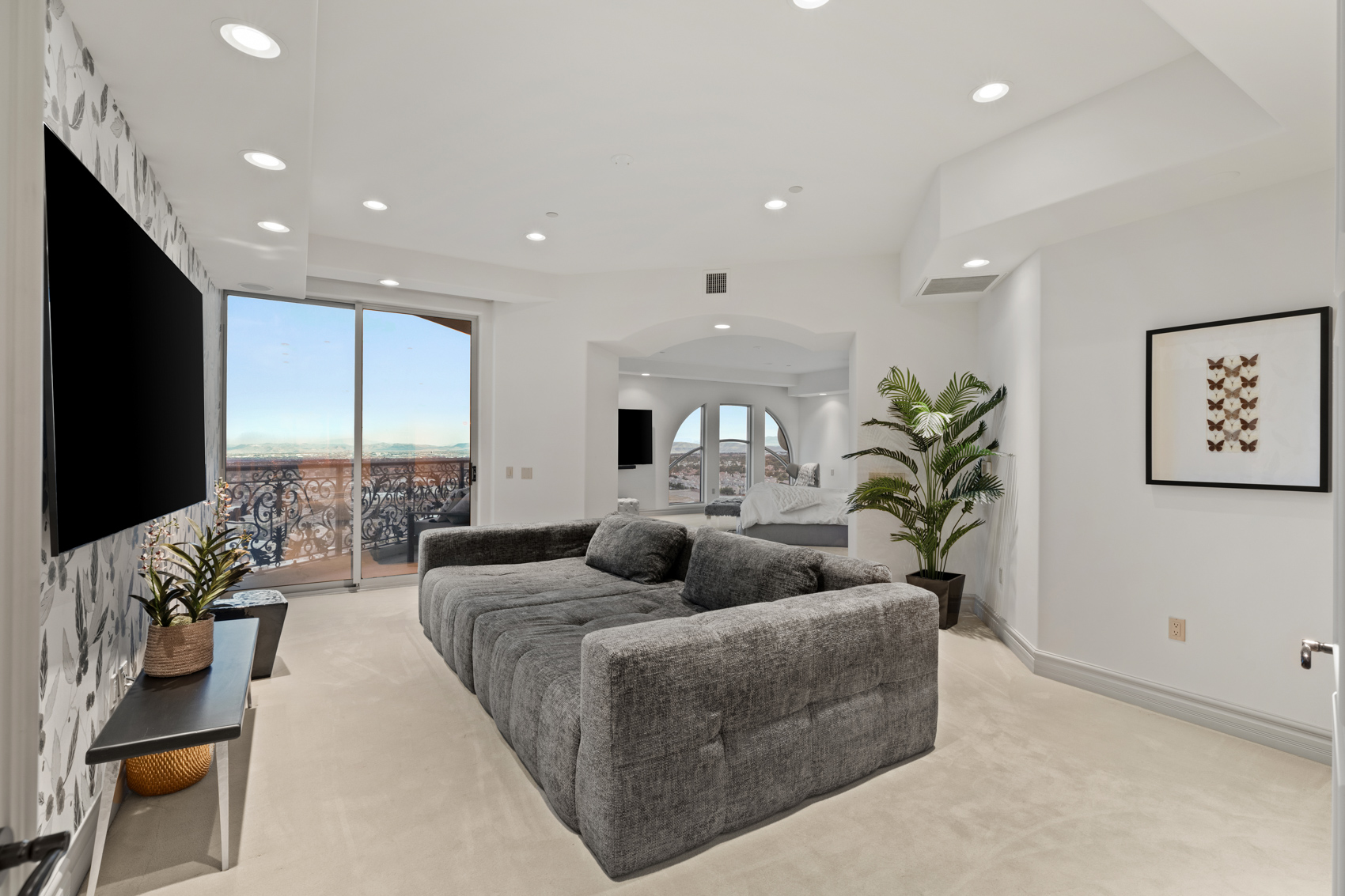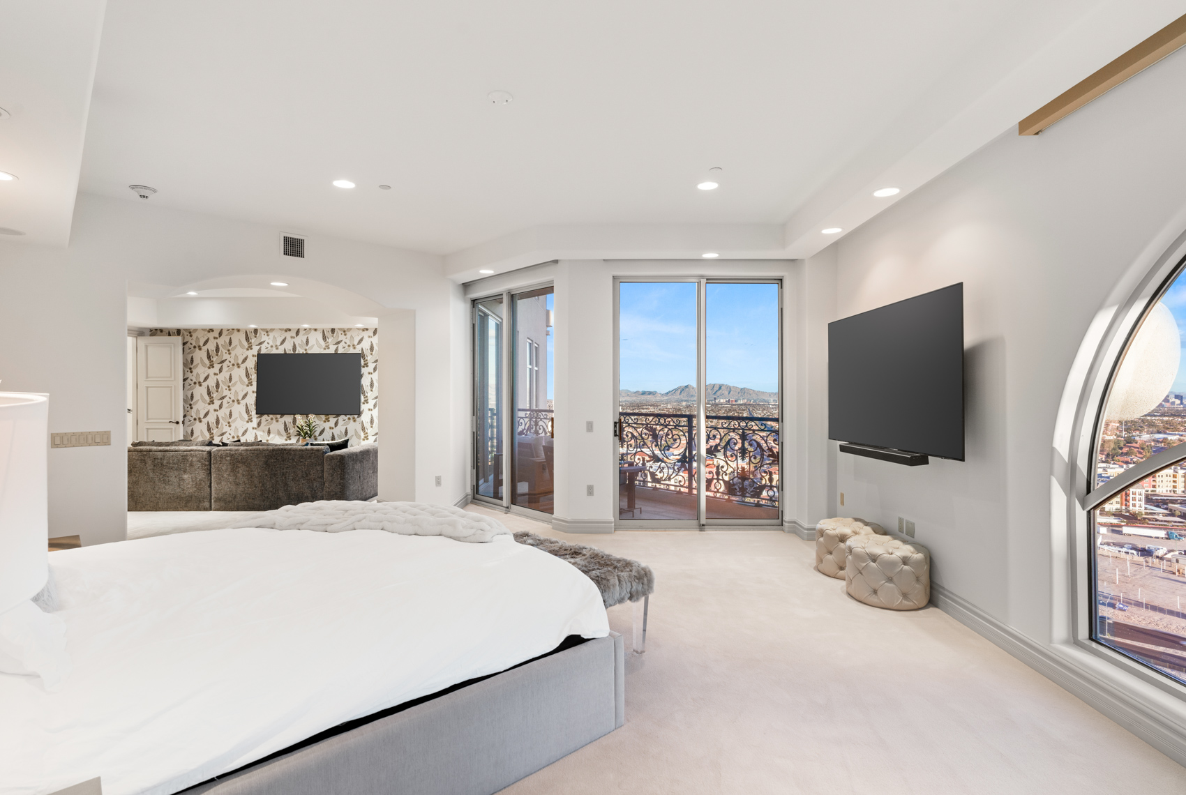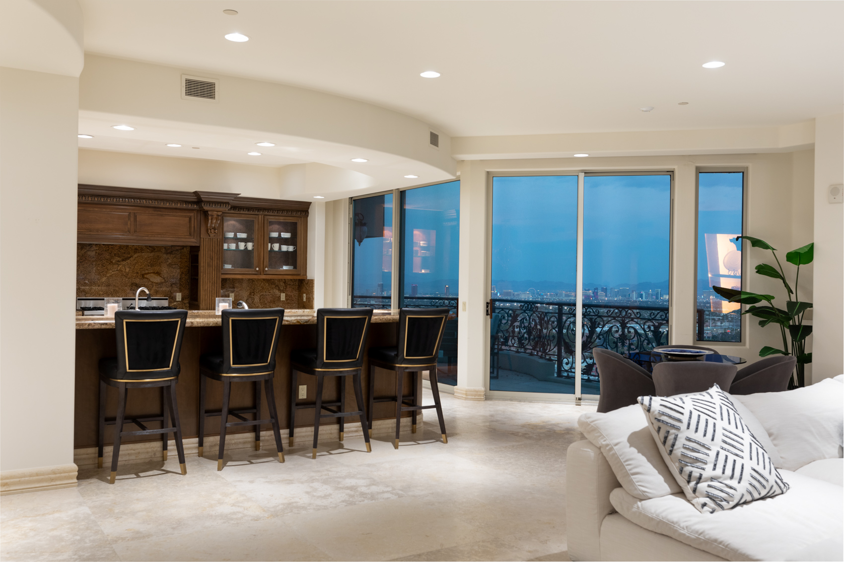 The gourmet kitchen is a chef's dream, equipped with top-of-the-line stainless steel Viking and SubZero appliances. The large walk-in pantry provides ample storage, while the sleek countertops and custom cabinetry offer a blend of form and function. Whether you are preparing a casual meal or hosting a lavish dinner party, this kitchen is sure to impress. For wine enthusiasts, the enclosed wine storage with two Viking wine/beverage coolers is a standout feature, ensuring your collection is stored at the perfect temperature. The living room and kitchen boast incredible views of the Las Vegas Strip, creating a backdrop that is both dynamic and captivating. The primary suite is a sanctuary of luxury, offering a private retreat where you can unwind and rejuvenate. The suite includes its own terrace, perfect for enjoying a morning coffee or an evening glass of wine while taking in the panoramic views. The spa-like bathroom features a large soaking tub, a walk-in steam shower, and an oversized closet with custom built-ins, providing a serene and organized space. Two guest bedrooms, each with their own en-suite bathrooms, offer comfort and privacy for family and friends. These bedrooms share a terrace, allowing guests to enjoy the beautiful views and fresh air. The large laundry room, with direct access to the service elevator, adds convenience and functionality to this already well-appointed home. One of the most distinctive features of this residence is the private entrance from the elevator, ensuring ultimate privacy and exclusivity. The condo also includes a 4-car private garage, providing ample space for vehicles and additional storage. Living at One Queensridge Place means enjoying the ultimate in security and luxury. This prestigious address offers a range of amenities designed to enhance your lifestyle. From the state-of-the-art fitness center and indoor and outdoor pools to the relaxing spa and well-appointed common areas, every detail has been considered to provide an exceptional living experience. Located in the heart of Las Vegas, One Queensridge Place offers easy access to world-class dining, entertainment, and shopping. Whether you are looking for a night out on the town or a quiet evening at home, this location provides the perfect balance of excitement and tranquility. 9101 Alta Drive #1703 is more than just a home; it is a rare opportunity to own a piece of Las Vegas elegance. This stunning high-rise condo offers a unique blend of luxury, comfort, and convenience, making it the perfect choice for discerning buyers. Donāt miss the chance to experience the epitome of high-rise living in one of Las Vegas's most sought-after addresses. Schedule your private tour today and discover all that this exceptional residence has to offer. Experience the lifestyle you have always dreamed of at One Queensridge Place, where luxury meets sophistication and every detail is designed with you in mind. Welcome home.