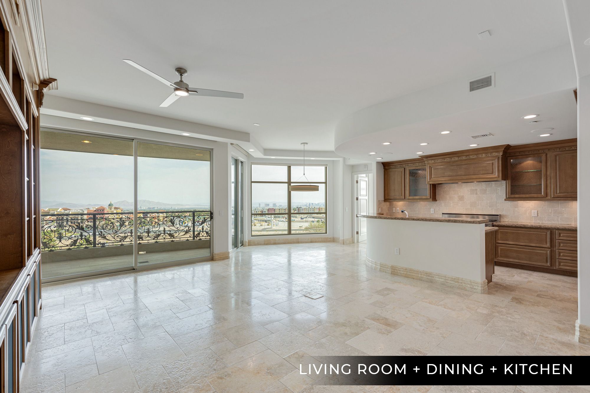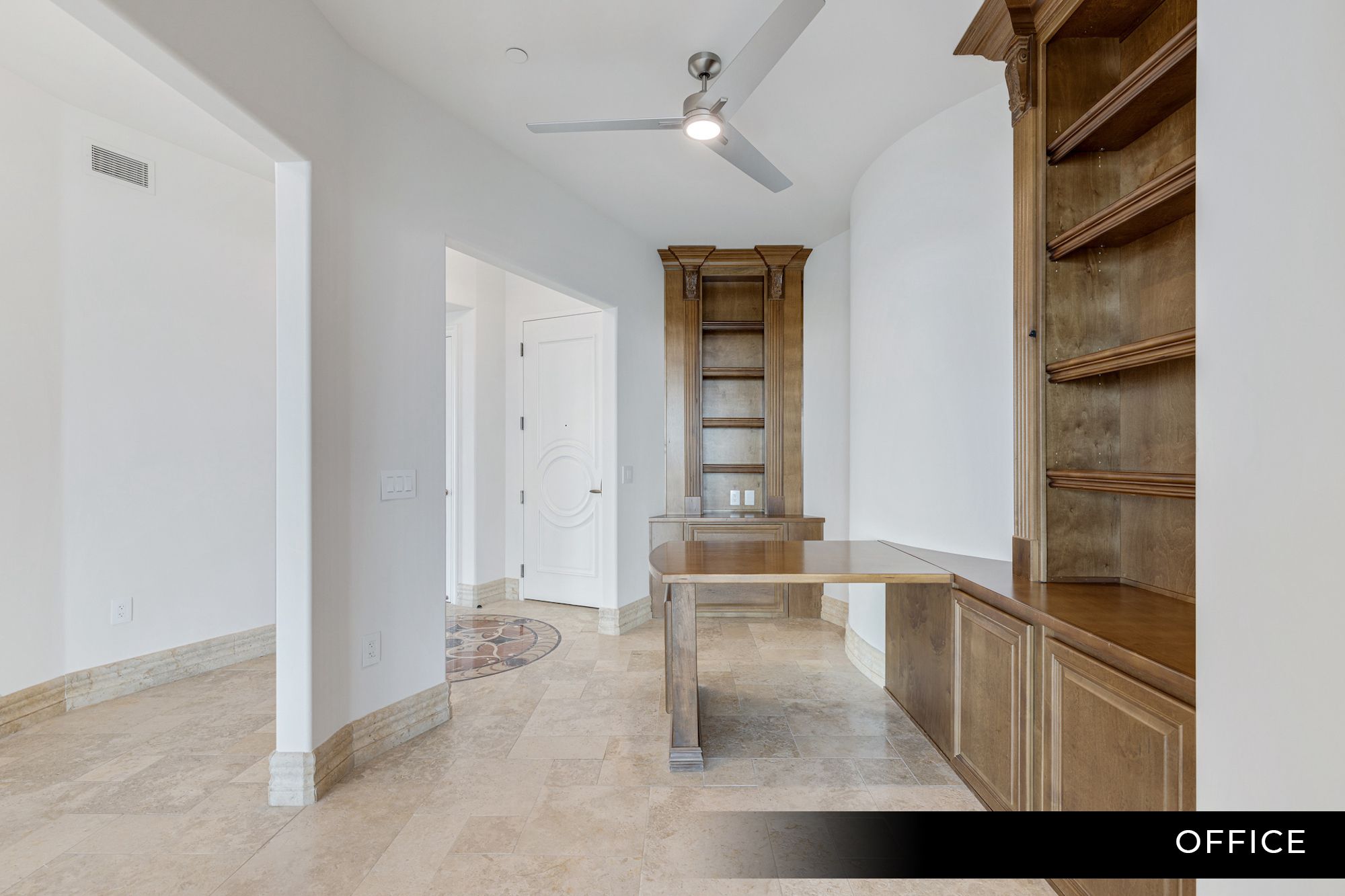 Inside the unit, you will find 2 comfortable bedrooms and 3 spa-like bathrooms, along with an office. The gourmet kitchen boasts stainless steel Viking appliances, and you can navigate the open floorplan with ease for entertaining, or just relaxing and enjoying your space. There is very little this unit will not offer to you, as you settle in and start exploring all the Las Vegas area has to offer. When you want an elegant place to come home to, you have found it here.