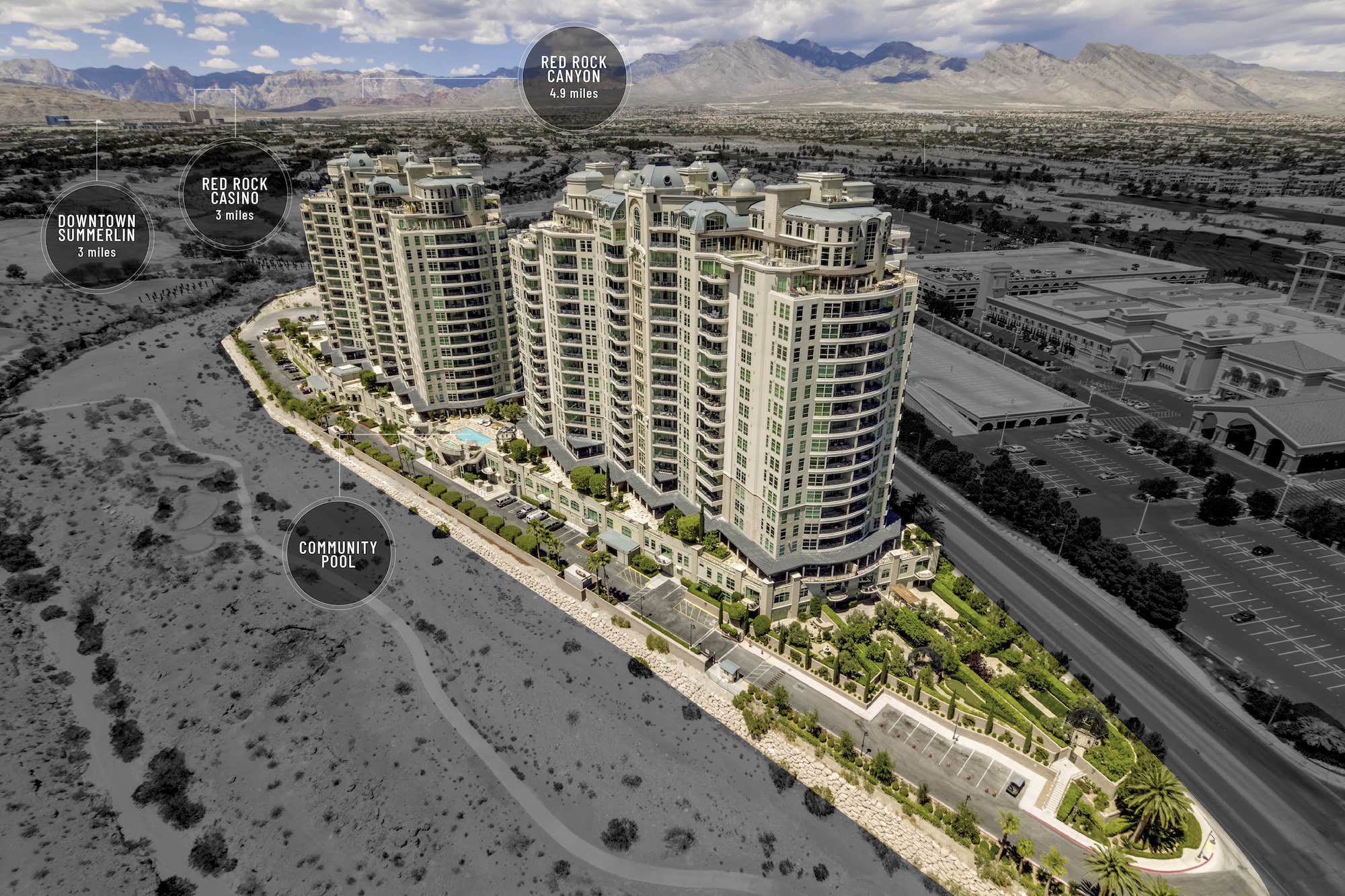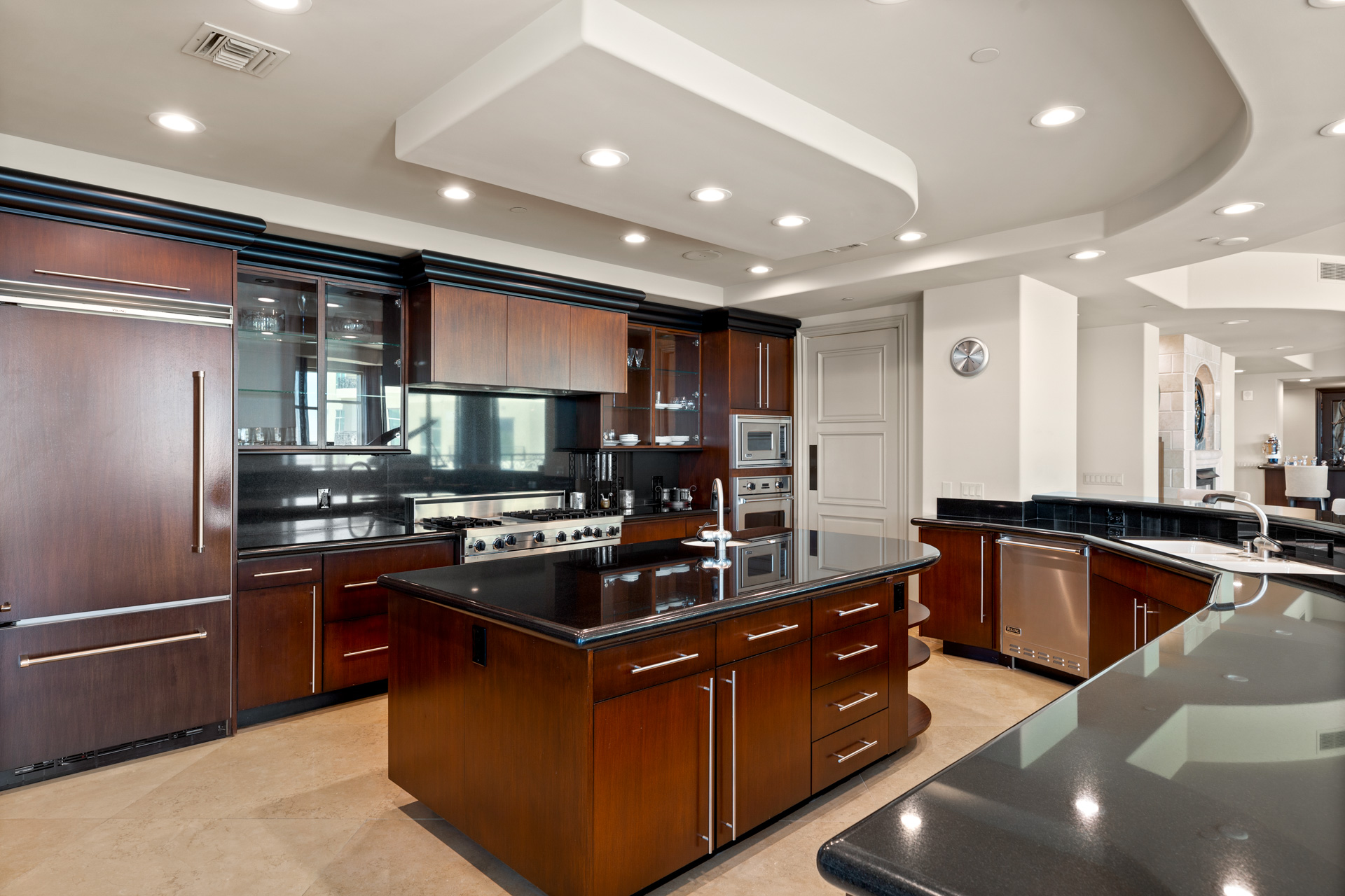 Open plan living incorporates casual dining space, a sit-down piano bar, two seating areas, a large, well-equipped wet bar and wine cellar, a fireplace wall and the distinctive kitchen into a compatible whole that promises new discoveries at every turn. The kitchen boasts its own bar seating at a perimeter counter in addition to an oversize island and all the right top-of-the-line chef's appliances. With black granite counters and highly polished cabinets, it is both functional and elegant. The master suite occupies an entire wing, with not only a private sitting area, but a balcony as well, and separate grooming/dressing rooms, each with a large walk-in closet and custom cabinetry. Two additional bedrooms with ensuite baths complete the floor plan, and one has its own private balcony.
