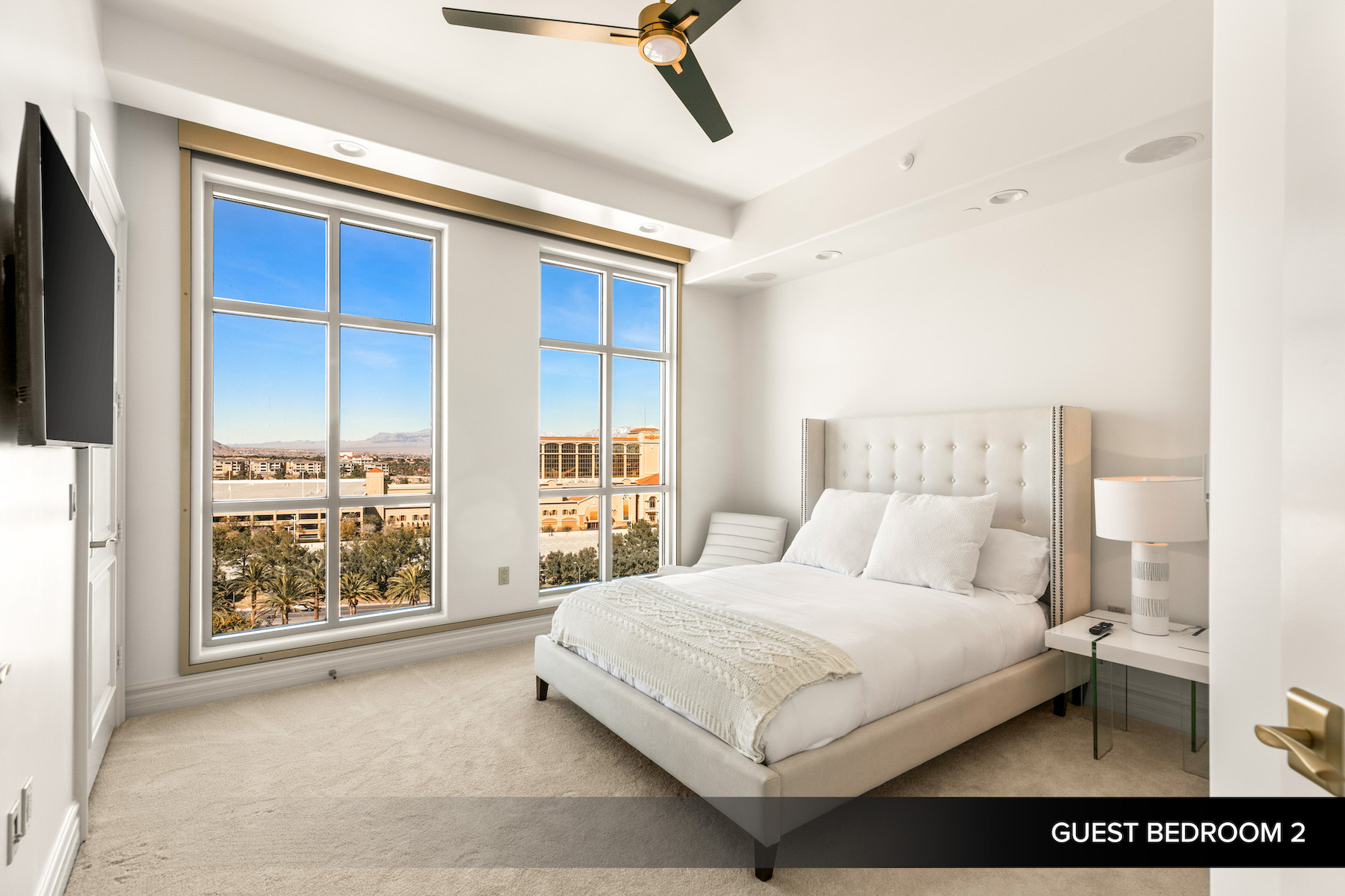 There are three additional bedrooms with ensuite baths and includes dedicated, secure garage parking for three vehicles. Enjoy a private express elevator from your garage that opens directly into the unit. One Queensridge Place is a coveted address with unique amenities including an on-staff barista, indoor and outdoor pools, spa, resort-style gym, 25-seat theater, poker room and much more. If you are looking for the finest and most secure luxury rental, this is it.