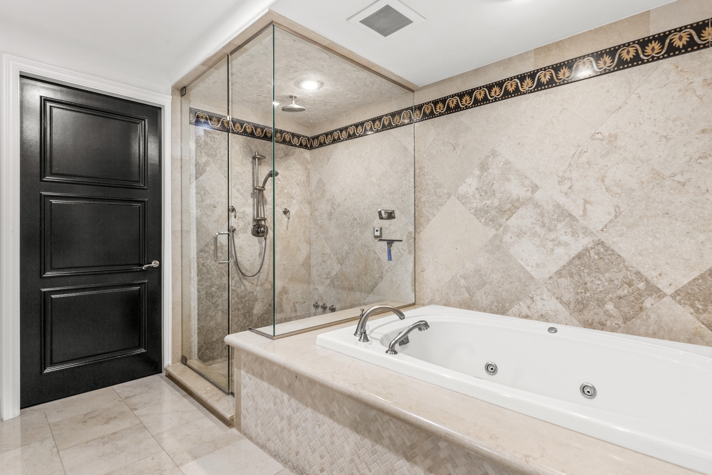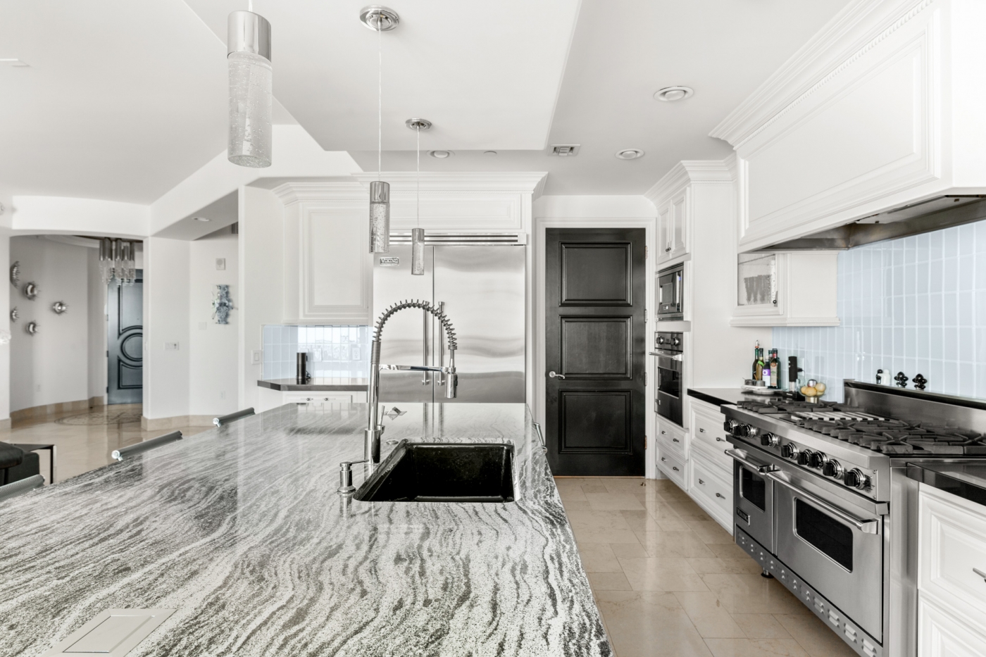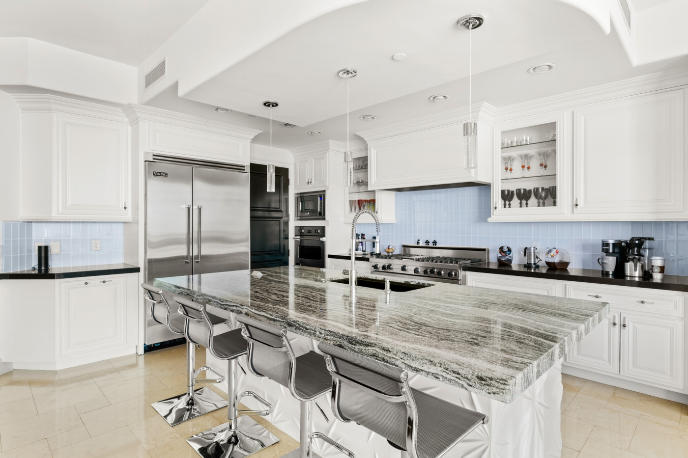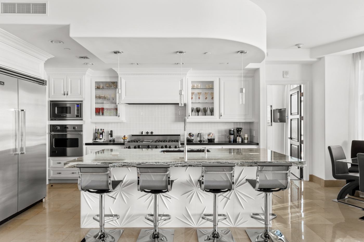 With living space redesigned to reflect the contemporary style, the unit features an open floor plan with a separate den/office, a stunning master bedroom with his and her closets, and a guest suite with a private bath and a Juliet balcony. The great room adjoins the kitchen and formal dining area, and also boasts casual stool seating at a large island. Interior decor is contemporary but not cold, with a wonderful mix of neutrals and dark tones.