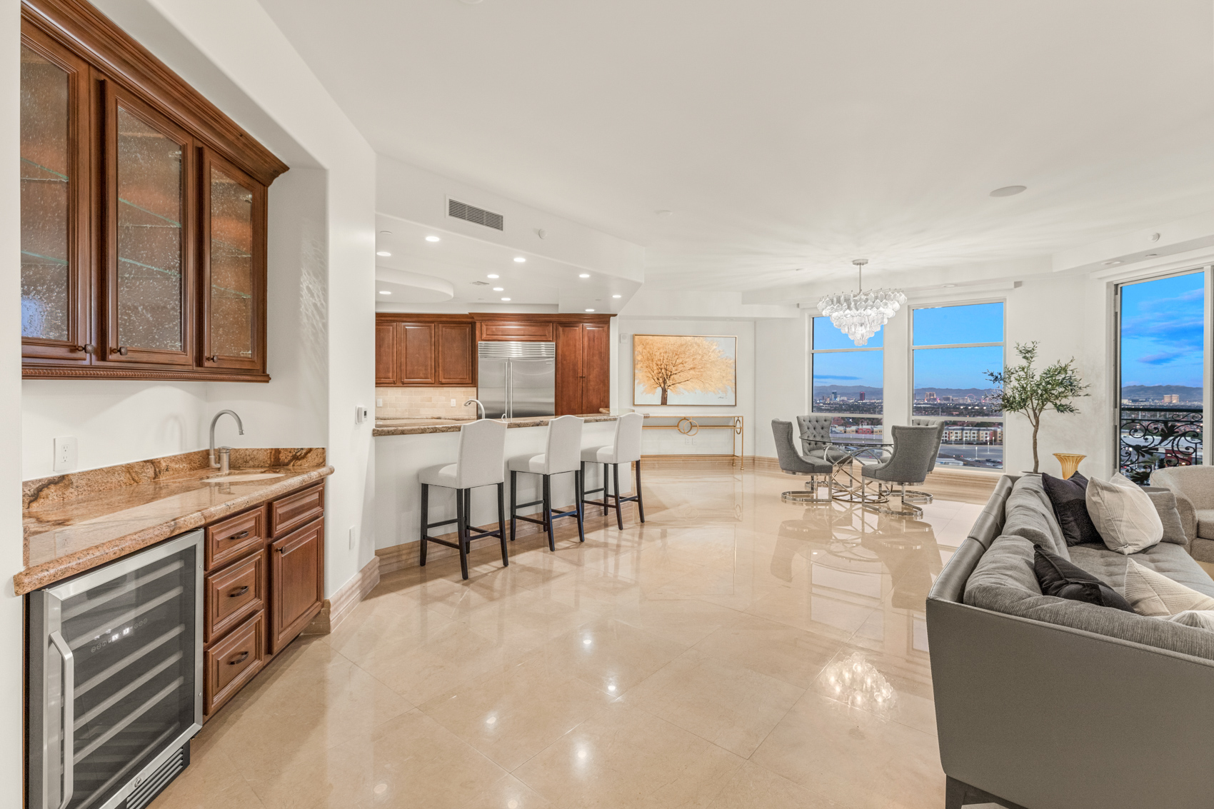 Additional amenities include an indoor lap pool, 13,000+ square foot spa/gym, 25 seat theater, poker room, outdoor pool and much more. If you are looking for the most sophisticated, well-appointed full service building in Las Vegas, you’ve found it.