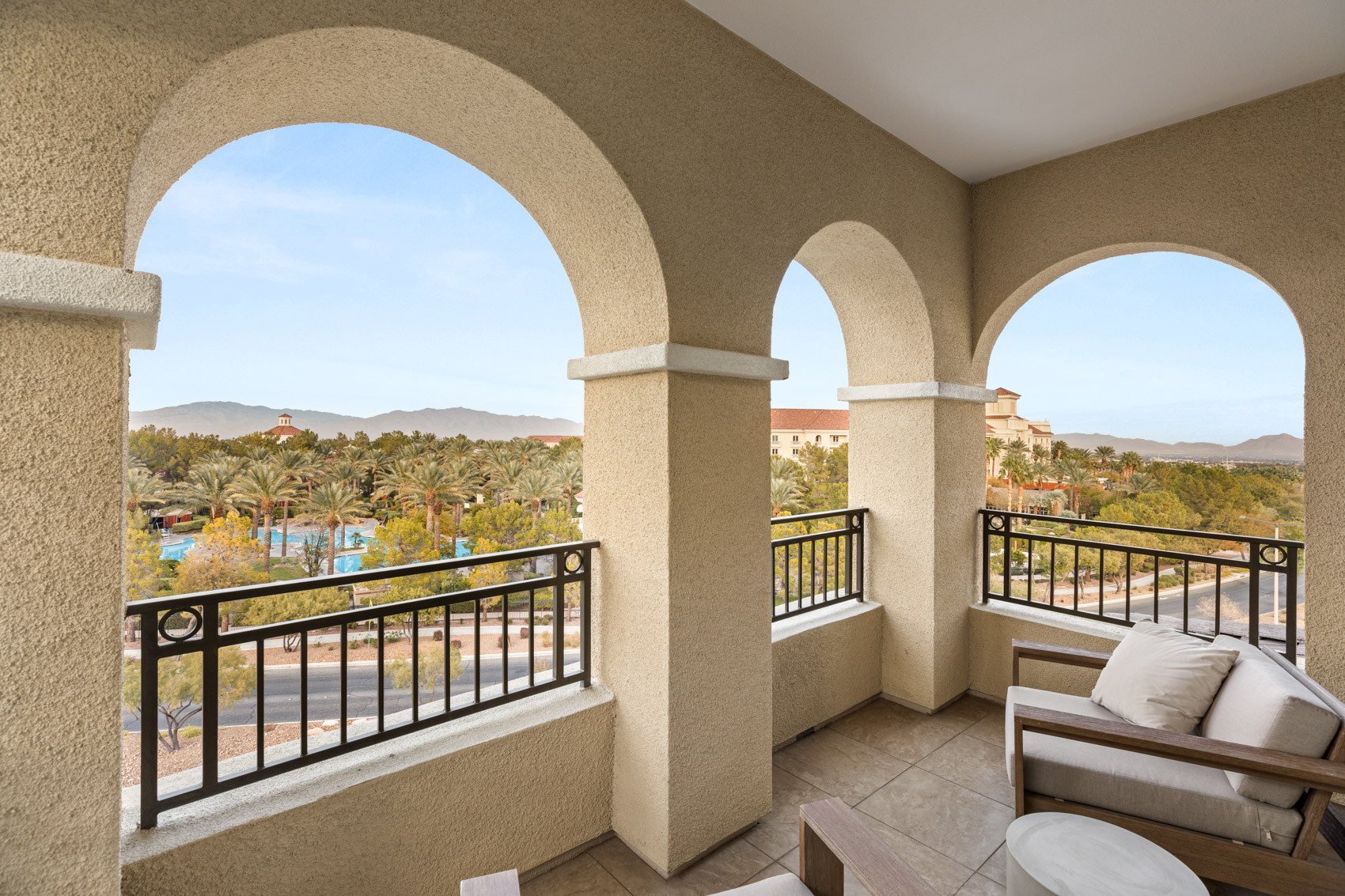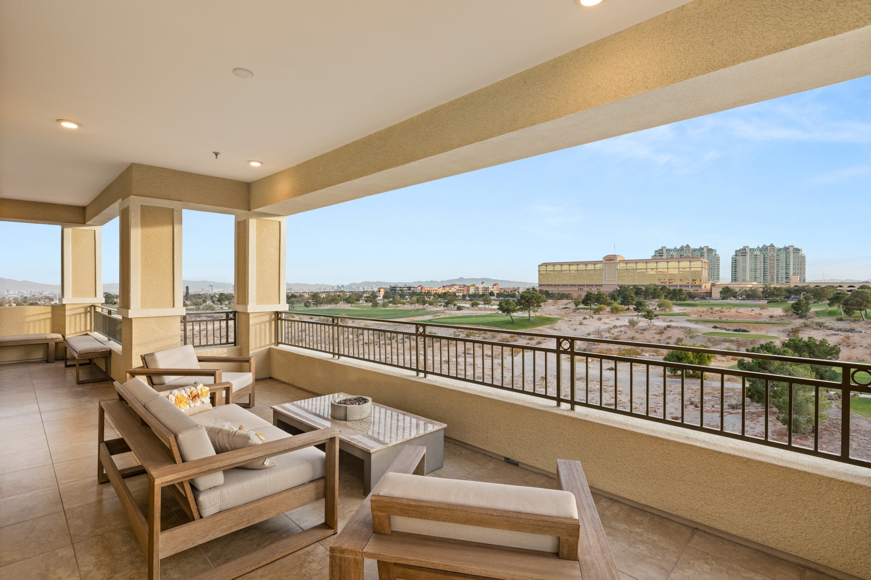 The heart of this home is its chefās kitchen, which combines style and function with stainless steel appliances, a double oven, and generous counter space for meal prep and entertaining. Adjacent to the living room, a separate bar area with a wine fridge and mini fridge makes hosting guests a breeze. The primary suite is a private sanctuary featuring a separate lounge retreat, a spa-like bathroom with a free-standing soaking tub, an oversized walk-in shower, and a custom floor-to-ceiling walk-in closet. The additional bedrooms are spacious and thoughtfully designed, each offering en-suite bathrooms for ultimate convenience and privacy. Step onto the oversized wrap-around balcony to take in the stunning vistas that stretch as far as the eye can see. This outdoor haven is perfect for al fresco dining, morning coffee, or simply soaking in the beauty of the Nevada landscape. A rare 4-car garage, including his-and-hers spaces, ensures ample parking and storageāa unique offering in condominium living. Located in the highly sought-after Mira Villa community, this home provides access to resort-style amenities, including a sparkling pool, spa, fitness center, and outdoor lounging areas. With its prime location in Summerlin, youāre just moments away from world-class dining, shopping, golf courses, and entertainment. Opportunities to own a home like this in Mira Villa are rare. 9121 Las Manaitas Avenue #401 offers a lifestyle of unmatched elegance, convenience, and beauty. Donāt miss your chance to experience the very best in Las Vegas living.