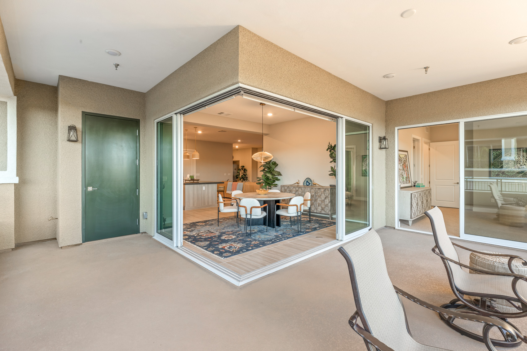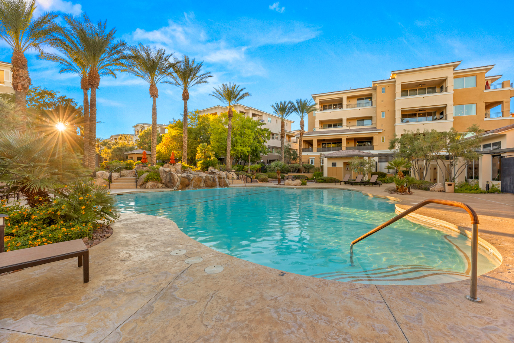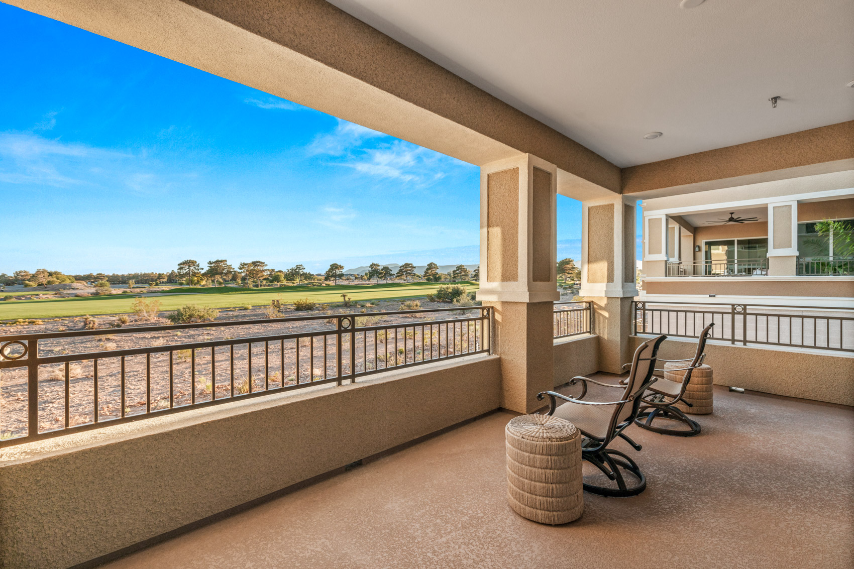 What sets this property apart are the exceptional outdoor living spaces and views. Multiple covered verandas provide a private haven for you to fully embrace the beauty of the outdoors while enjoying all the comforts of your interior space. Whether you desire a peaceful retreat to soak in panoramic views of the mountains, gaze at the lush greens of Angel Park golf course, the stylish setting is the perfect place to entertain friends and family; The verandas are a true extension of your living space. Inside, the attention to detail is evident with custom window treatments throughout, creating an atmosphere of both luxury and comfort. The large dining room takes sophistication to the next level with sliding pocket doors allowing the outdoors in. Whether you desire to eat in or outside on your veranda this residence allows you to effortlessly control the ambiance to suit your mood and the occasion. The kitchen is a culinary enthusiast's dream, featuring top-of-the-line JennAir appliances and quartz countertops throughout. Whether you're preparing a gourmet meal or whipping up a quick snack, this kitchen will inspire your inner chef and elevate your culinary experiences. The thoughtful design continues with a 2.5-car garage that offers an abundance of storage space and a 240 volt outlet for EVcharging. This condo's location on the 2nd floor not only provides breathtaking views but also offers the convenience of a direct elevator to your residence. Your entry foyer welcomes you into your residence allowing for convenient access and ultimate privacy. es, allowing you to enjoy the temperate Las Vegas climate year-round. It's the perfect setting for morning coffee with a sunrise view or evening cocktails under the starlit sky. Beyond the allure of this stunning residence, Mira Villa itself is a world-class destination. This exclusive community offers resort-like amenities that enhance your everyday life. Stay active and fit at the fitness center, take a refreshing dip in the pool, unwind in the spa, or host unforgettable gatherings at the BBQ area. With Mira Villa's amenities, every day feels like a vacation. Mira Villa is more than just a place to live; it's a lifestyle. Nestled in the serene surroundings of Las Vegas, this community provides a tranquil escape from the city's hustle and bustle while still offering easy access to all the entertainment and amenities of the Las Vegas Strip. The meticulously landscaped grounds and elegant architecture create an ambiance of serenity and sophistication. Stroll through the picturesque paths or simply relax by the poolside. At Mira Villa, the possibilities for leisure and relaxation are endless. Now, let's talk about the rare opportunity that 9141 Las Manaitas Avenue Unit #202 presents. In a market where luxury condos are highly sought after, this property stands out as an exceptional find. Its unique combination of modern design, abundant outdoor living spaces, and top-tier amenities make it a standout choice for those who demand the best of both city living and resort-like tranquility with exceptional views. Owning this condo is more than a transaction; it's an investment in a lifestyle that combines comfort, elegance, and convenience. It's a statement of refined taste and a testament to the discerning buyer's commitment to living life to the fullest. This is your opportunity to live in a space where everyday life is elevated to the extraordinary, where every moment is a reminder of the beauty that surrounds you, and where you can create lasting memories in a setting that epitomizes luxury living. Contact us today to arrange a viewing and take the first step toward making this exquisite condo your new home. Your oasis in Las Vegas awaits!