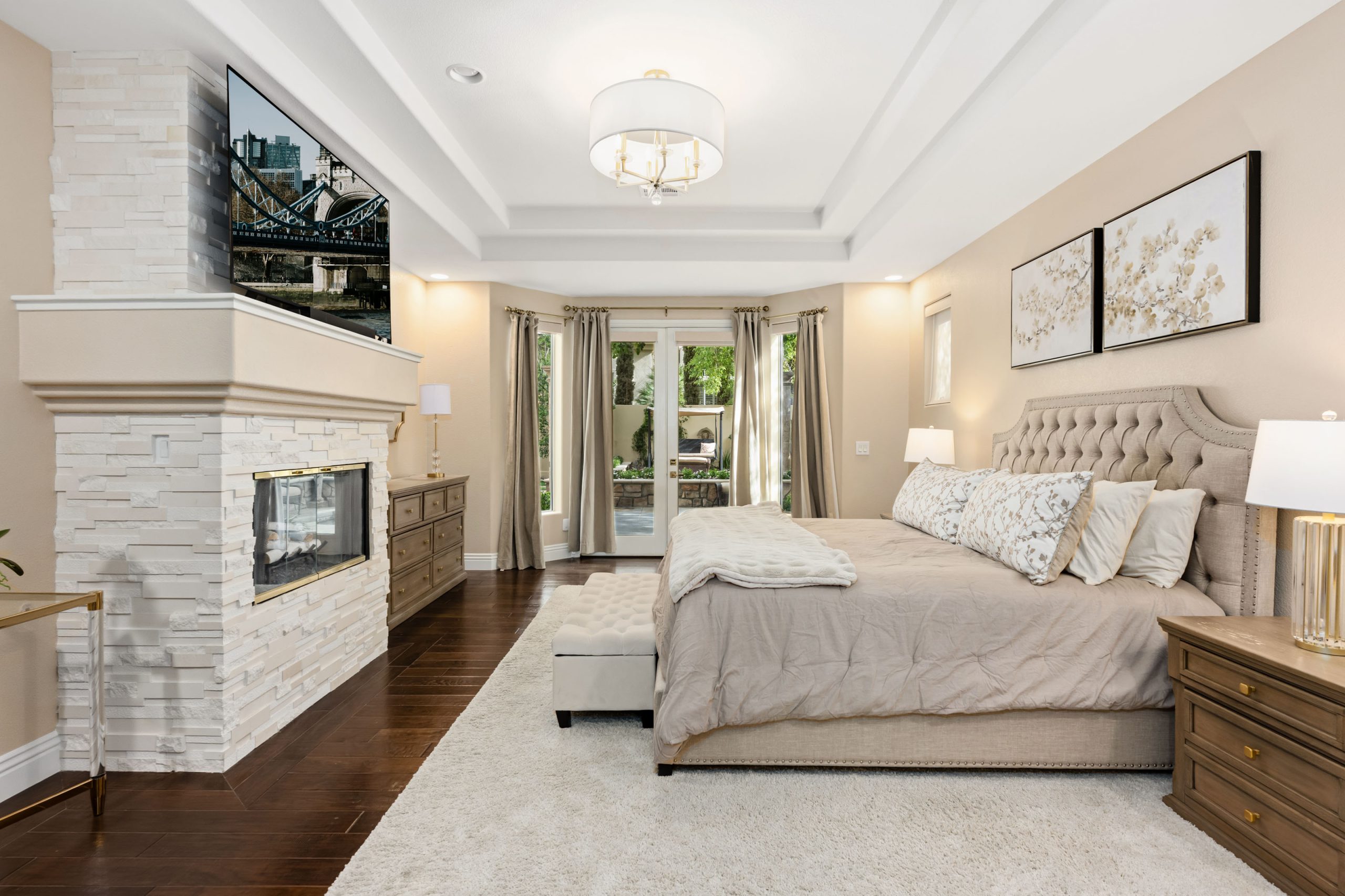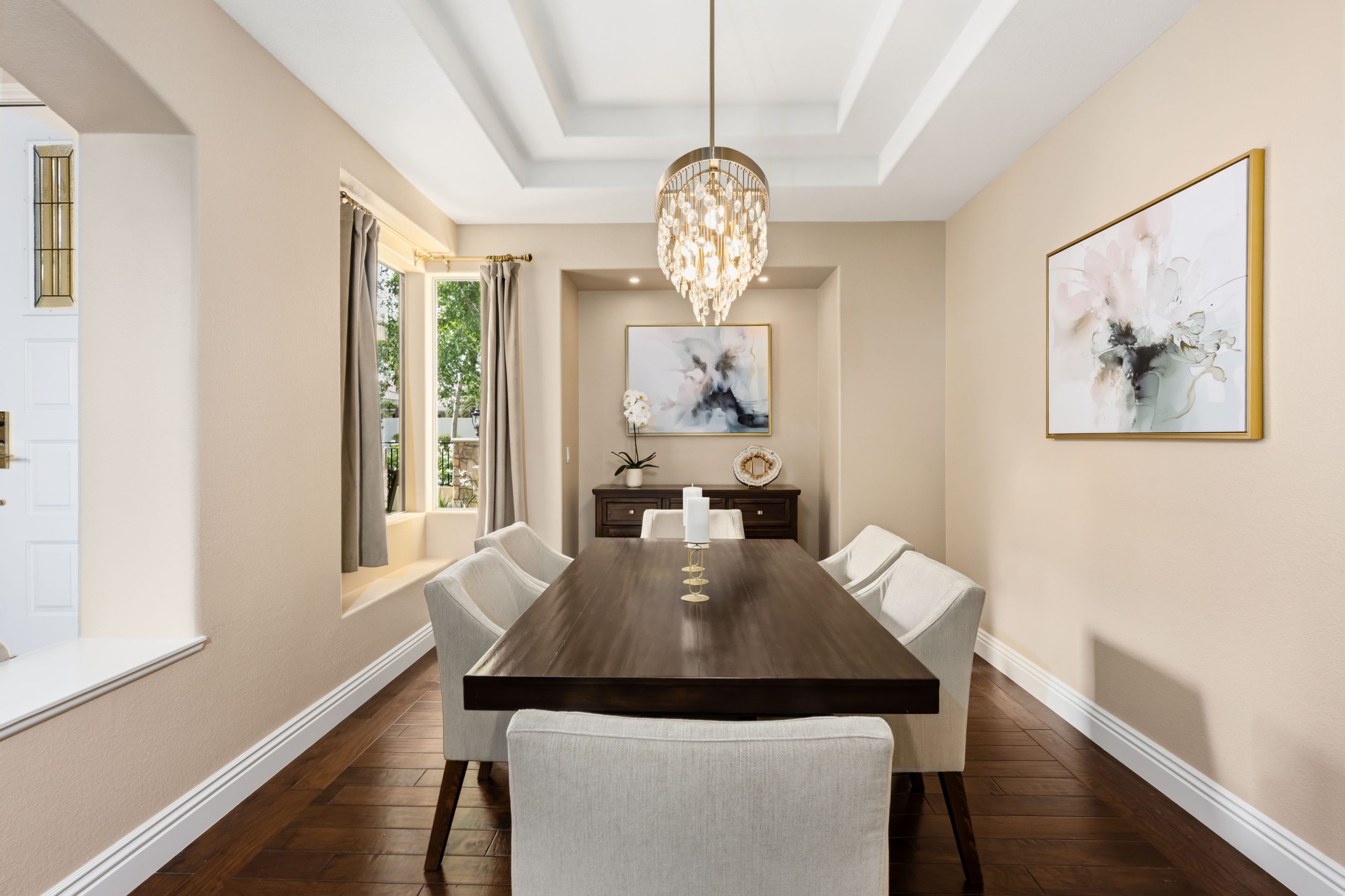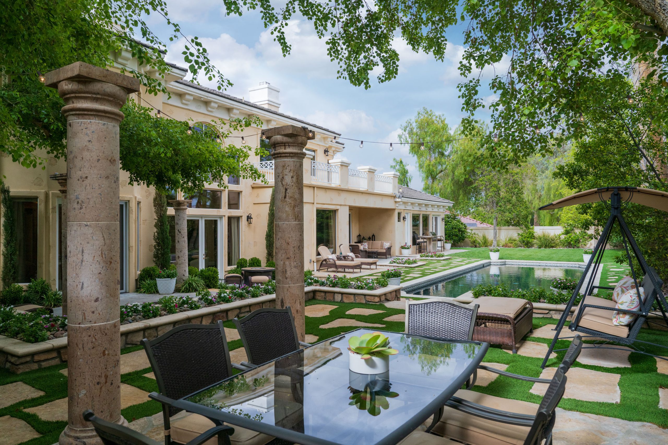 The renovated kitchen showcases custom cabinetry, stunning Taj Mahal quartzite countertops, and an elevated designer aesthetic perfect for both everyday living and entertaining. Designer lighting has been installed throughout, complementing the home’s timeless transitional style and creating a cohesive, curated aesthetic throughout the interiors. The backyard is a private retreat designed for year-round enjoyment, featuring a charming resort-style setting with pool, spa, expansive grass area, and ample space for recreation. A rare opportunity to own a beautifully updated home on an oversized lot in prestigious Eagle Hills.