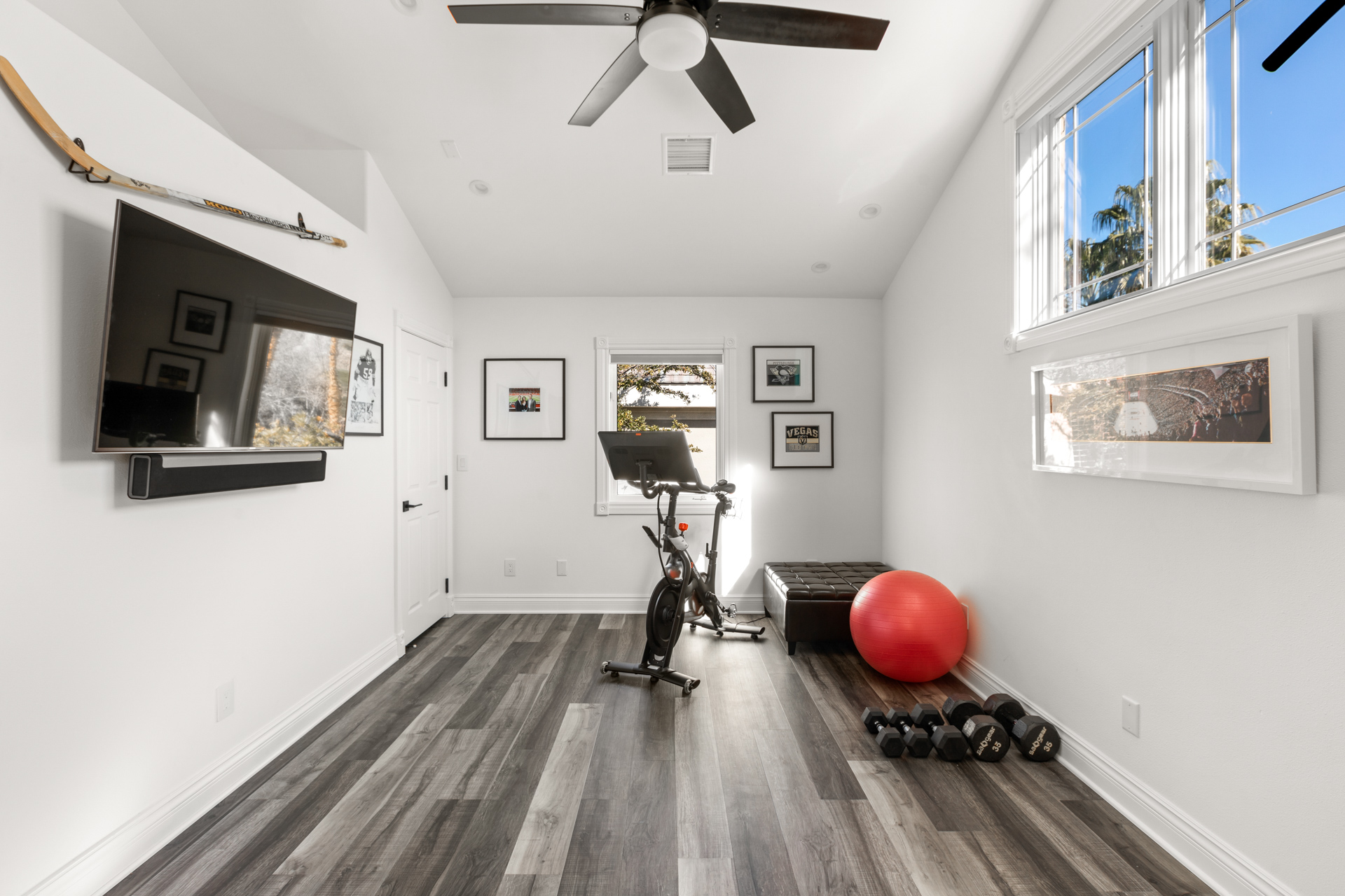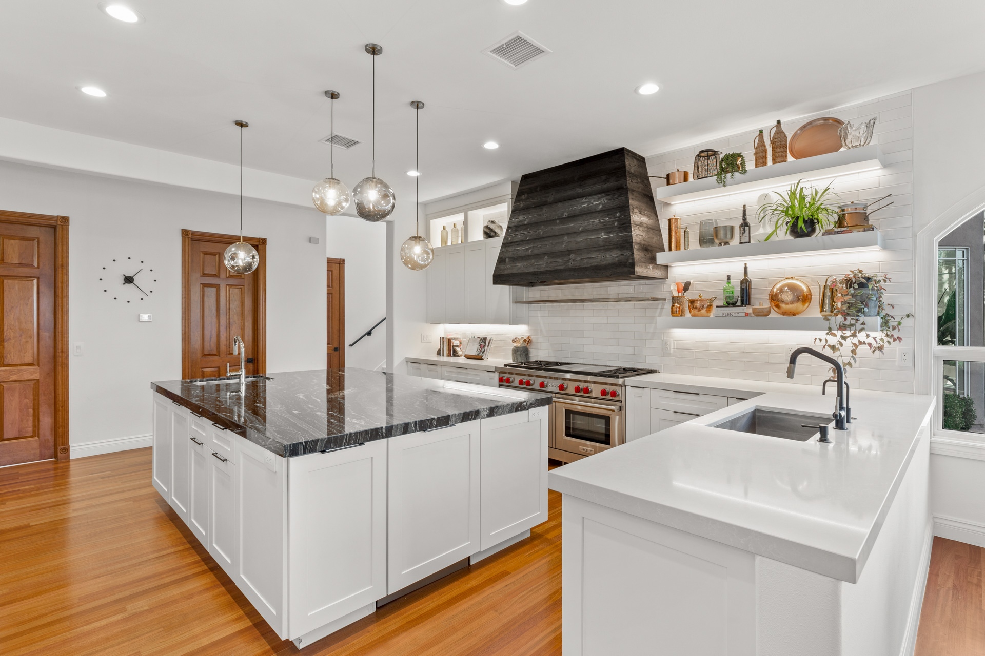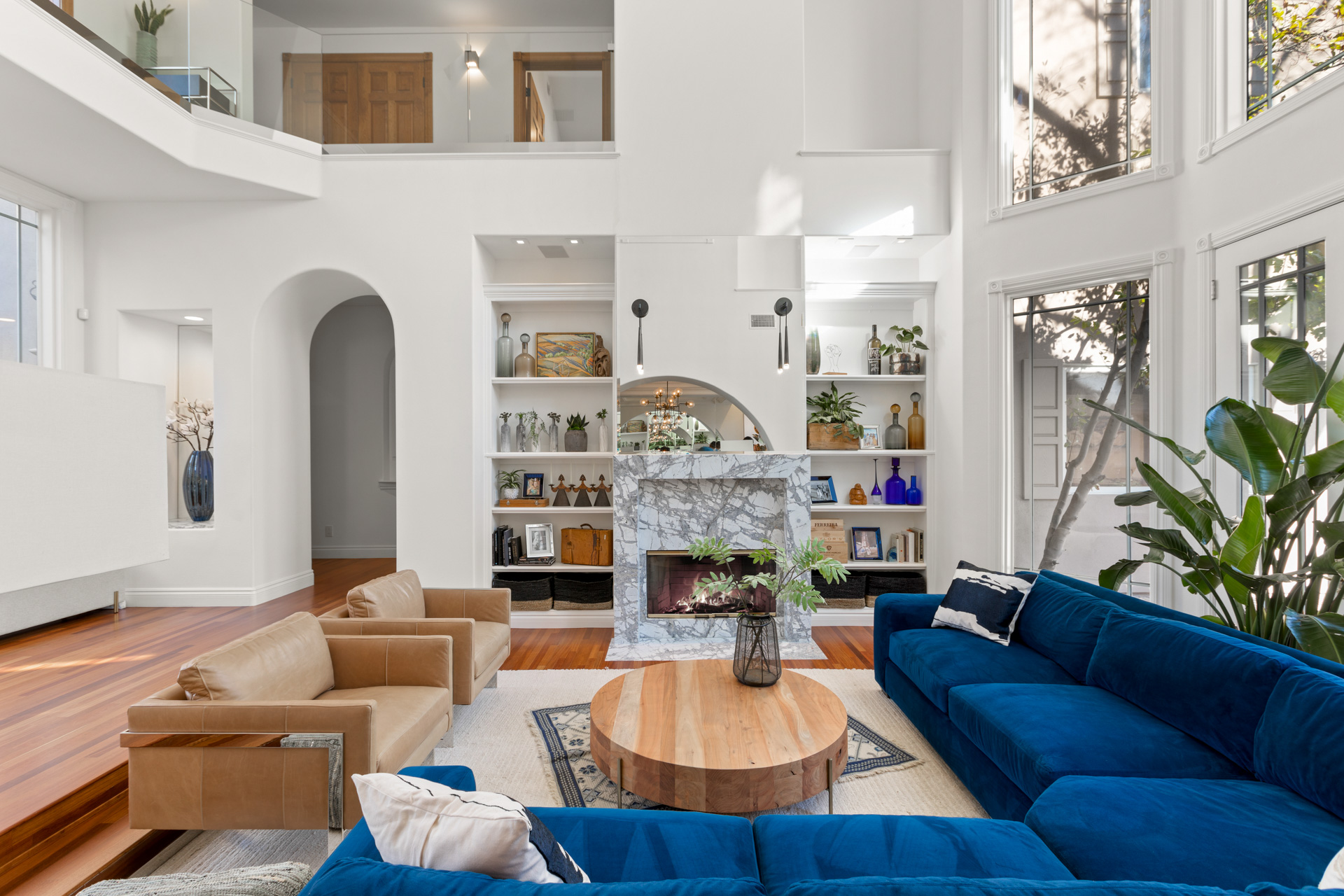 This is a home designed for an active lifestyle. With six bedrooms, four and a half baths, a two-story formal living room, and elegant adjacent dining space, this is a home that will handle large gatherings with ease. The stunning kitchen, with a double-oven Wolf range, also has a built-in stainless refrigerator with separate freezer and wine storage columns, a large island with a second prep sink, and an informal dining nook.
