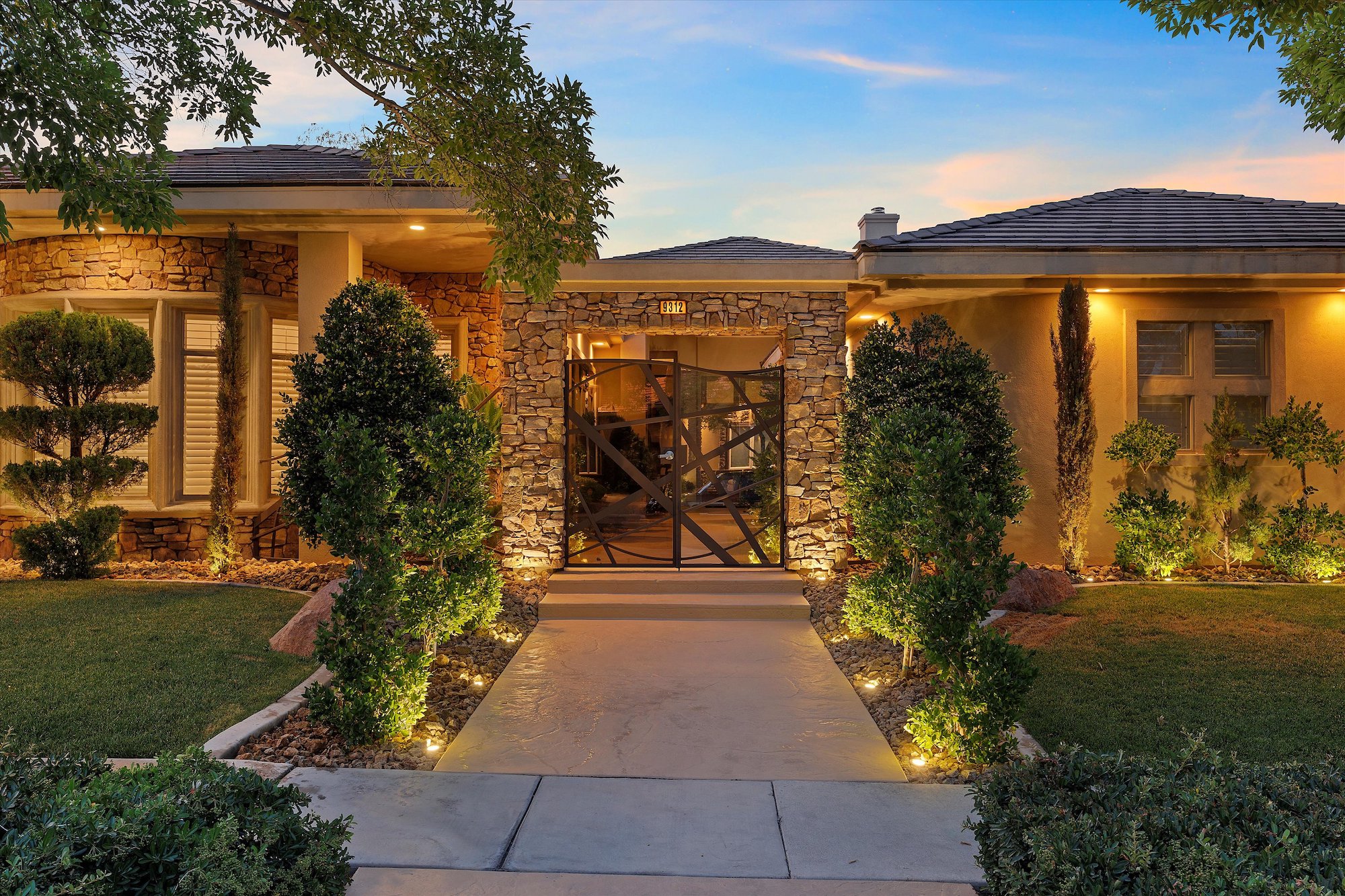 The kitchen features gourmet appliances, custom cabinetry, and a center island that's perfect for casual meals. The primary suite includes a romantic fireplace, designer closet, and a spa-like bathroom with soaking tub, steam shower, and beautifully updated dual vanities all in white marble. Life in Canyon Fairways includes access to lushly landscaped parks, tree lined streets, walking trails, sports courts, and more. Minutes away, you'll find the very best of Summerlin shops, dining, award winning schools, and several country clubs and golf courses to enjoy the very best of life in Las Vegas!
