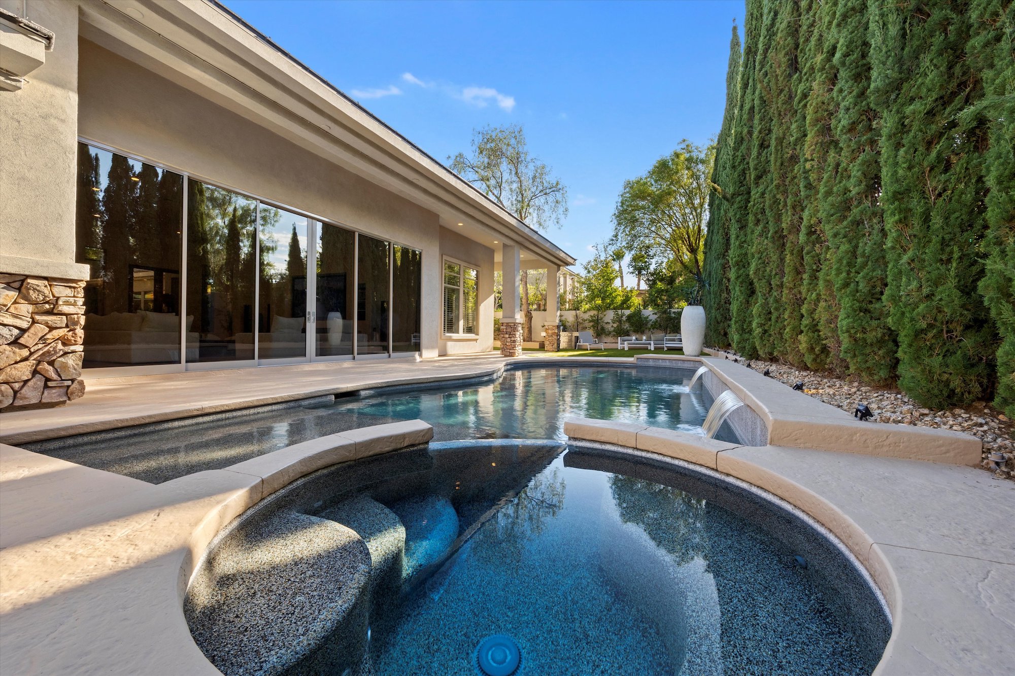 Exquisitely renovated single-level home in the guard gated Canyon Fairways community. Guests will be welcomed by a tranquil and private courtyard that leads into a wide open floor plan with massive sliding glass doors to the pool and outdoor living spaces. A seamless indoor-outdoor lifestyle with an oversized great room and dining area that flows effortlessly.