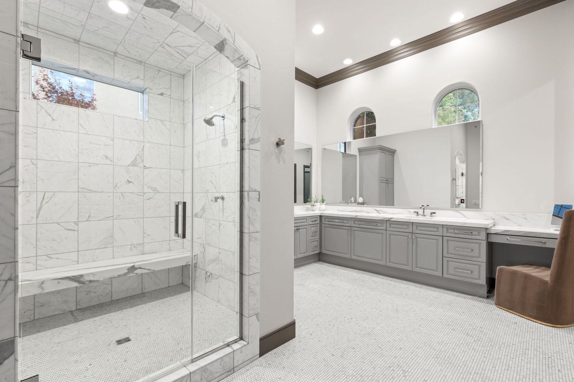 With 4 bedrooms and 5 baths sprawling across 3894 sq ft, each bedroom, including the opulent primary suite, boasts an en-suite sanctuary. Hardwood floors whisper elegance, while upgraded appliances adorn the heart of the home.