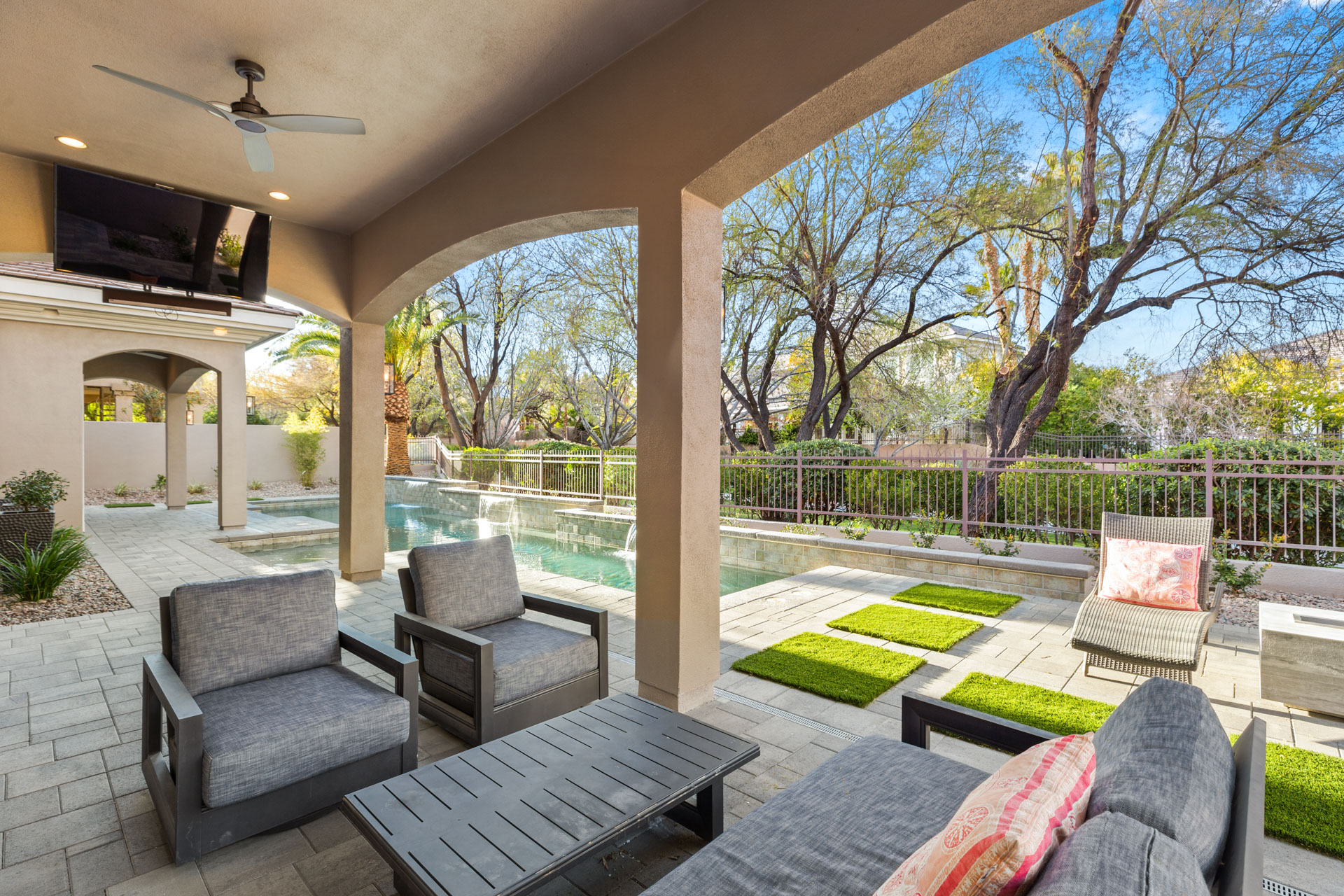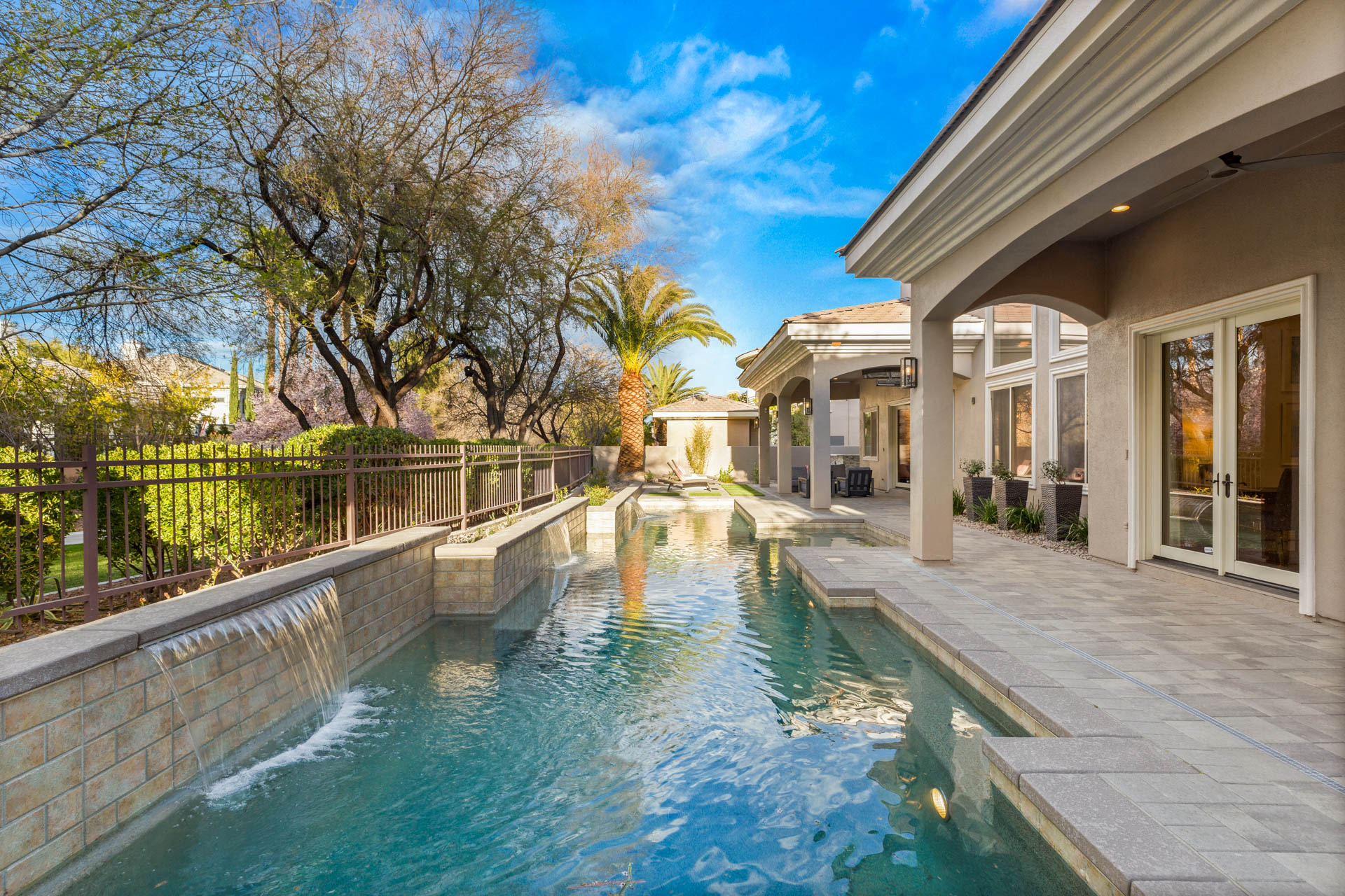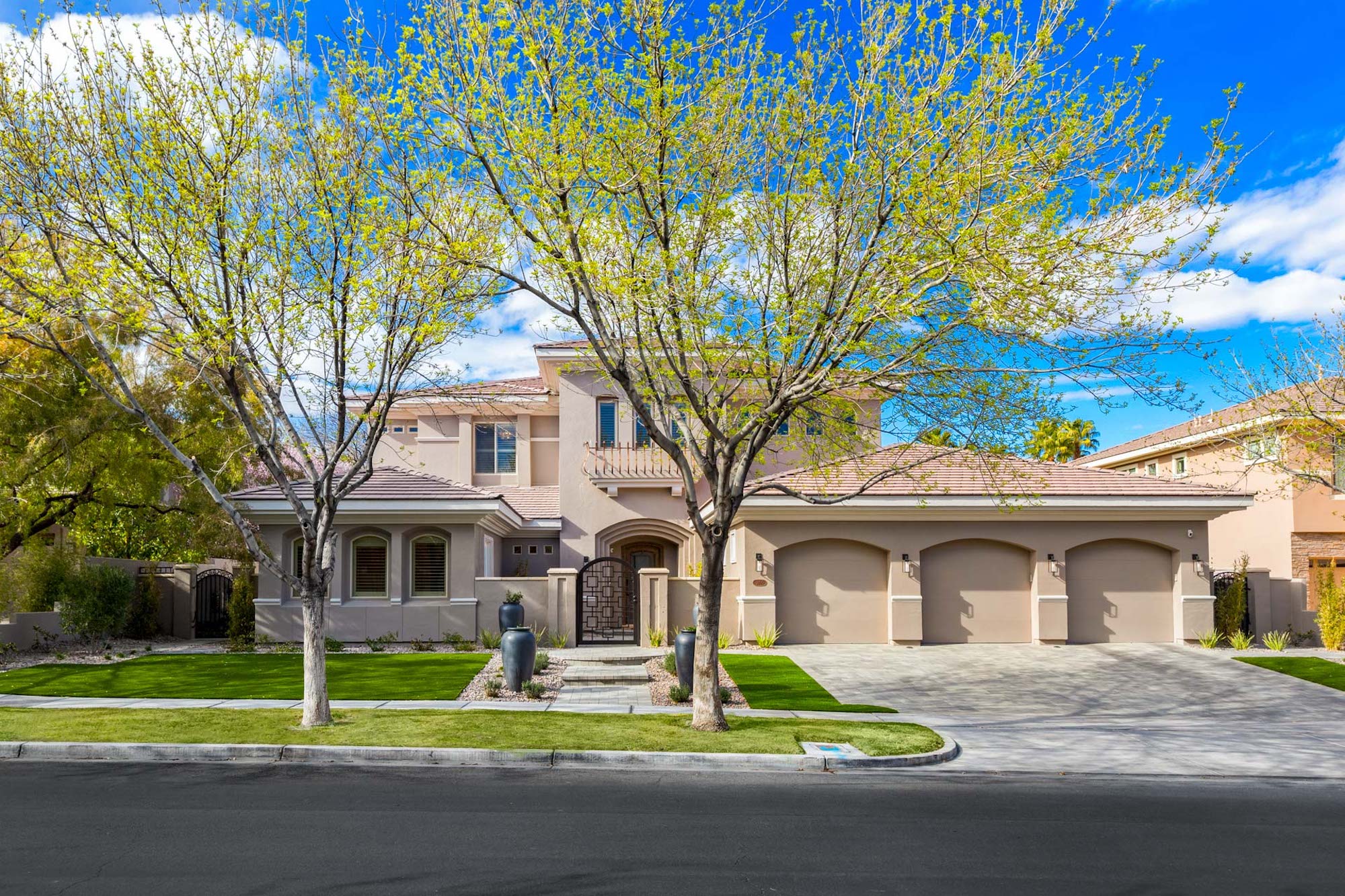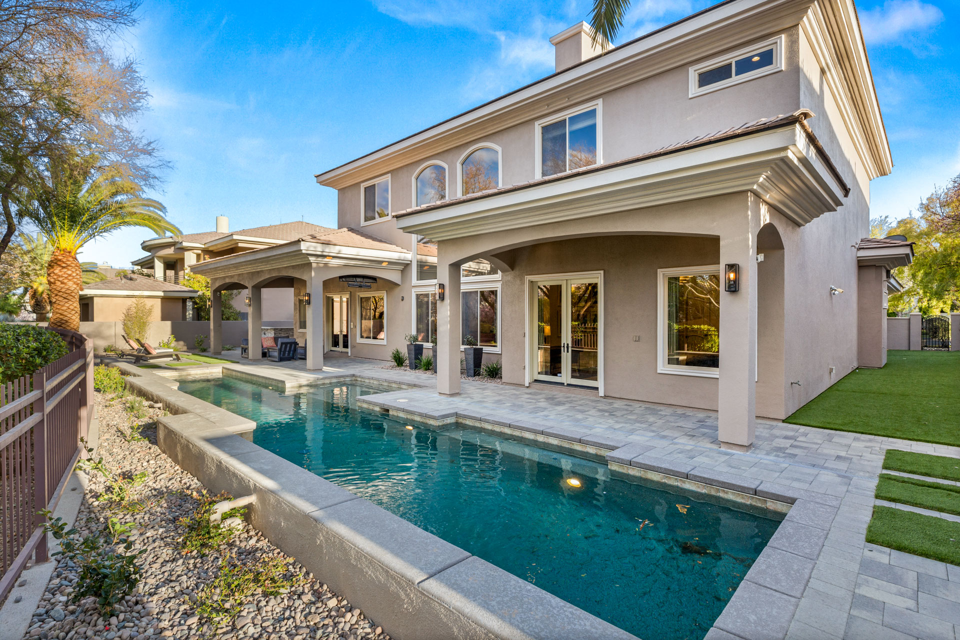 Contemporary luxury meets timeless design in this elegant Summerlin home. Located in the guard-gated Canyon Fairways, this Mediterranean-style house combines modern living with refined artistry in this classic estate.