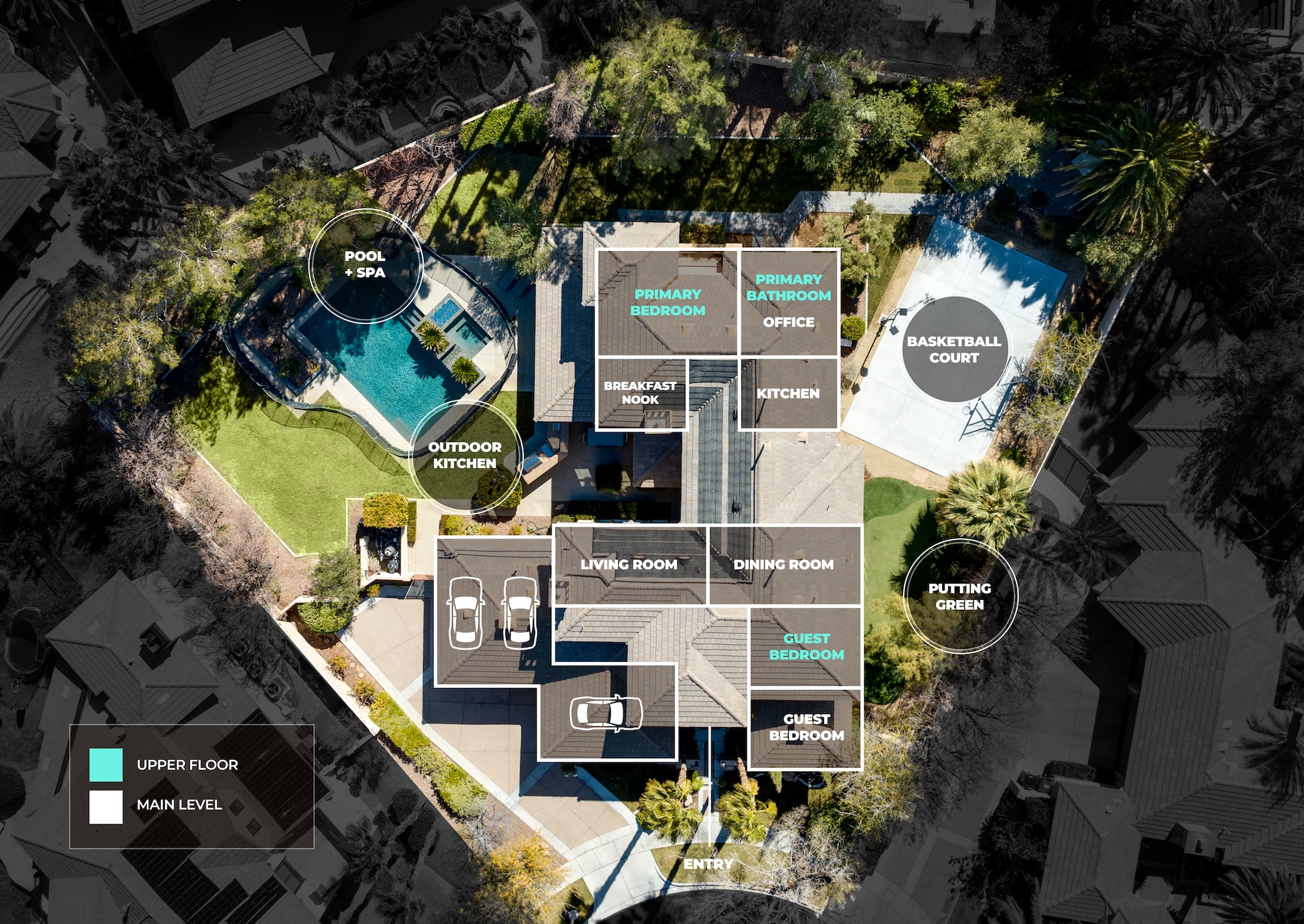 Located in the traditional guard-gated Summerlin neighborhood of Canyon Fairways, this recently refreshed home is 5,155 square feet with 5 bedrooms, 6 bathrooms on an unusually large ½ acre lot. Situated on a rarely trafficked cul-de-sac, enjoy the oversized pool, basketball court and putting green.