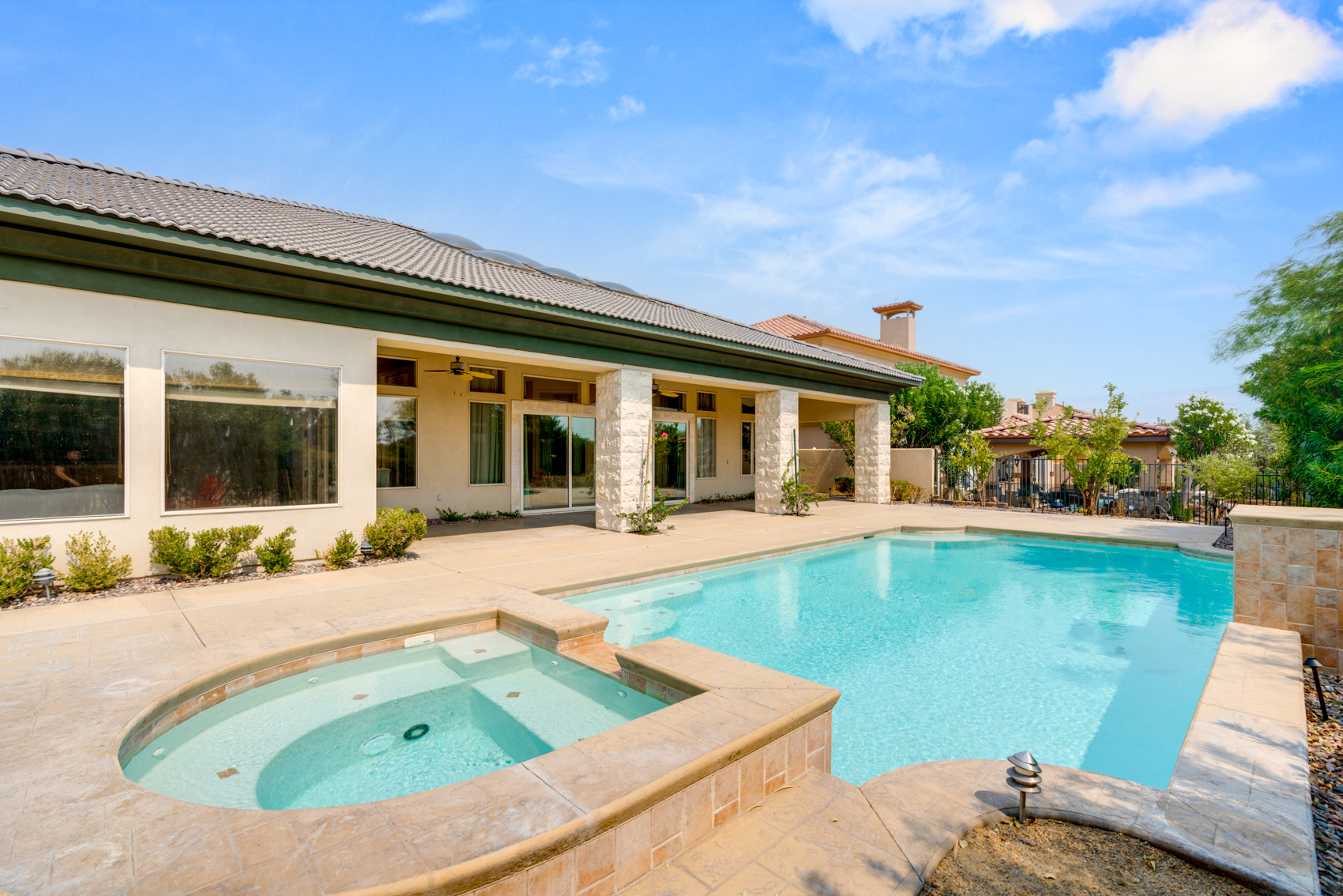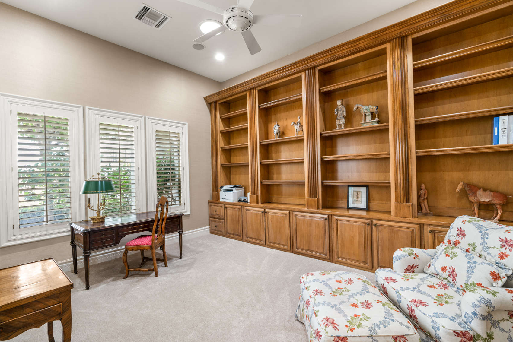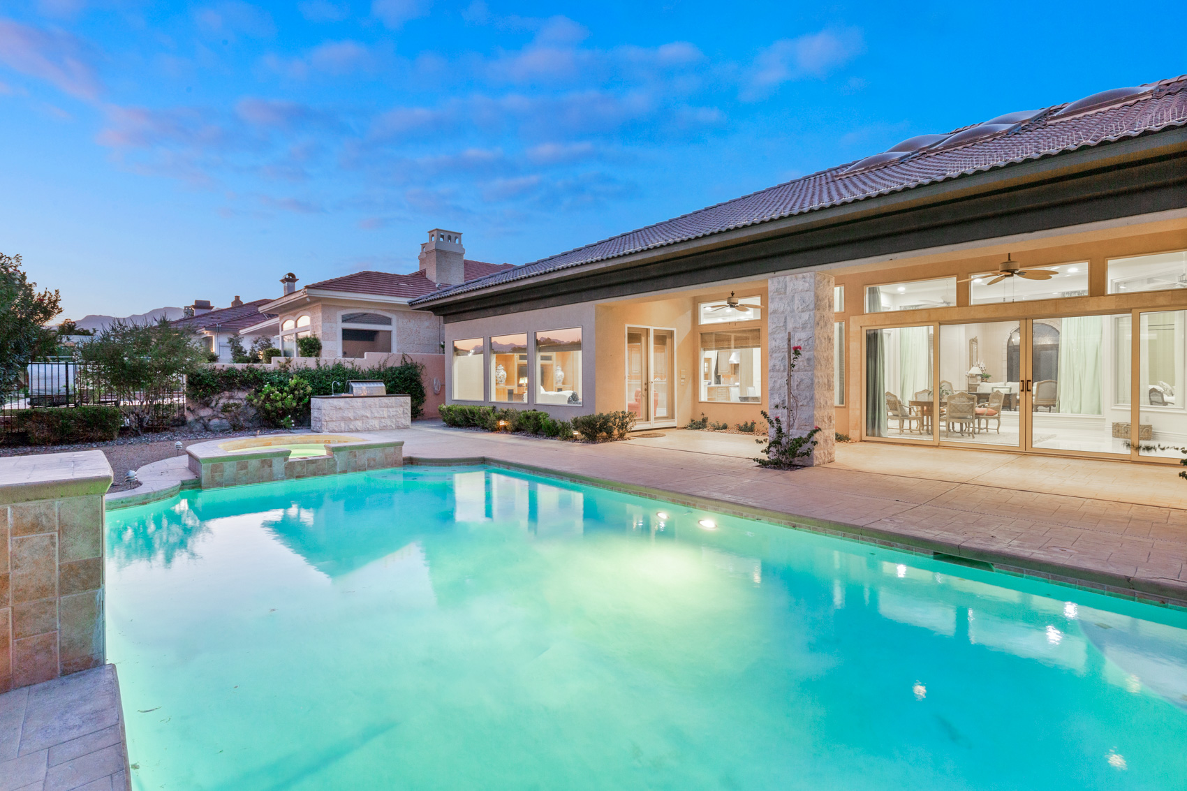 A grand great room flows seamlessly to the outdoor areas, while the elegant formal dining room, complete with specialty display pantries for wine and fine china, sets the stage for memorable dinner parties. The chef's kitchen, anchored by a large skylight, features upgraded stainless steel appliances, ample counter space, and a spacious walk-in pantry, combining function with beauty. The outdoor areas are equally impressive, featuring a sparkling pool, spa, and a covered patio with a built-in BBQ. The backyardās lush landscaping and the absence of neighboring homes behind provide a serene setting for relaxation or entertainment. The home includes three spacious bedrooms and five bathrooms, ensuring comfort for both family and guests. A dedicated executive office offers the perfect space for work or quiet focus, enhancing the homeās functional layout. The luxurious primary suite is a sanctuary, featuring two separate bathrooms, two custom walk-in closets, and an adjoining retreat for relaxation or meditation. Located within the guard-gated Queensridge community is conveniently near the Las Vegas Strip, Downtown Summerlin, and Red Rock Canyon. Whether you seek entertainment, outdoor activities, or a peaceful place to call home, 9517 Verlaine Court offers it all. This rare gem provides a luxurious lifestyle with custom design, modern conveniences, and a focus on living and entertaining. Donāt miss the chance to experience the magic of this unique propertyāschedule a showing today.