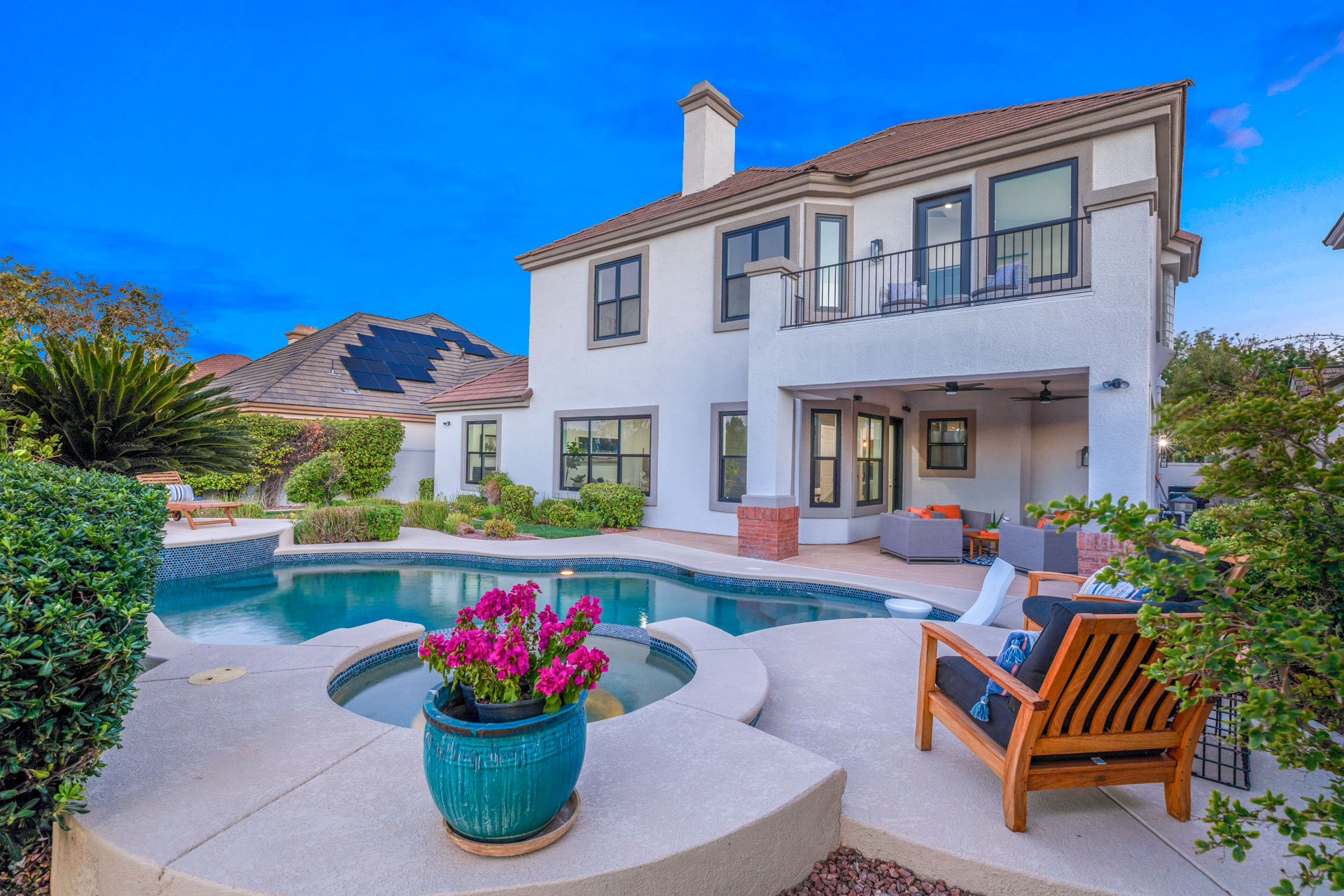 Glass doors lead to a resort-style outdoor retreat, where a covered patio extends your living space into the fresh air. The multi-tiered pool deck invites leisurely afternoons by the sparkling pool, while the soothing hot tub offers the perfect place to unwind under the stars. A lush, manicured lawn provides plenty of space for play, relaxation, or hosting alfresco gatherings. Framed by mature trees and vibrant shrubs, this backyard oasis offers exceptional privacy while showcasing breathtaking mountain views. Adding to its allure, the property backs to open space and a scenic multi-use trail, ensuring a tranquil backdrop and easy access to outdoor recreation. Inside, the first floor includes a versatile officeāideal for remote work or creative pursuitsāalong with a private guest bedroom featuring its own en-suite bath, making it perfect for visitors or multigenerational living. Upstairs, the luxurious master suite is a true retreat. Step onto your private balcony and take in the sweeping views of the western mountains and serene backyard. Inside, the spa-like master bath boasts a deep soaking tub, a spacious walk-in shower, and a generous walk-in closet. Four additional bedrooms complete the second level, including one with a private en-suite bath, offering flexibility for family, guests, or additional workspace. A spacious three-car garage provides ample room for vehicles, storage, and a workshop area, catering to every practical need. Conveniently located near top-rated schools, shopping, dining, and everyday essentials, this home offers the perfect balance of accessibility and seclusion. Tucked beside pristine open space yet just minutes from modern conveniences, 9608 Camden Hills is a rare gem that embodies both luxury and tranquility. Donāt miss the opportunity to make this exceptional residence your own.