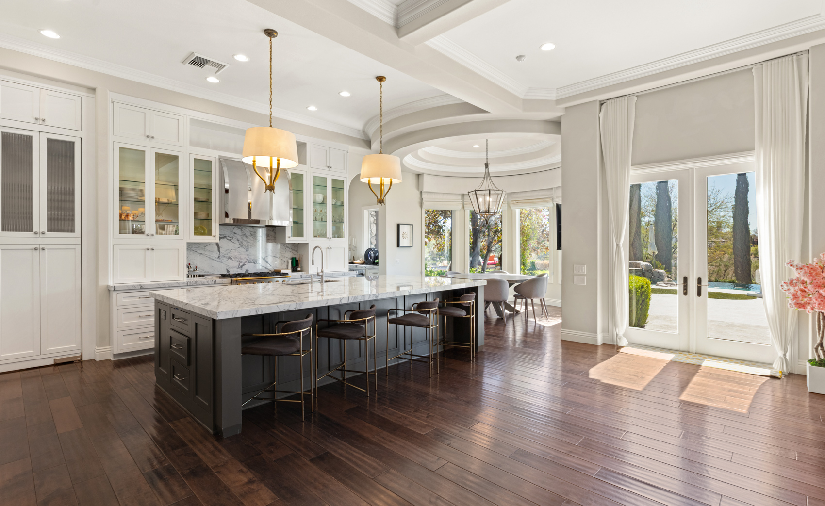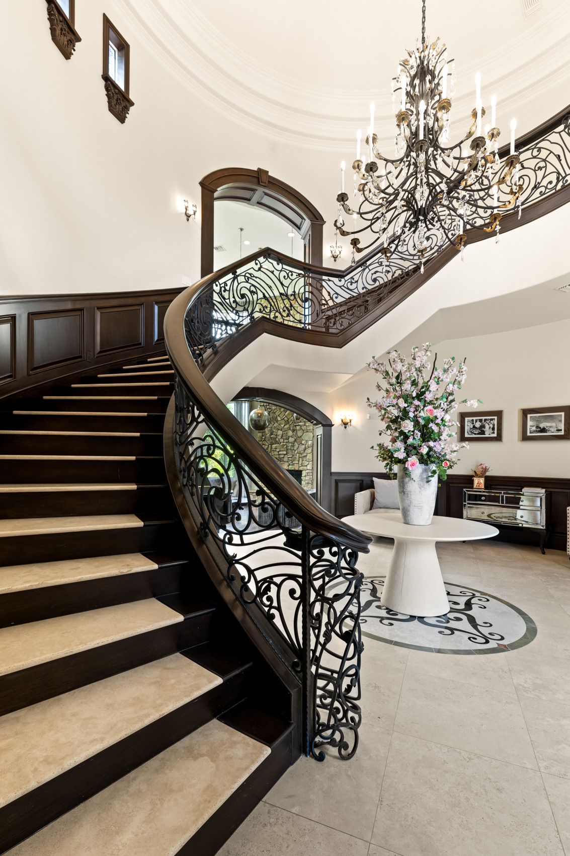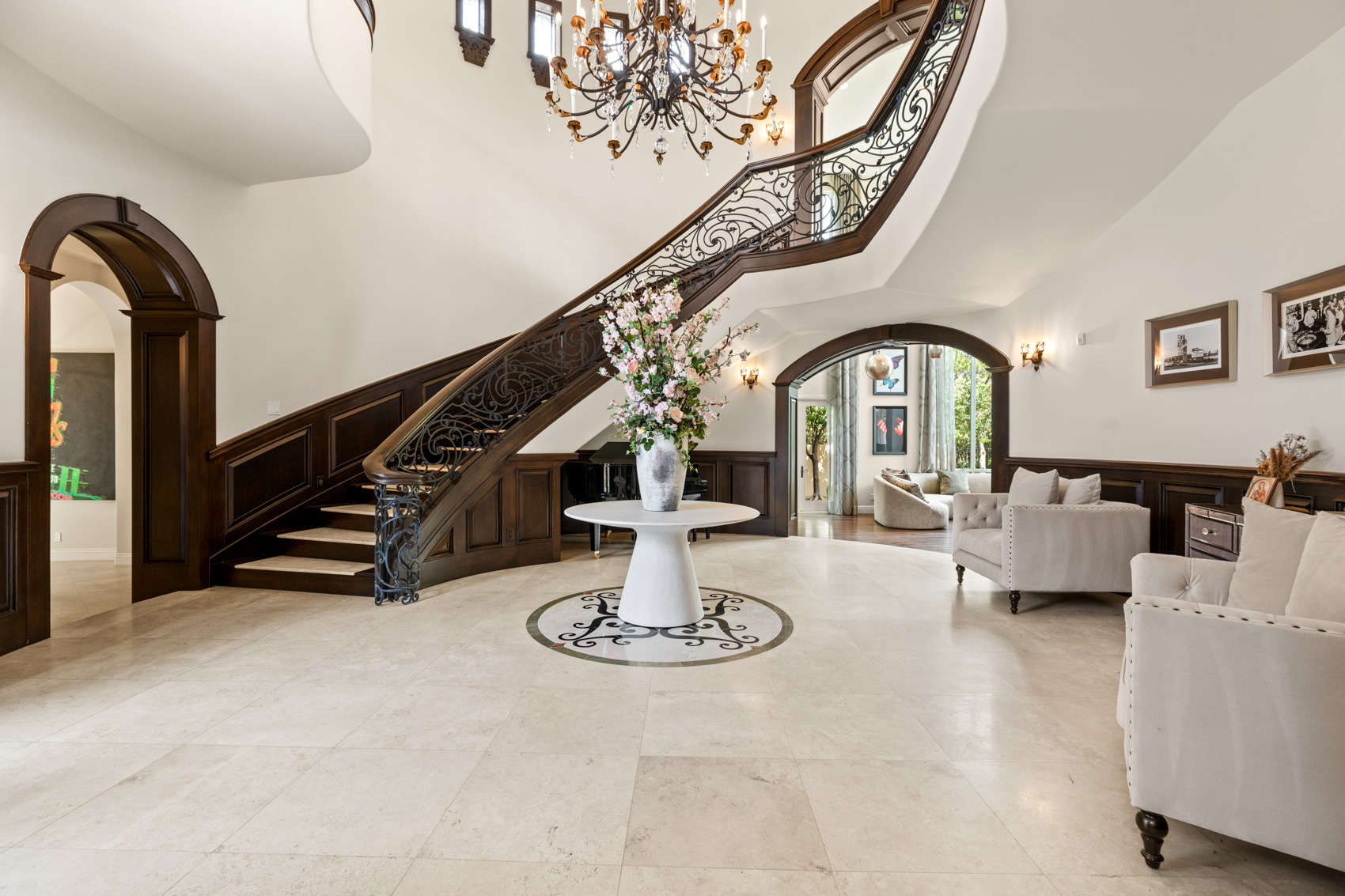 From the moment you arrive through the 2nd gate, the home’s stately presence is undeniable—a sweeping front lawn, porte cochere, and motor court lead to a double-gated entrance that opens to a sprawling private courtyard complete with a fireplace, lounge area, and outdoor bar. Framed by lush, mature landscaping that provides unparalleled privacy, this residence was crafted for those who love to entertain and live with intention.