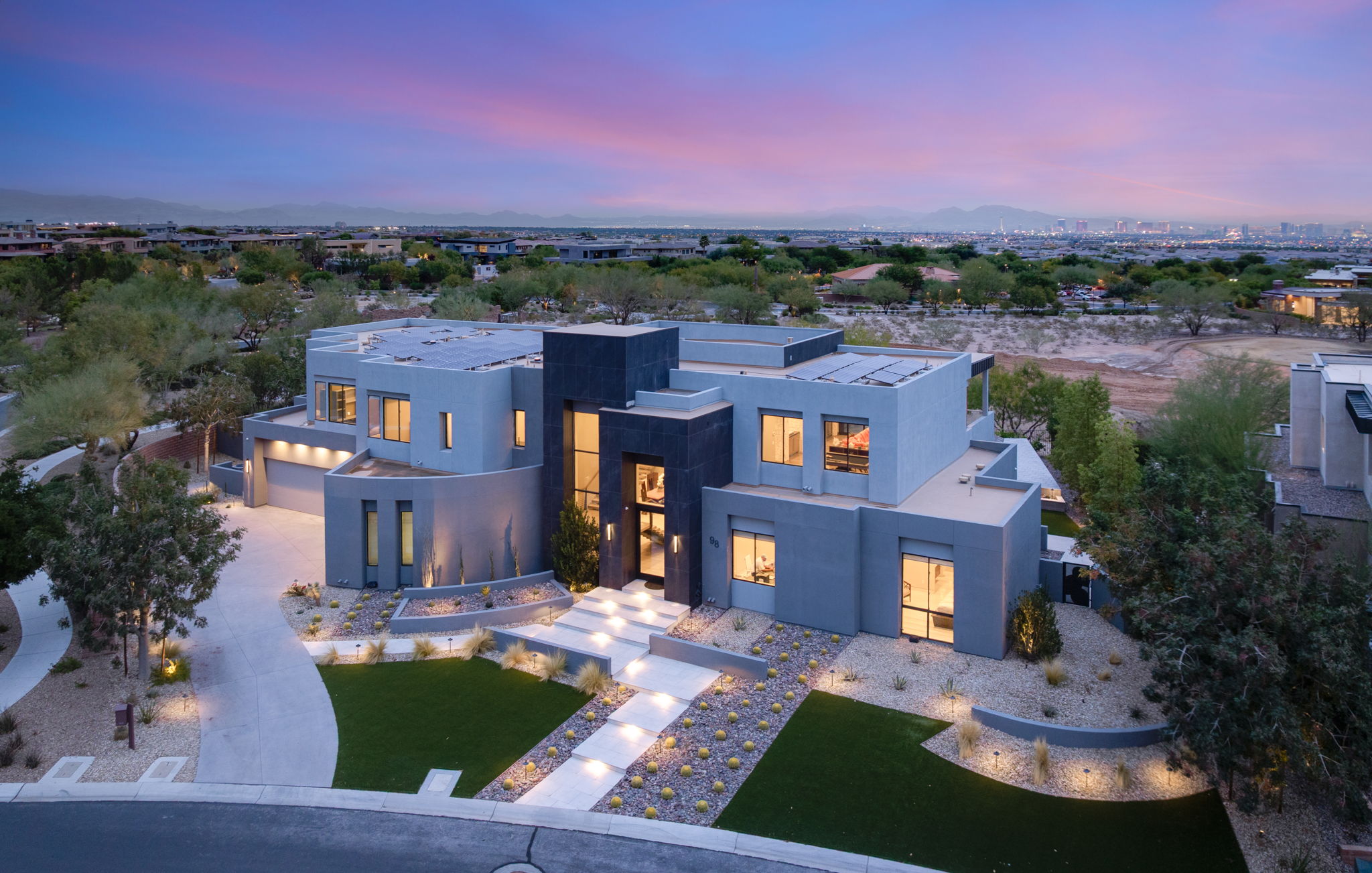 Tucked within the prestigious guard-gated enclave of The Ridges in Summerlin, this exceptional estate is a refined expression of modern design seamlessly integrated with its natural surroundings. Expansive open living spaces are thoughtfully positioned to capture sweeping views of the city lights and surrounding mountains, creating an atmosphere of both sophistication and tranquility.