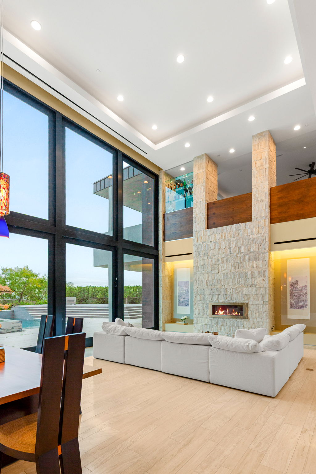 Inside, the residence offers 5 bedrooms, 7 bathrooms, and a 4-car garage, along with additional interior square footage added to enhance livability. The chef’s kitchen is generously scaled for both daily living and hosting, complemented by open living areas that flow effortlessly to outdoor spaces. Paid-off solar adds long-term efficiency, and luxury features such as a built-in sauna elevate the home’s lifestyle appeal. The primary suite is a private sanctuary, featuring a fireplace, spa-style bathroom with a large freestanding soaking tub, oversized walk-in shower, double vanities, and a rare third custom closet. Secondary bedrooms are well appointed, offering comfort and flexibility for family and guests. Situated within The Ridges, one of Las Vegas’ most prestigious guard-gated communities known for architectural excellence and world-class amenities, homes of this caliber—especially those backing the Amara private golf course with no rear neighbors and extensive upgrades—rarely come to market. 98 Sun Glow Lane presents a truly exceptional opportunity to own a significantly enhanced luxury estate in an irreplaceable setting.