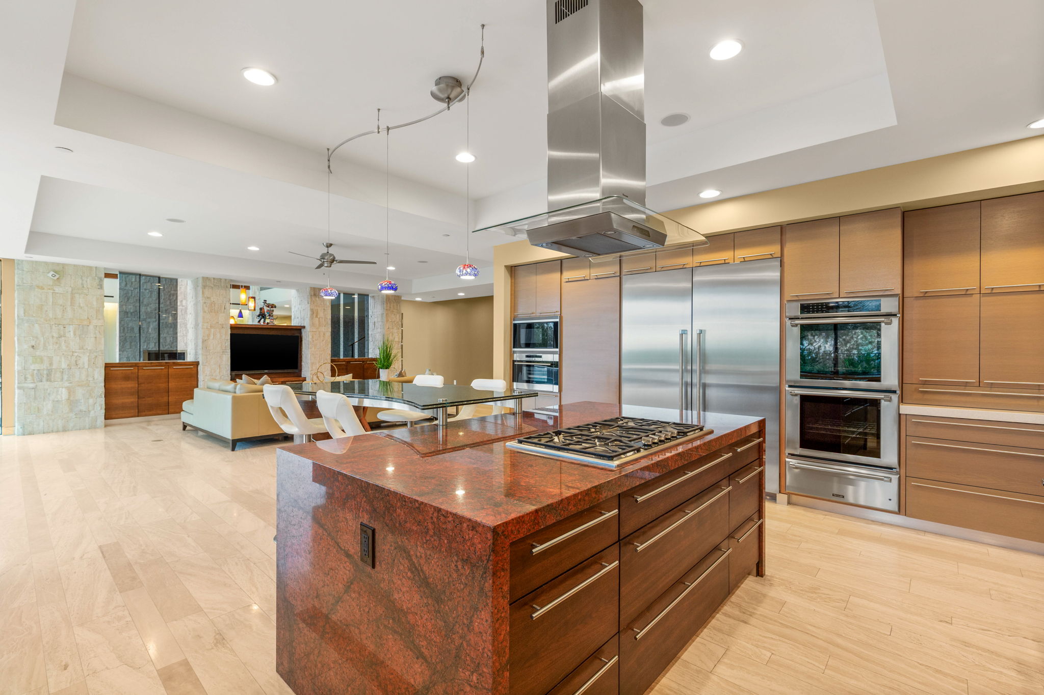 Spanning 7,362 square feet, the home is thoughtfully designed to capture abundant natural light while maximizing seamless indoor-outdoor living. The entire exterior has been fully redone, including a brand-new pool and all-new landscaping, transforming the backyard into a private resort-style retreat. All balconies have been extended to fully enjoy sweeping Strip, golf course, and mountain views. A covered patio with built-in BBQ, sink, and mini fridge provides the ideal setting for entertaining, while the home’s orientation ensures privacy without sacrificing expansive vistas.