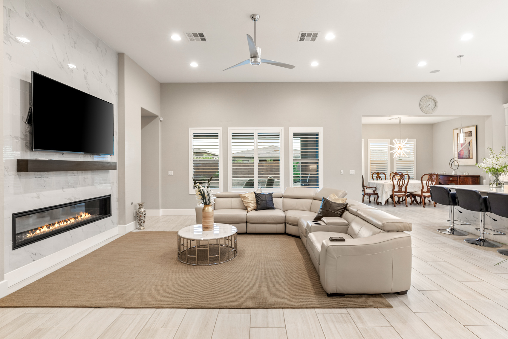 Welcome to 9984 Copper Edge Rd, an elegant single family home nestled in the desirable Onyx Point community. Step inside to discover the heart of the home - a gourmet kitchen boasting top-of-the-line Wolf appliances, custom cabinets, and sleek quartz countertops. The open layout effortlessly connects the kitchen to the inviting great room, creating the perfect space for gatherings and relaxation by the captivating two-sided fireplace.