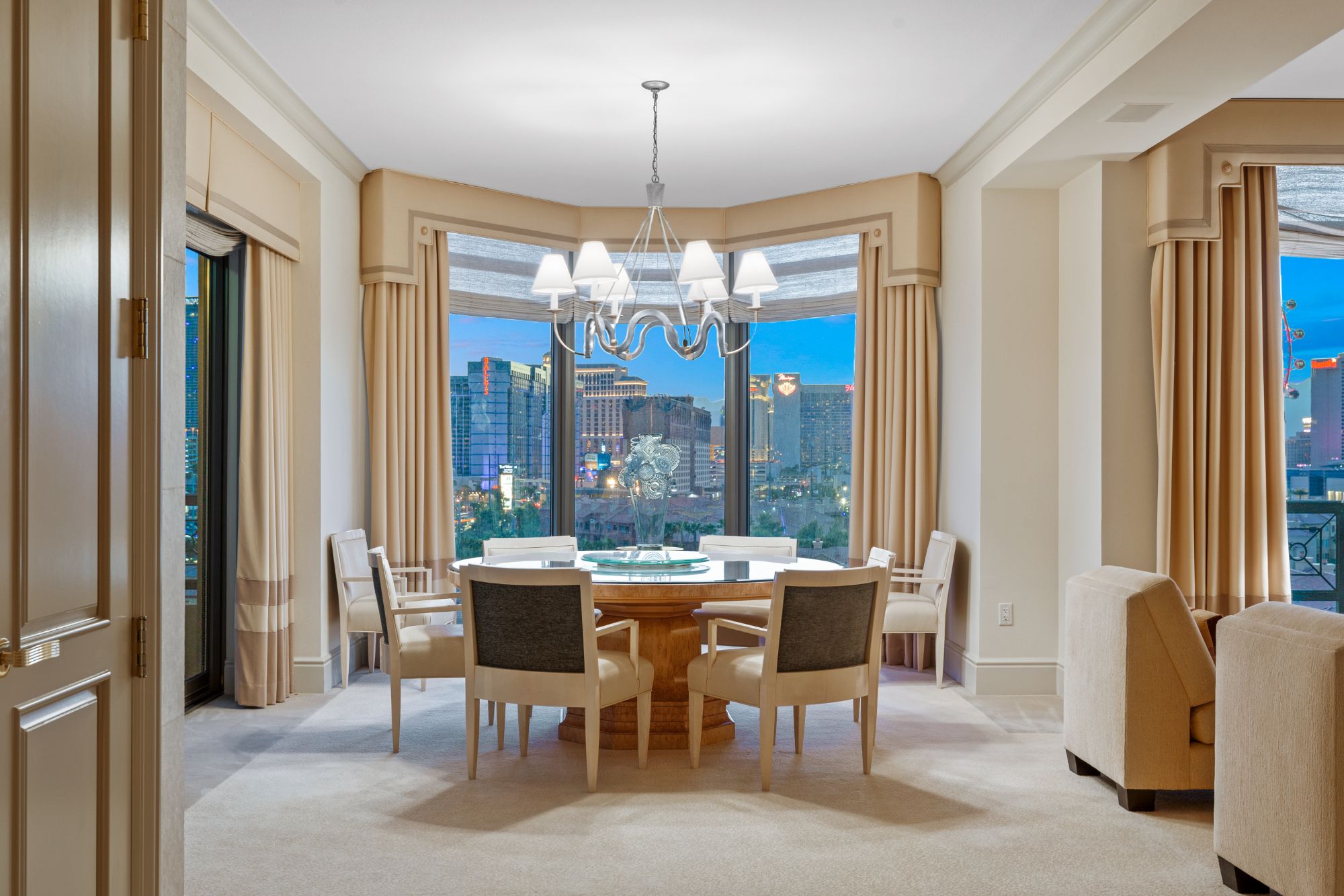 With just over 4,900 square feet of exquisitely appointed interior space, this wonderful condominium at Park Towers in Hughes Center offers an unparalleled opportunity to enjoy the Las Vegas lifestyle. It is a unique home that is as exciting as it is comfortable. Architectural details exhibit a flair for the dramatic, but the effect is subdued with the selection of vibrant accents, quality materials, and luxurious finishes that include polished marble flooring and neutral plush carpeting.