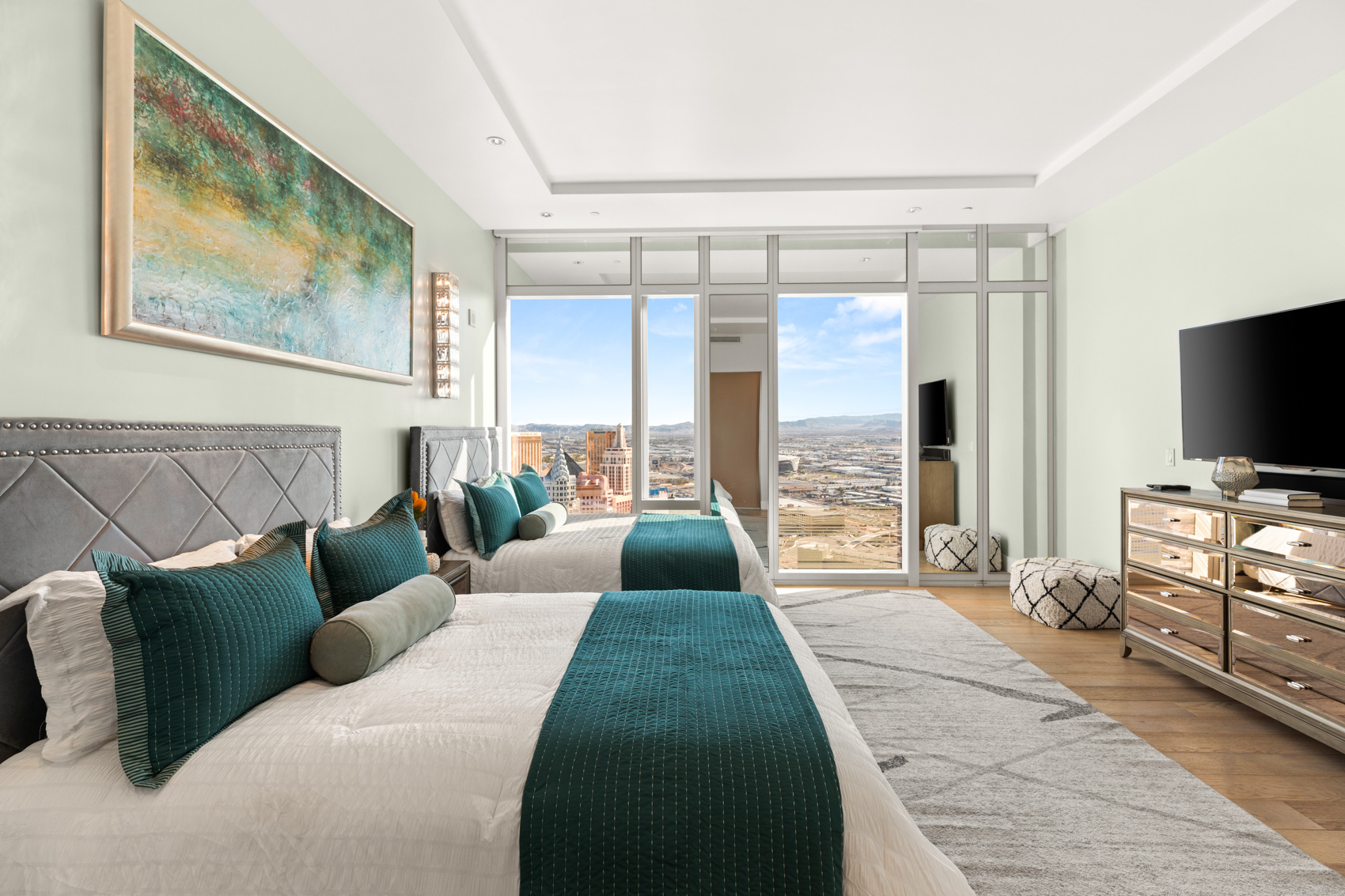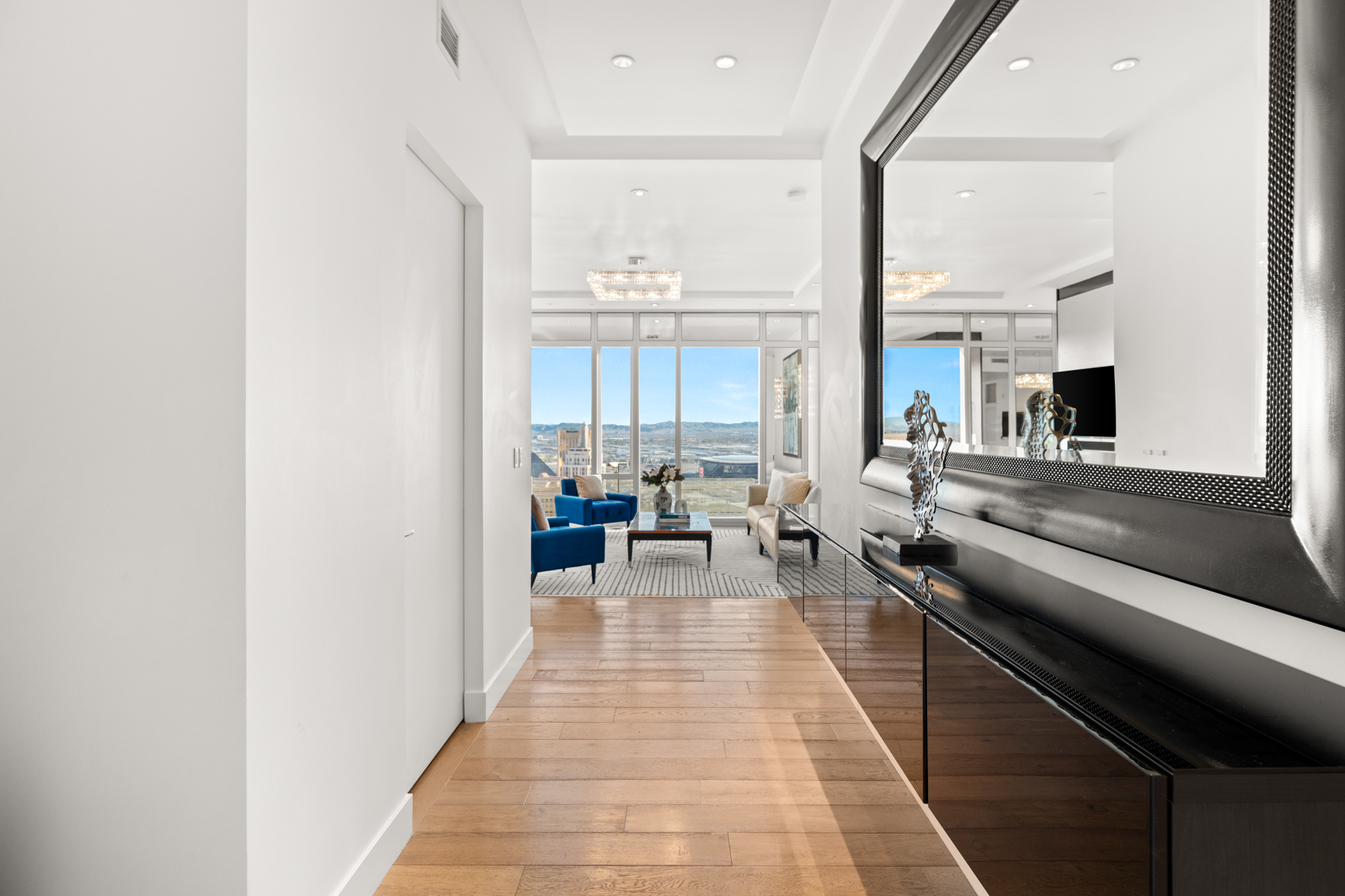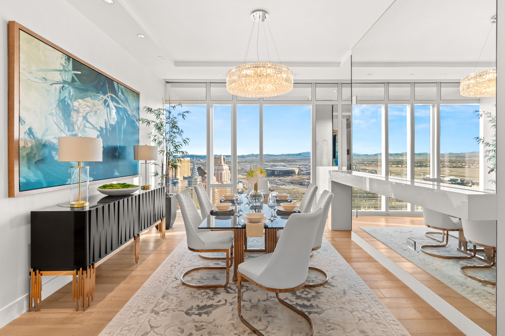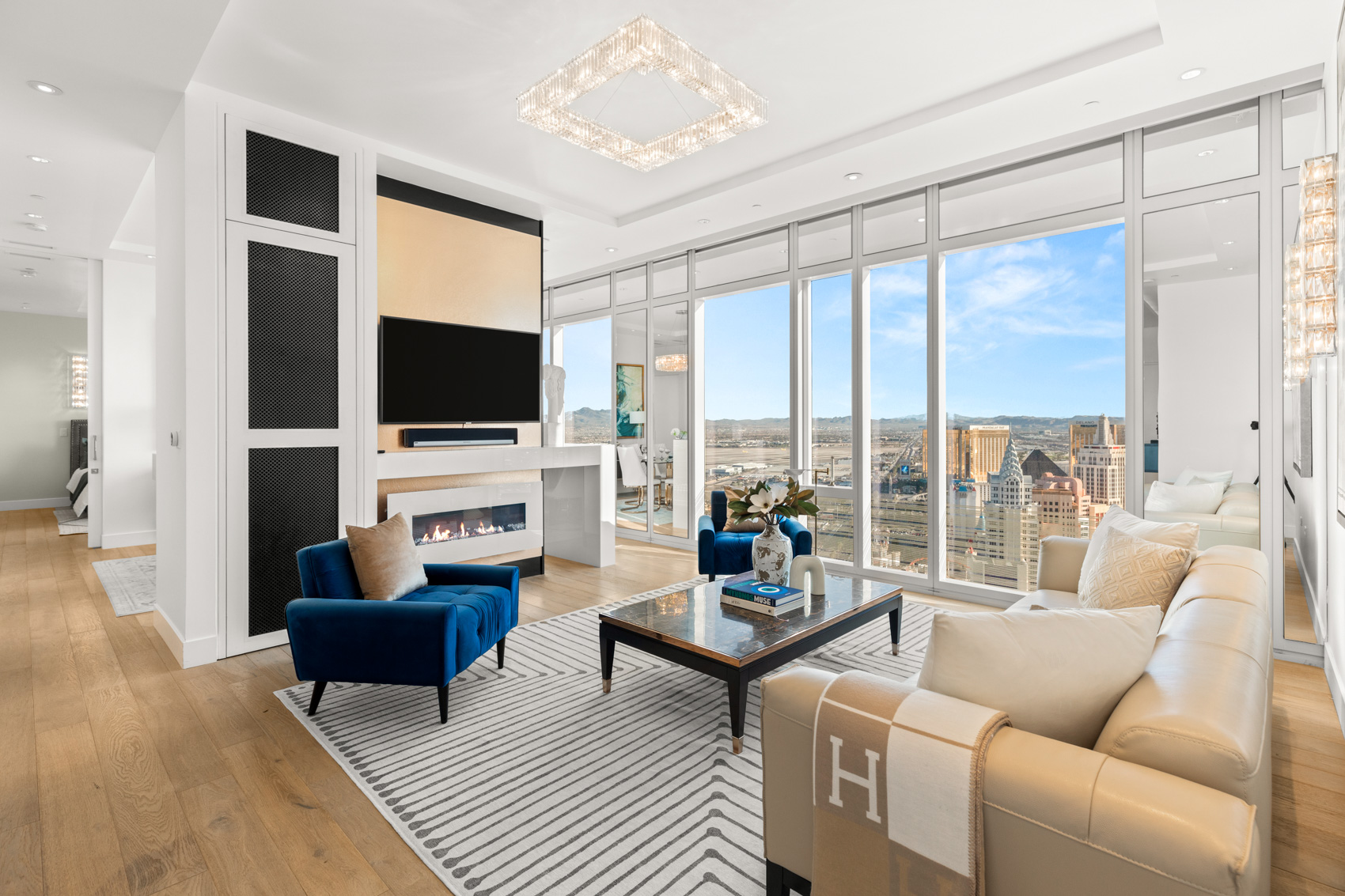 Experience an extraordinary oasis in the sky at 3750 South Las Vegas Boulevard Unit #4502, where timeless elegance meets awe-inspiring views. This custom penthouse, nestled within the legendary Waldorf Astoria, beckons you to indulge in a life of luxury and refinement. With 2 bedrooms, 3 bathrooms, and a sprawling 2,247 square feet of meticulously designed living space, this residence sets the stage for an unparalleled living experience.