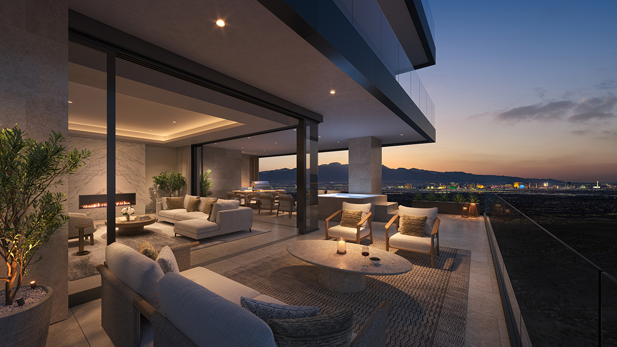 The residences are sophisticated and contemporary ā truly mansions in the sky. They are designed with an open feeling that invites the outside in. Each of them has expansive outdoor living areas with panoramic views of the Strip and the entire Valley. And they are lock it and leave it worry free. The property offers residents over 90,000 square feet of amenities including 3 different pools, fitness and wellness center, pickleball courts, theatre, wine cellar, hotel suites (for residentsā guests exclusively), valet and full-service concierge. Every residence comes with a private garage.