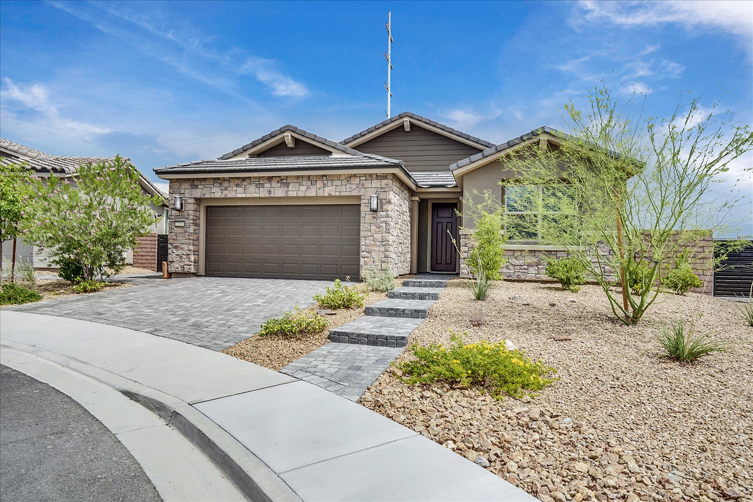 Nestled on the border of Red Rock Canyon, this immaculate single-story home is in the exclusive Summerlin Village of Reverence. Contemporary style home features an open living space that flows easily from the living, dining, and kitchen. The home features three bedrooms, two full baths, a 2.5 car garage, luxurious finishes, and incredible mountain and partial strip views.