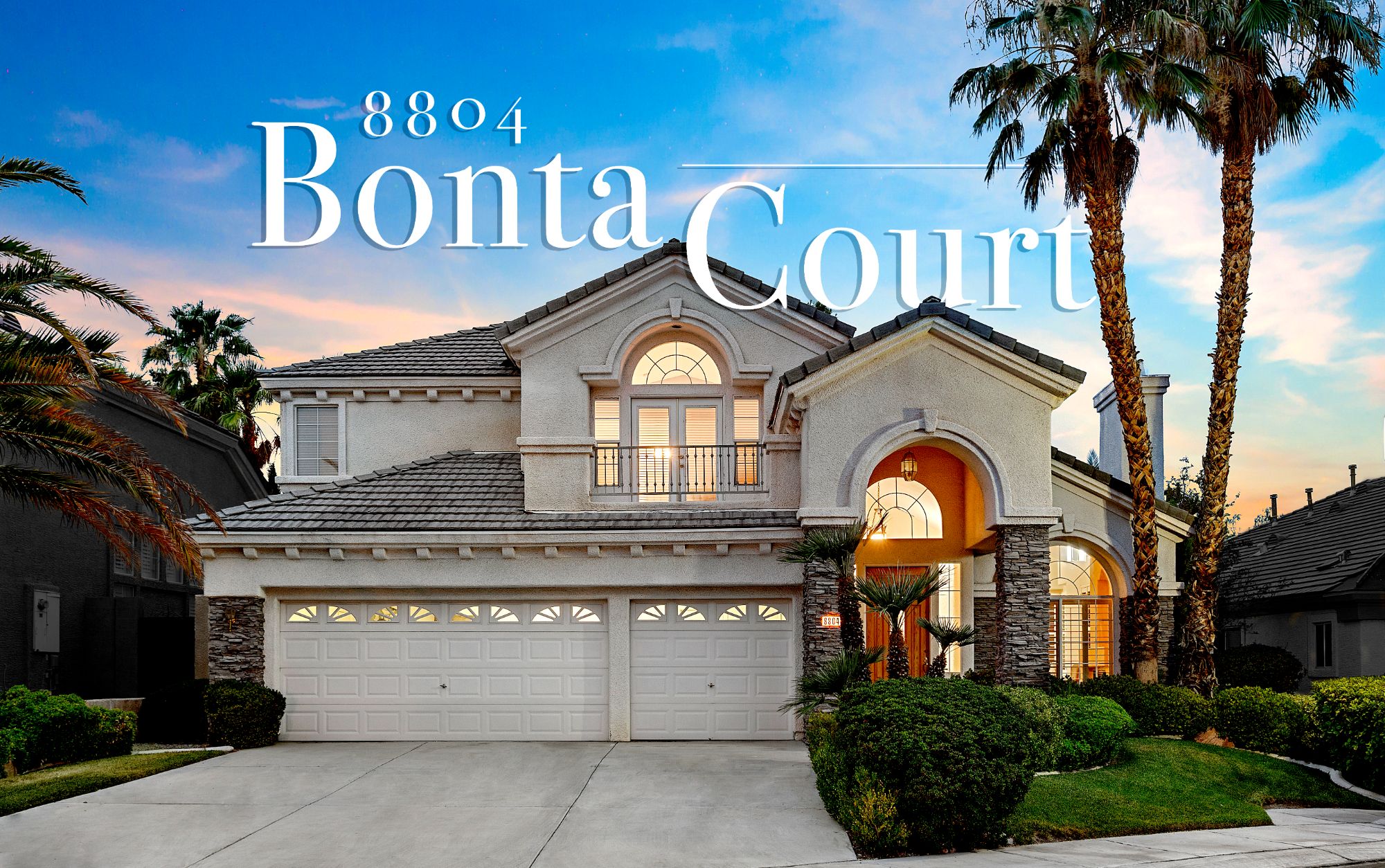 Classic architecture with stacked stone columns and arch-top windows and doors characterizes this well-priced home in the guard-gated Corta Bella community of Summerlin. With three bedrooms, four baths, a three-car garage, three fireplaces and a unique wet bar, the home features a main-level master suite that opens directly to the backyard pool and patio.