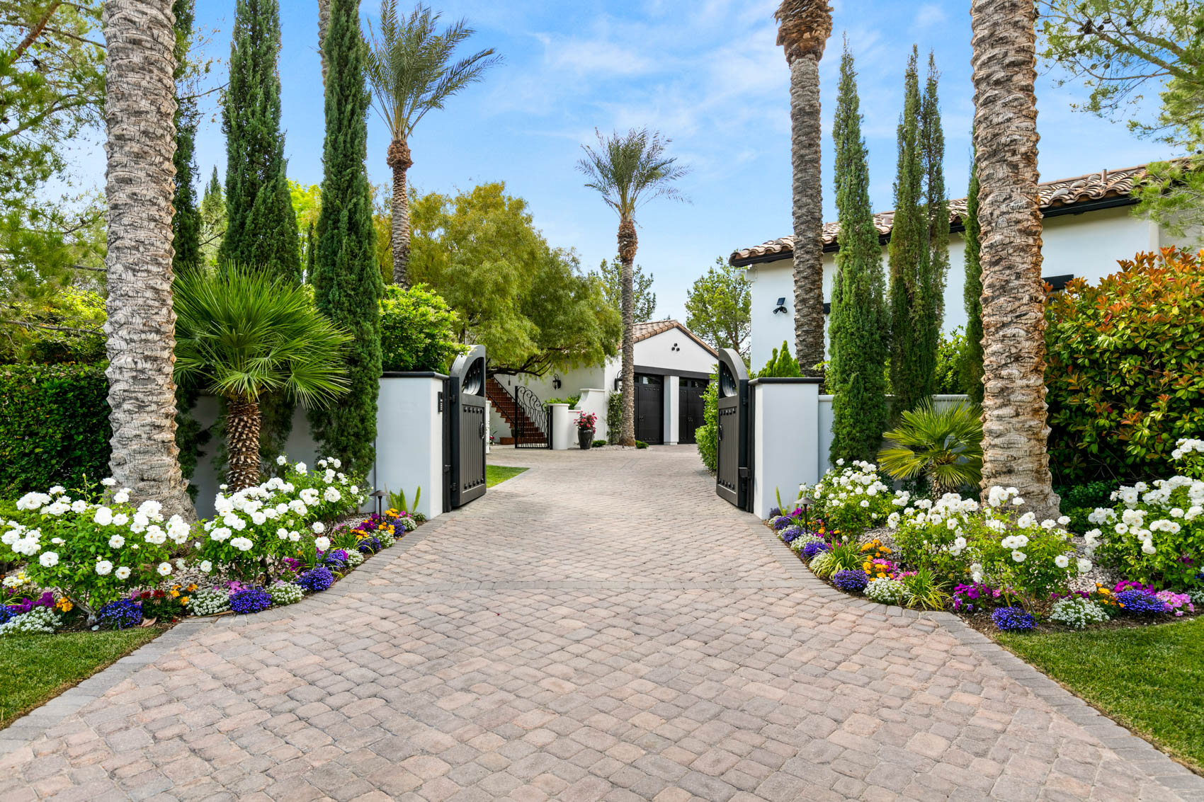Perfection awaits. Situated on a secluded cul-de-sac within the Enclave neighborhood, this enchanting home is nestled behind a private gated driveway. Impeccable landscaping surrounds you as you enter this Santa Barbara modern style home. Completely remodeled over the last few years from top to bottom. Think custom designer lighting, imported hardwood flooring, natural stone countertops, multiple fireplaces — all executed with amazing craftsmanship.