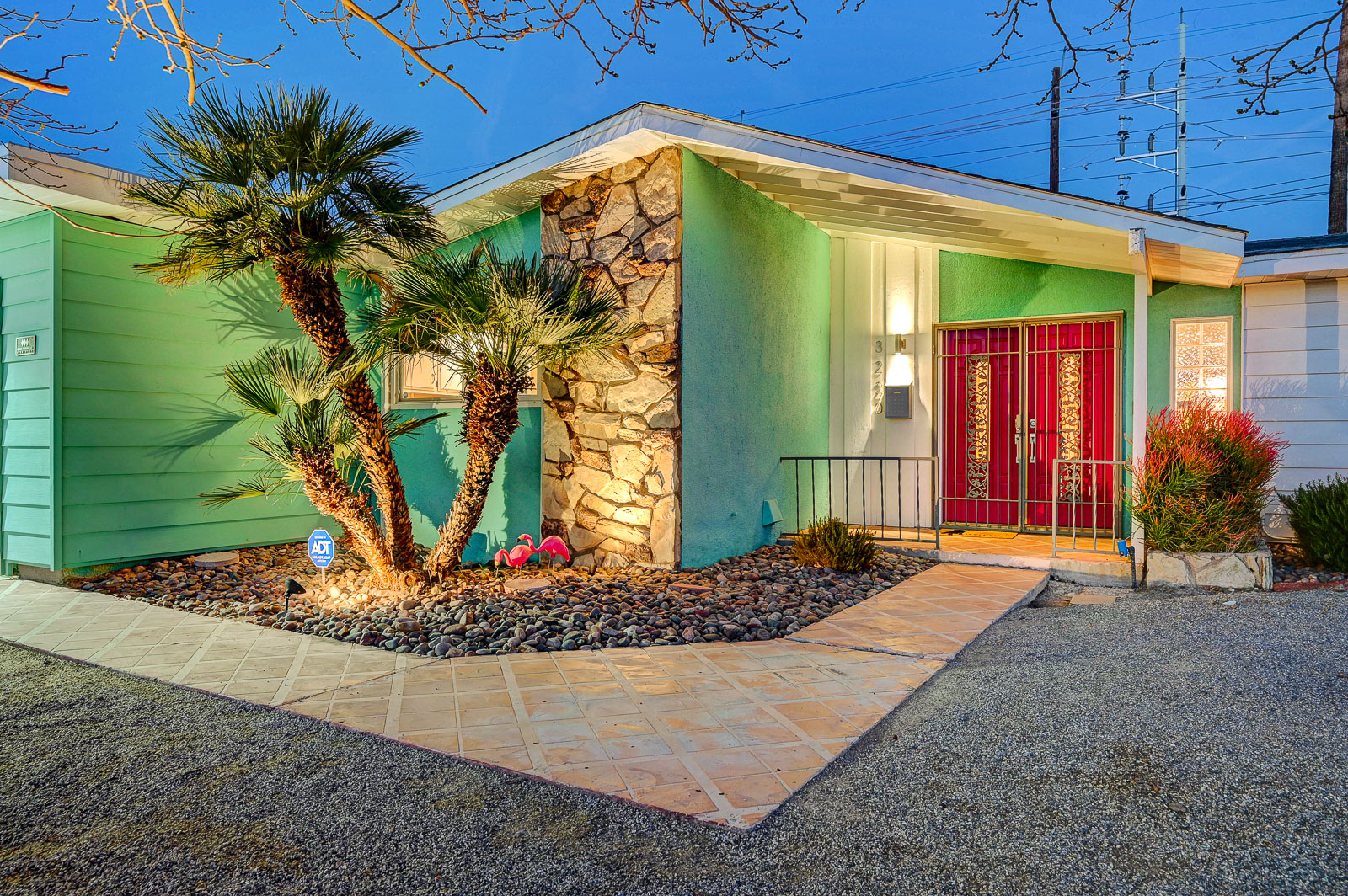 This beautifully restored 3-bed, 2-bath Mid-Century Modern home in historic Paradise Palms perfectly balances 1960s charm with modern updates. Situated on an 8,712 sq. ft. lot, the thoughtfully designed split-floor plan provides each bedroom with exterior access, while dual-pane windows and period-correct lighting, wood-burning fireplace and terrazzo-inspired flooring add warmth and enhances it retro appeal.