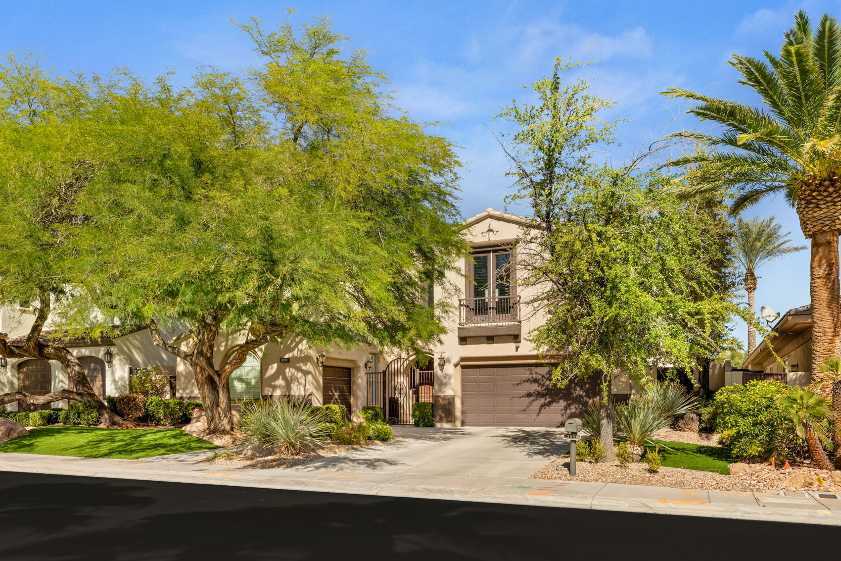 Experience the prestige of guard-gated Red Rock Country Club with this 4-bedroom, 4-bath residence offering 3,455 square feet of refined living space. The home blends traditional elegance with modern comfort, featuring an open, light-filled layout, soaring ceilings, an iron-accented spiral staircase, and designer touches such as custom lighting, rich flooring, and statement wallpaper.